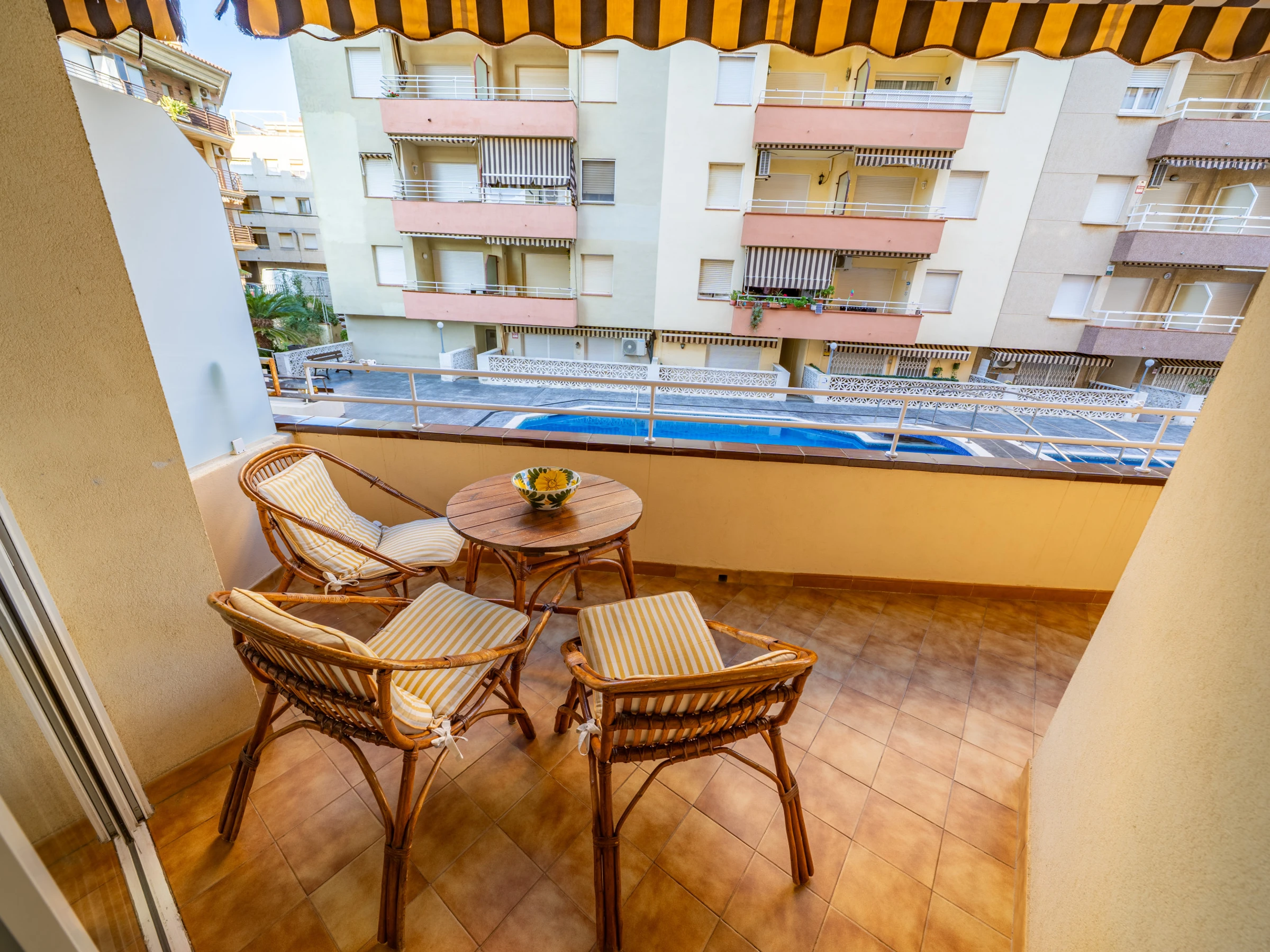 El alojamiento dispone de un agradable salón-comedor, una cocina independiente totalmente equipada, dos dormitorios confortables, un baño y un balcón con vistas a la piscina, un rincón ideal para relajarse y disfrutar del ambiente veraniego.