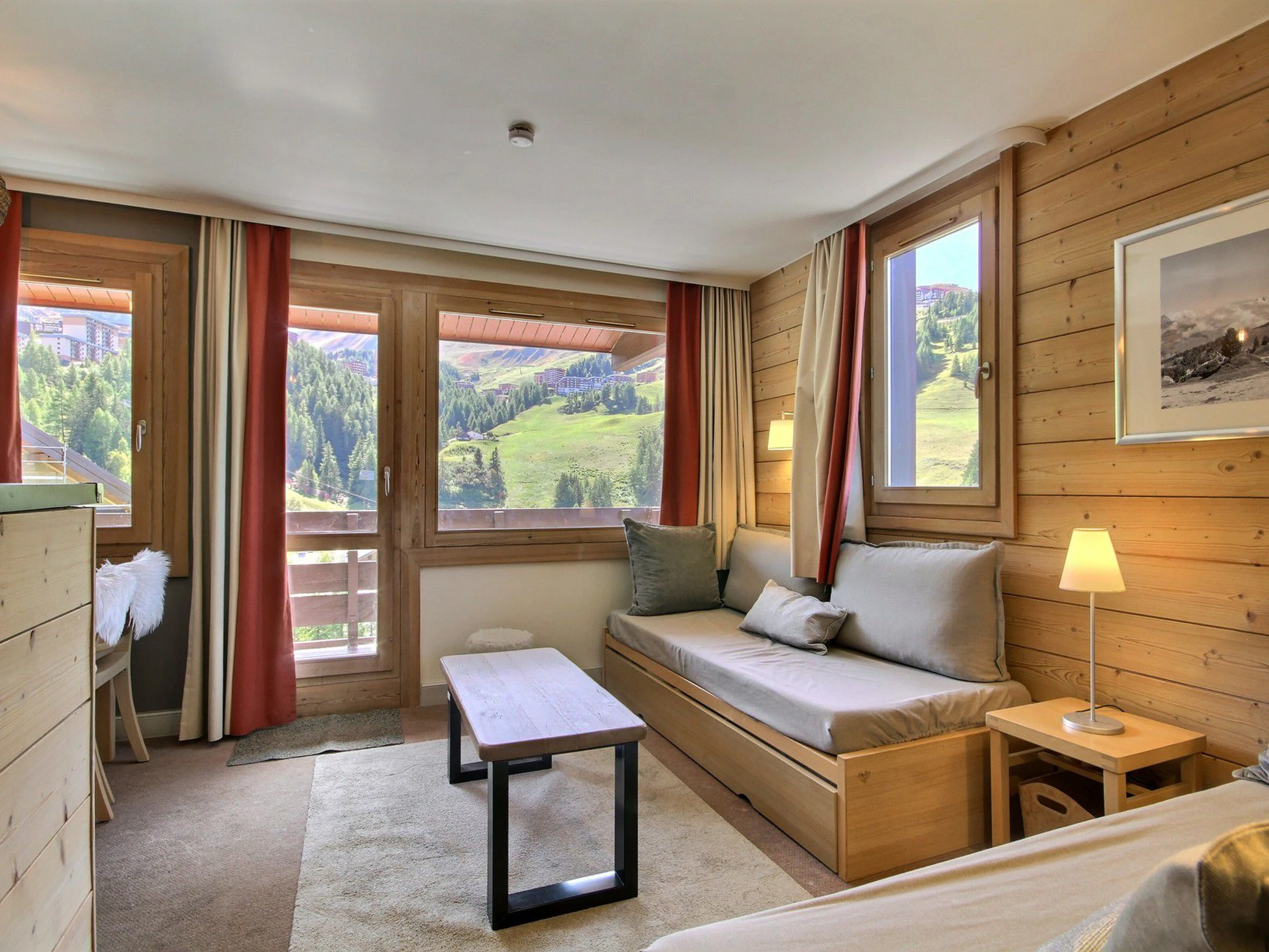 Increíble apartamento de 2 habitaciones con capacidad para 4 personas, orientado al sur, con un amplio balcón y preciosas vistas a la estación y a las pistas. 2.ª planta (sin ascensor).