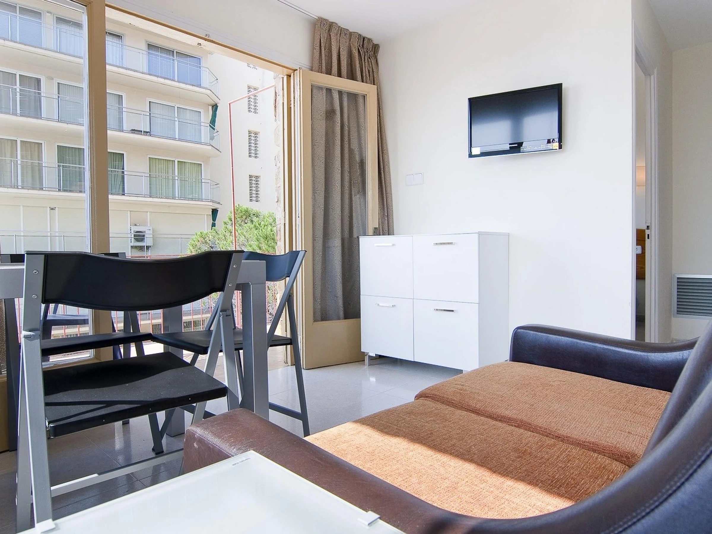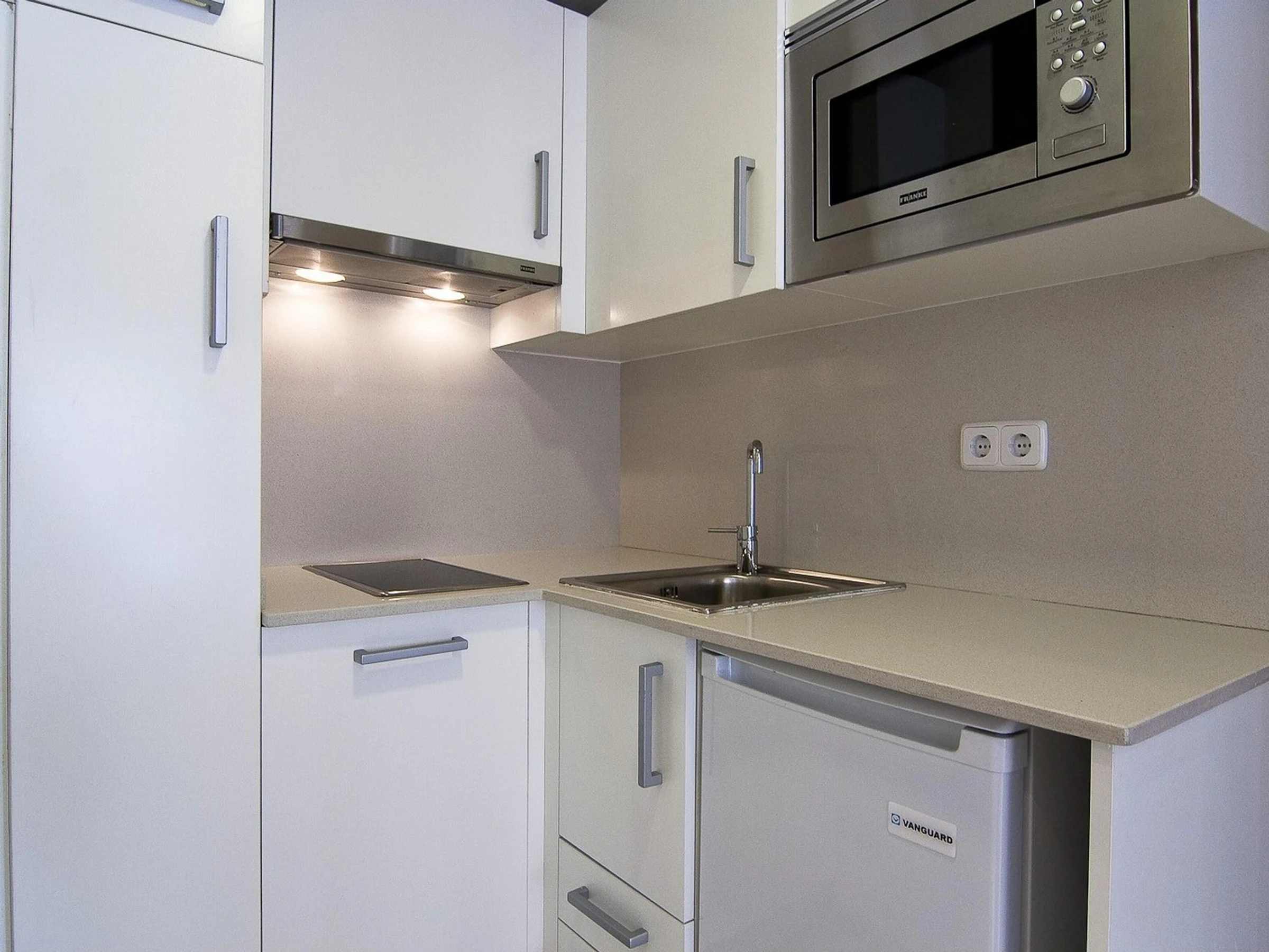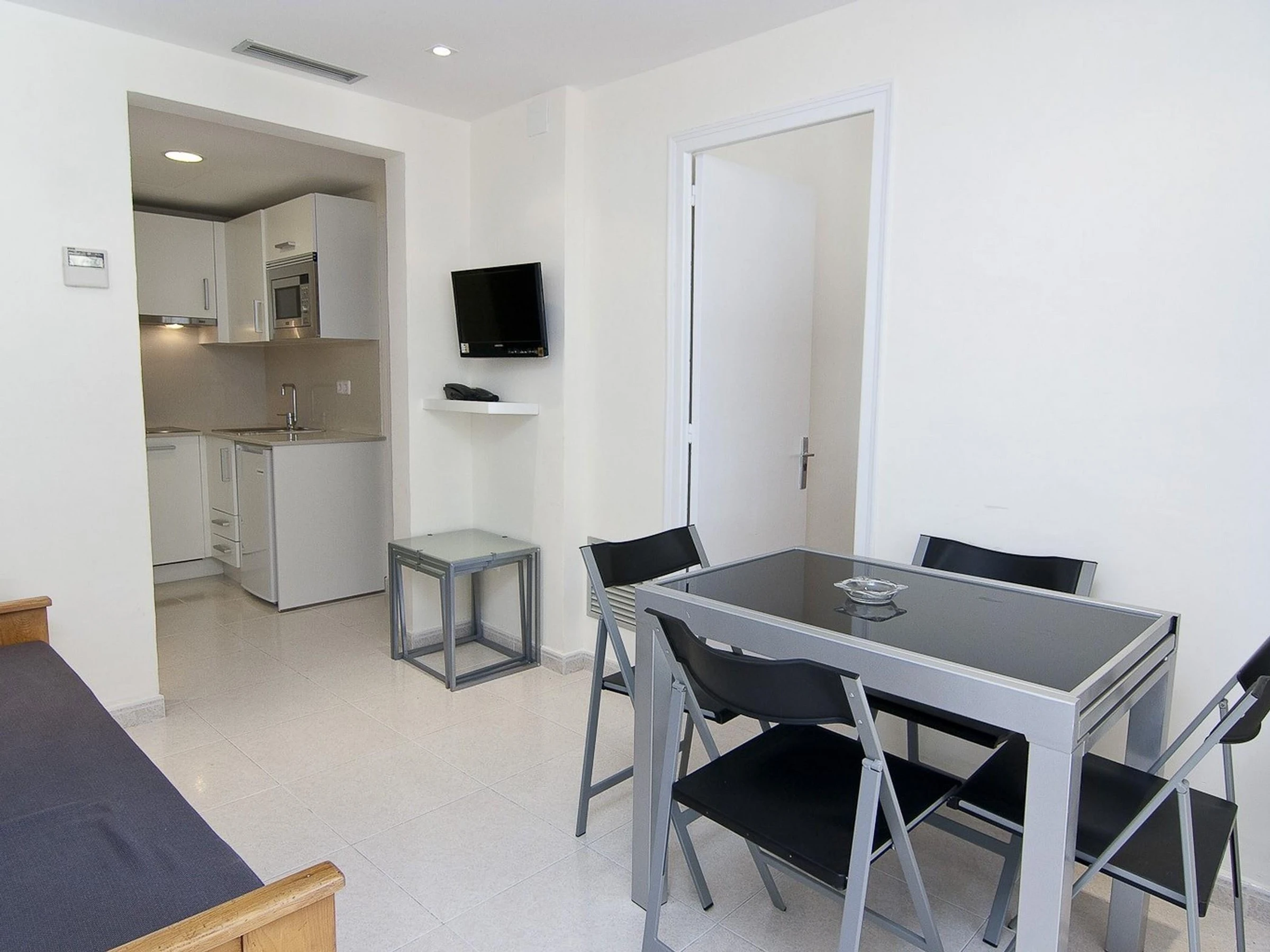 Tienen: pequeño salón-comedor, TV satélite, 2 dormitorios dobles, cocina tipo kitchenette, baño con ducha y WC. La mayoría de los apartamentos con balcón compartido.