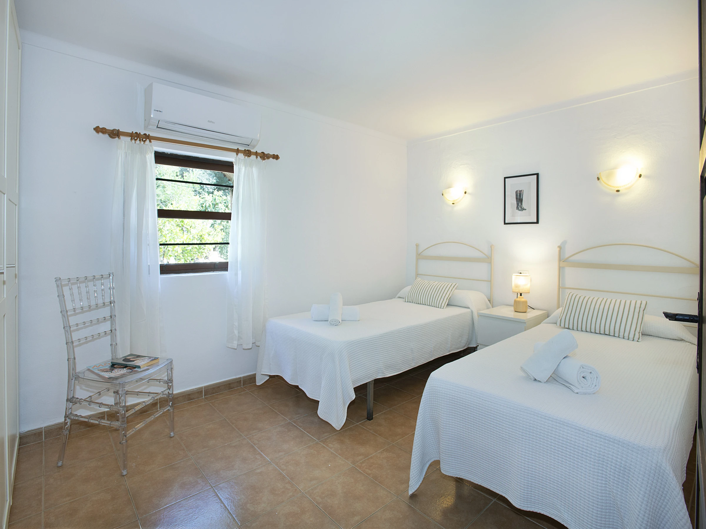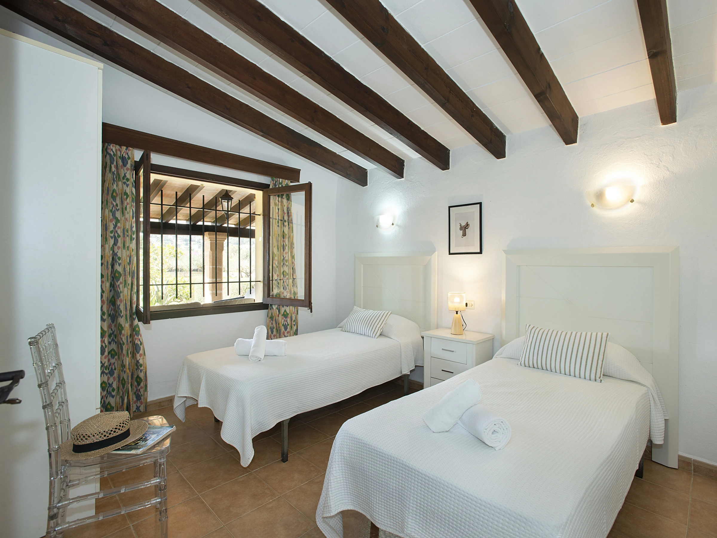 Chalet Moragues dispone de tres dormitorios en total. Uno de ellos es un dormitorio de matrimonio con baño en suite y agradables vistas al jardín. Los otros dos dormitorios cuentan con dos camas individuales cada uno, siendo ideales para familias o grupos de amigos. Además, hay un segundo baño con bañera que da servicio al resto de la casa.