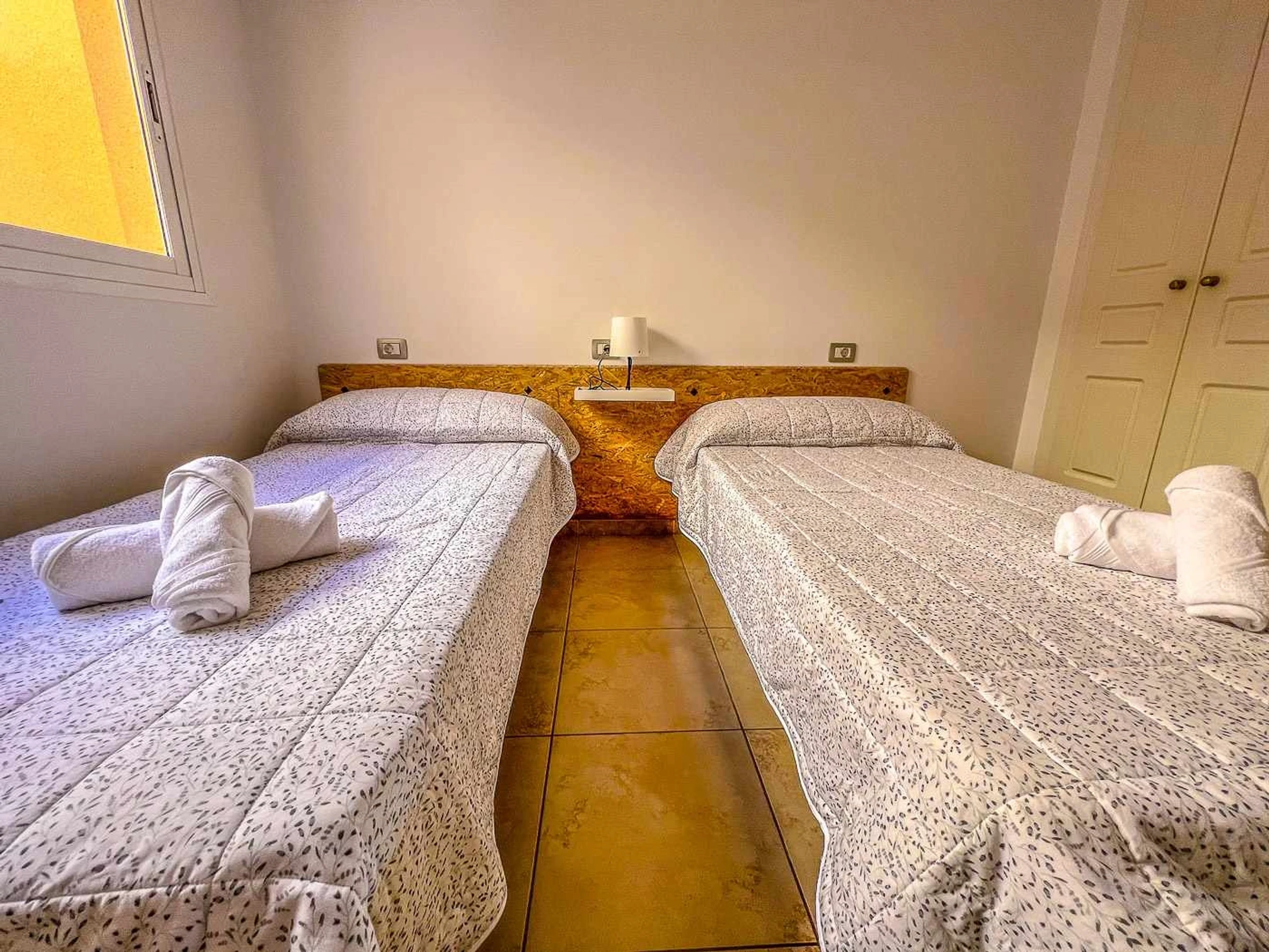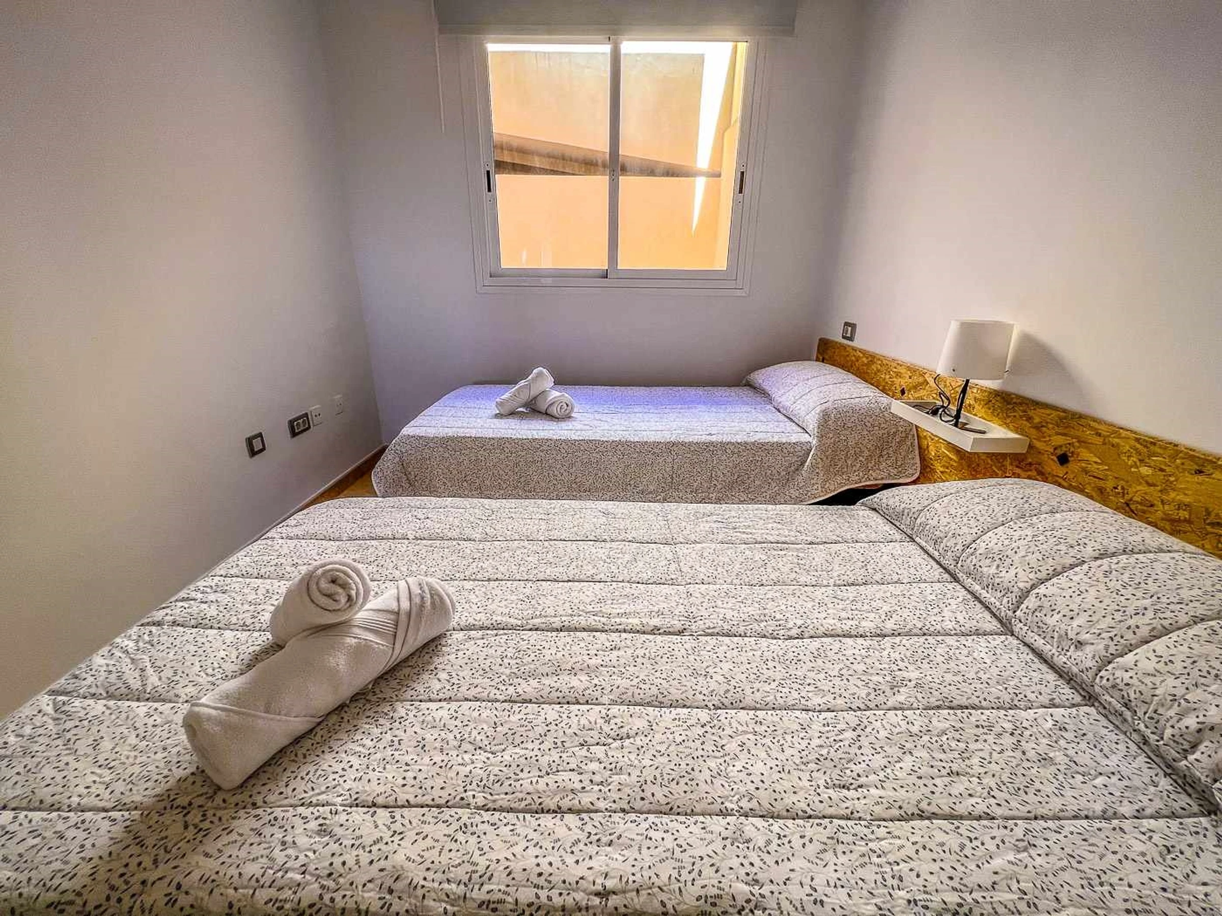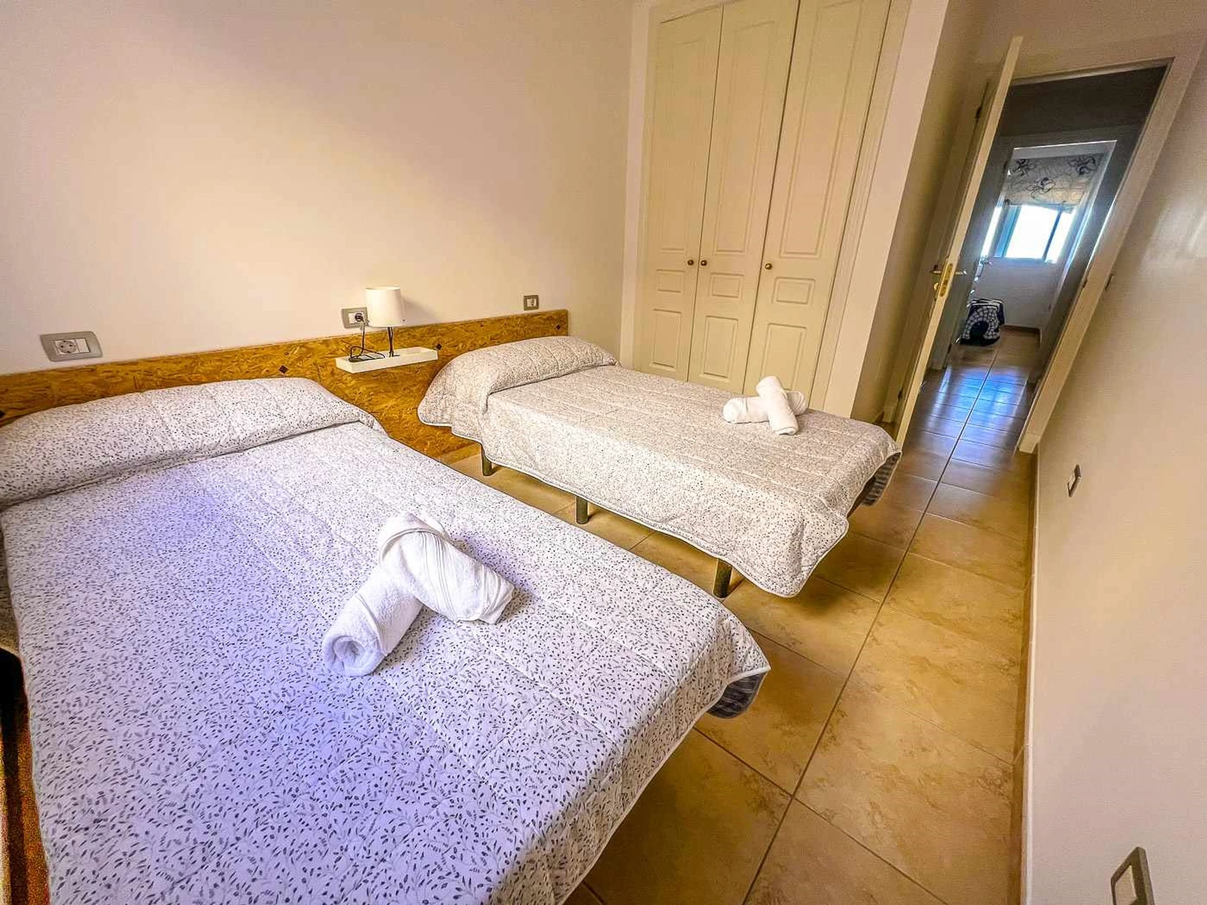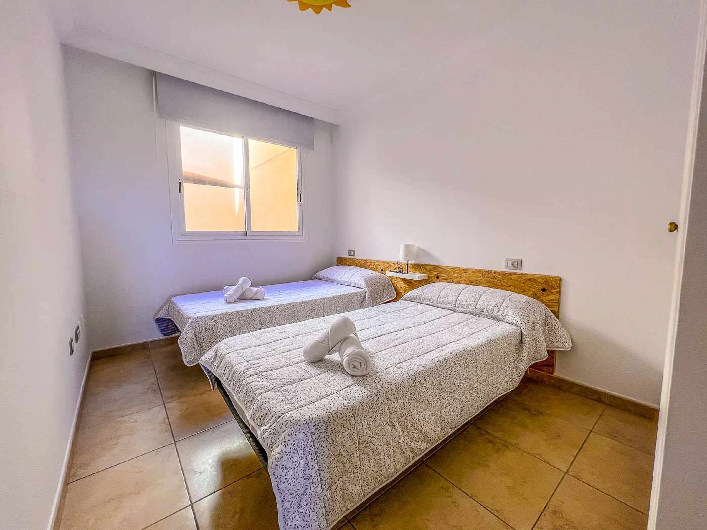 Tiene dos habitaciones, 1 con cama de matrimonio de 150x200 cm con armario y ventana con vistas a la terraza, y otra habitacion con dos camas individuales y armario, wifi fibra óptica y smart TV.