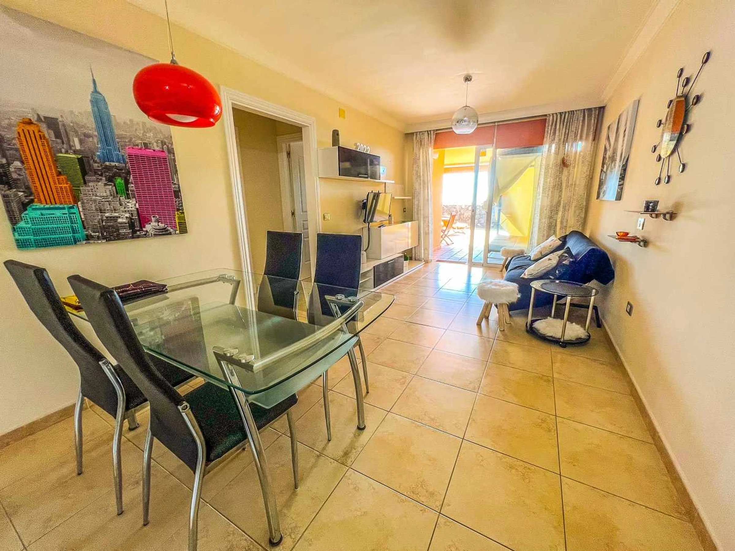 Rentaliday Faro de Lola es un apartamento con vistas al mar, parking privado y un solarium en Poris de Abona, Arico, Sur de la Isla de Tenerife, a pocos km del aeropuerto y a 150 metos de la playa y zona de restaurantes, cerca de las zonas mas turisticas de la isla. Tiene dos habitaciones, 1 con cama de matrimonio de 150x200 cm con armario y ventana con vistas a la terraza, y otra habitacion con dos camas individuales y armario, baño con ducha y una amplia terraza solarium con unas vistas espectaculares al mar y al Faro de Arona, con cama balinesa, columpio, tumbonas y una gran mesa con sillas de comedor exterior. Ademas tiene parking privado, piscina de adultos y piscina infantil y una cocina completamente equipada. TV smart TV e interne gratuito fibra optica de 600 mb. Residencial tranquilo, cerca de un centro comercial con supermercados y tiendas, cerca de un parque infantil y a 150 metros de la playa y del paseo maritimo.