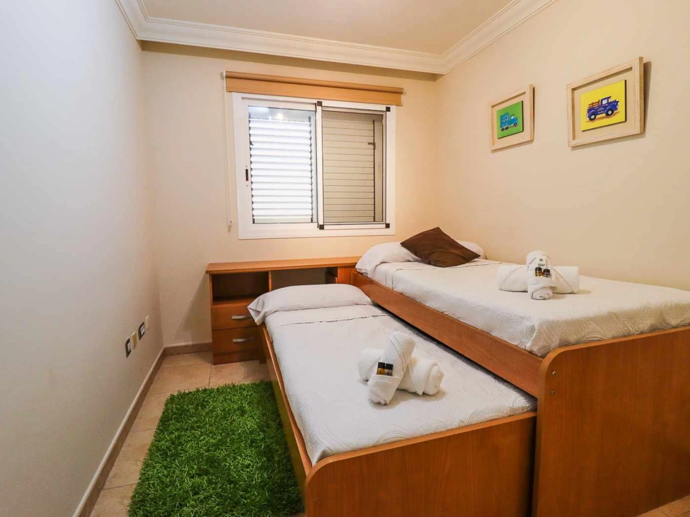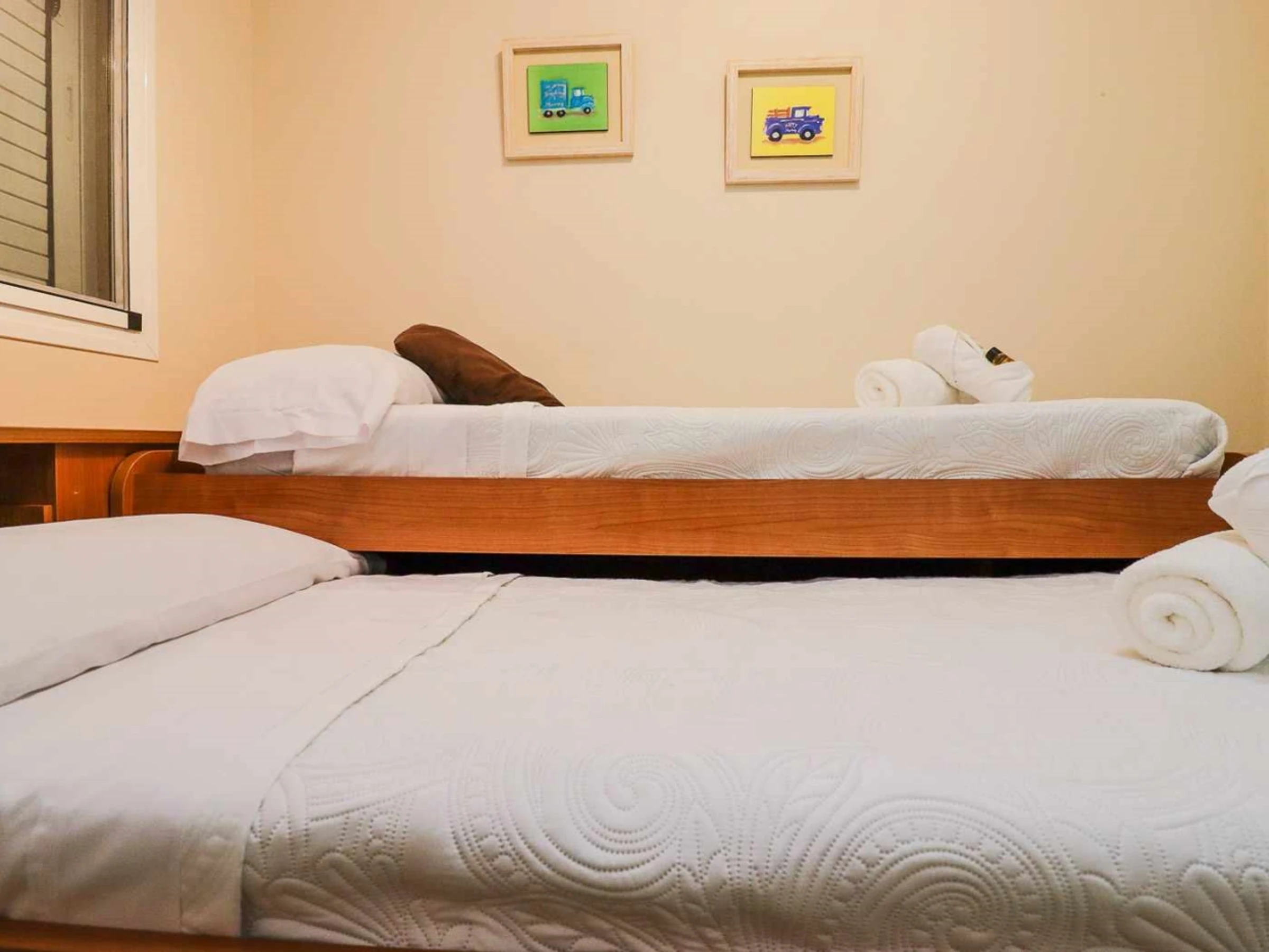 Tiene dos habitaciones, 1doble, y otra con dos camas individuales.