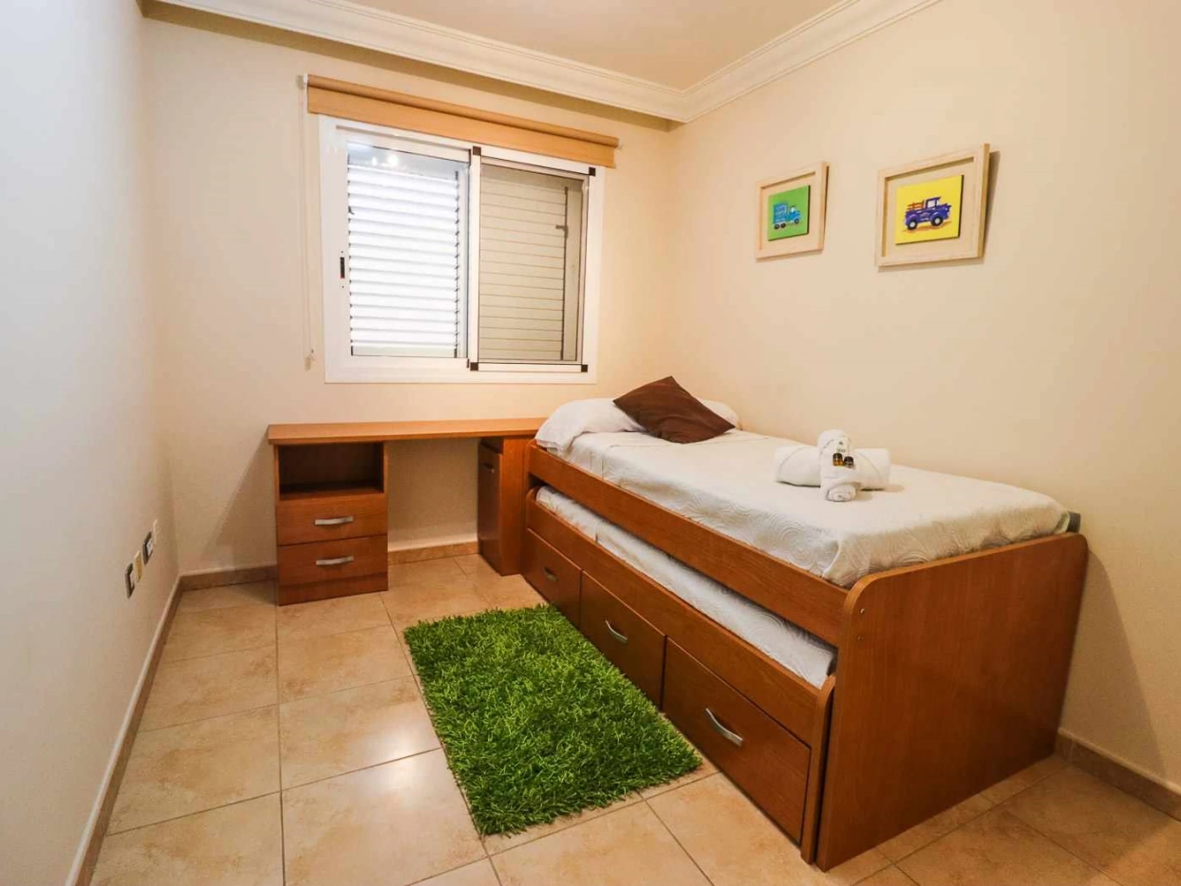 Tiene dos habitaciones, 1 con cama de matrimonio de 150x200 cm con armario y ventana con vistas a la terraza, y otra habitacion con dos camas individuales y armario, baño con ducha y una terraza con unas vistas espectaculares al mar.