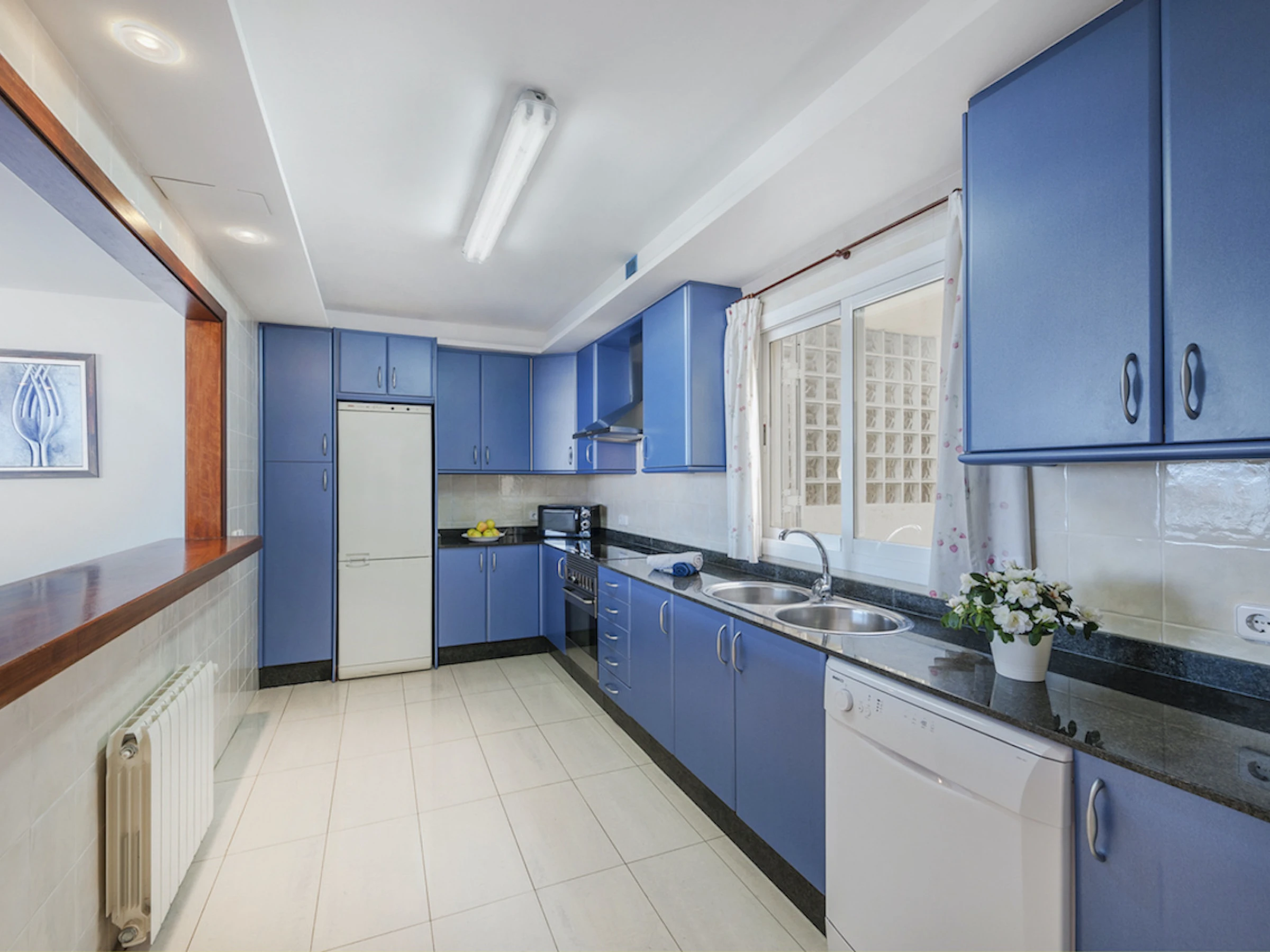 Perfecto para hasta 6 huéspedes, el apartamento cuenta con 3 dormitorios, 2 baños y una terraza de 43 m², ideal para disfrutar del desayuno junto al mar o de cenas al atardecer. La zona de estar-comedor con TV (Netflix, Prime, iPlayer) se abre directamente a la terraza, mientras que la cocina totalmente equipada y la zona de servicio añaden comodidad.