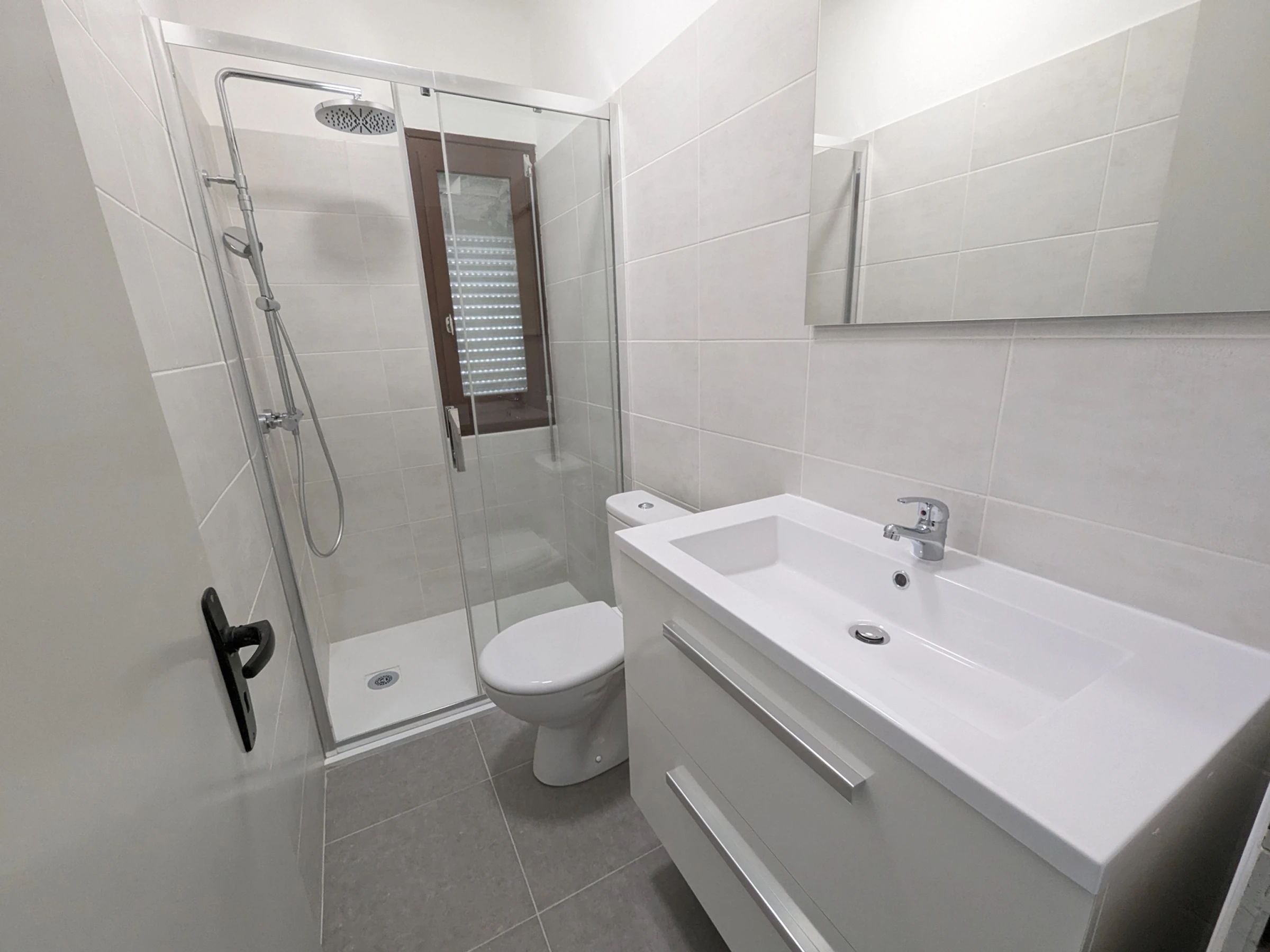 Dispone de 1 salón (sofá cama 2 personas), 1 zona de cocina equipada y pasaplatos, taburetes. . 1 cuarto de ducha reciente, 1 WC