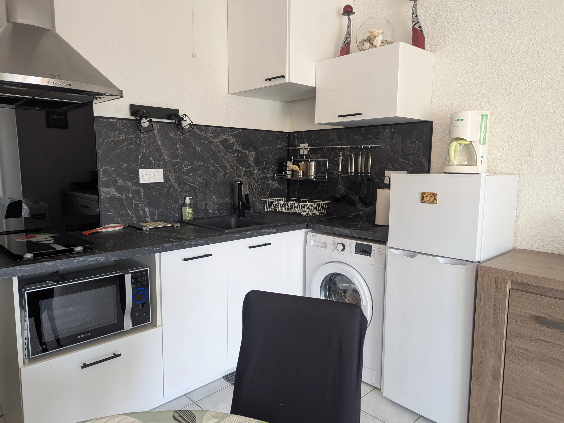 1 zona de cocina equipada. 1 baño. 1 baño. 1 hermoso dormitorio: (1 cama 140) armario empotrado.