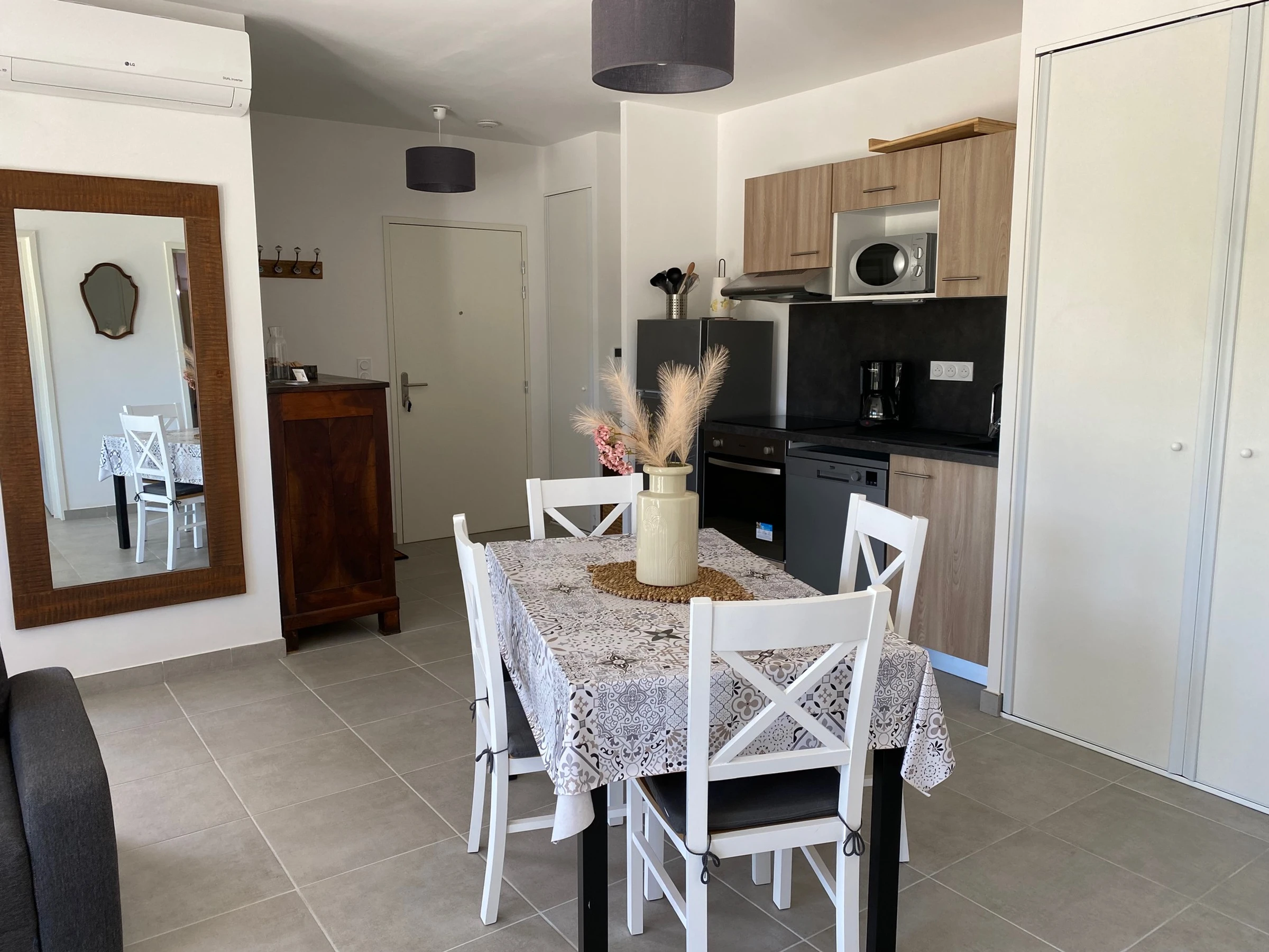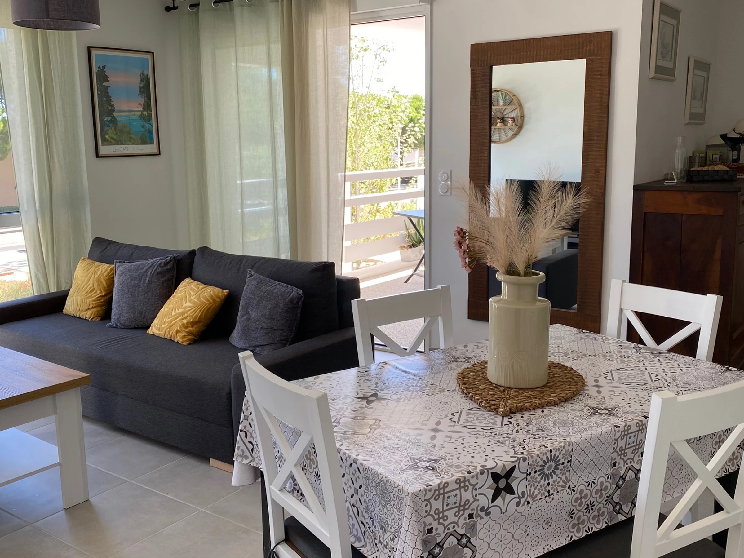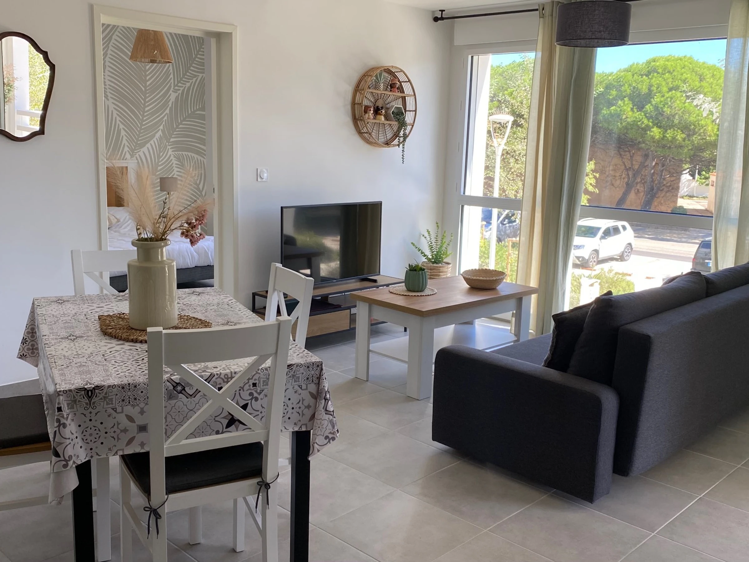 Ideal para 4 personas. Luminoso salón con aire acondicionado (sofá cama, TV) que da a una cocina americana totalmente equipada (nevera grande, lavavajillas, horno) y a una amplia terraza con vistas al bonito paseo marítimo (muebles de jardín, banco, sillones, barbacoa de gas). Dispone de un dormitorio (cama de matrimonio) y un baño completo con ducha y WC (lavadora). Se proporcionan sábanas y toallas. Servicio de limpieza incluido. Incluye plaza de aparcamiento privada y segura dentro de la residencia. No se admiten mascotas. A 400 m de la playa. Este privilegiado complejo costero goza de una ubicación única en la franja de costa que separa la laguna de Leucate y sus criaderos de ostras del Golfo de León. Con viñedos que se extienden hasta donde alcanza la vista como telón de fondo, el majestuoso Canigó, el pico más alto de los Pirineos Orientales, y sus pistas de esquí a tan solo una hora y media, la mirada se dirige al horizonte: el mar Mediterráneo se abre ante ti, junto con sus magníficas playas que se extienden a lo largo de 18 km.