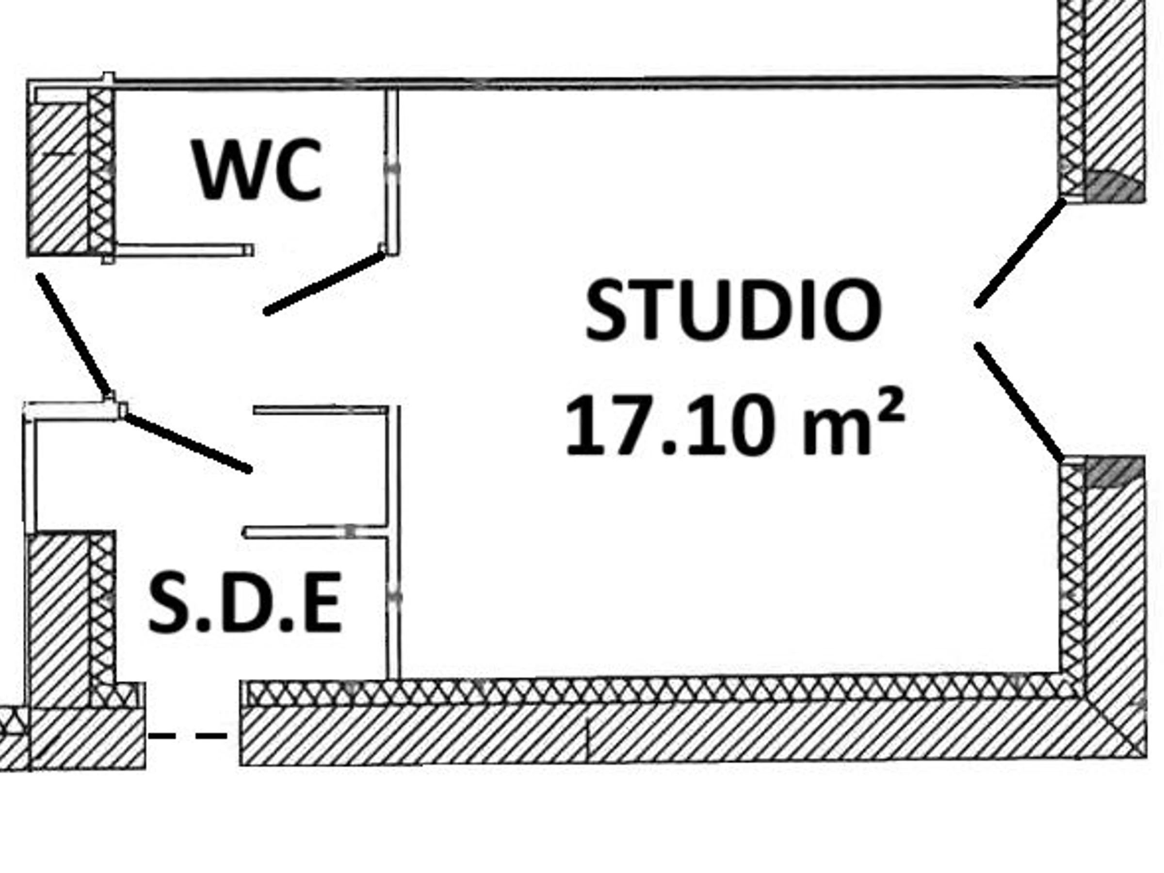 Estudio de una sola planta con una pequeña cocina elegantemente equipada, una cama queen size (160x200), baño con ducha y aseo independiente.