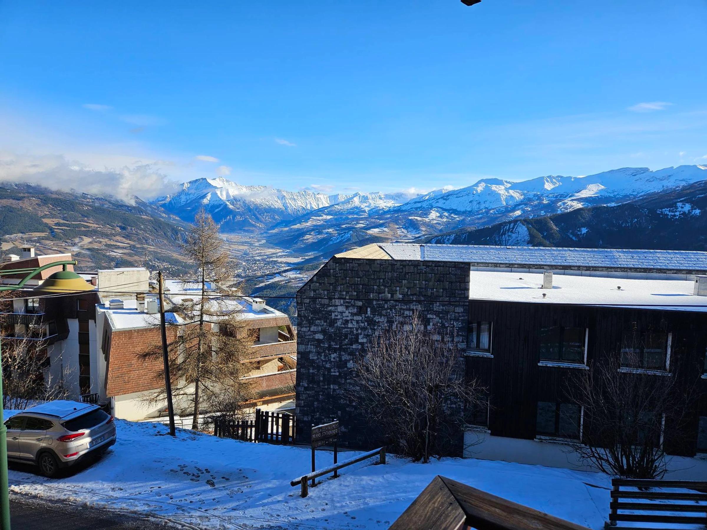 Casa individual con 4 dormitorios para 9 personas, 120 m² aproximadamente. Distribuida en 2 plantas, con garaje y plaza de aparcamiento privada frente al chalet. Orientada al este, con balcón y vistas al valle y al Pain de Sucre.