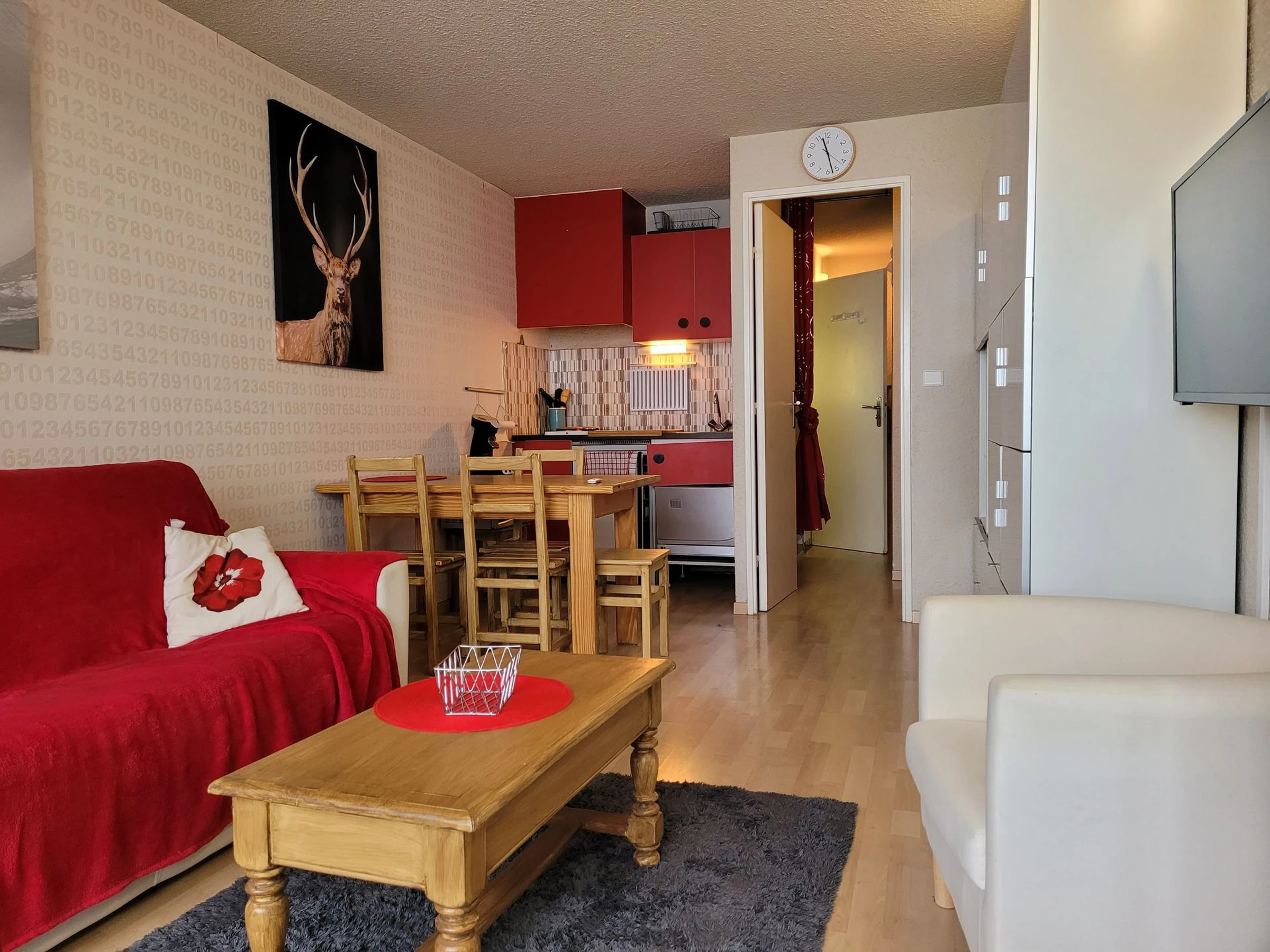 Estudio para 4 personas, de aproximadamente 24 m². Ubicado en la planta 4 (entrada de la residencia en la planta 5) con ascensor. Orientado al sur, con balcón y magníficas vistas a las montañas y a la cima del Pain de Sucre.