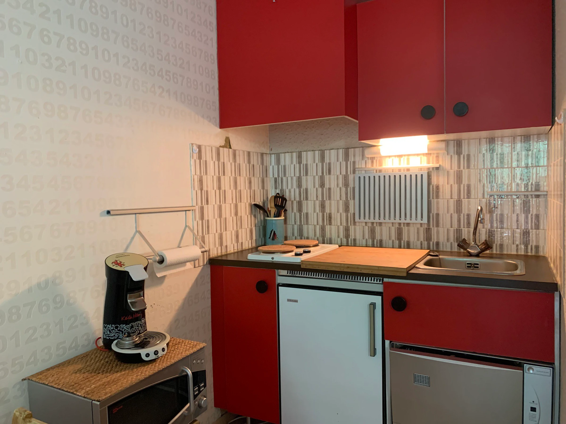* Cocina americana: Frigorífico pequeño, 2 placas eléctricas, microondas, cafetera Senseo, hervidor de agua, tostadora;