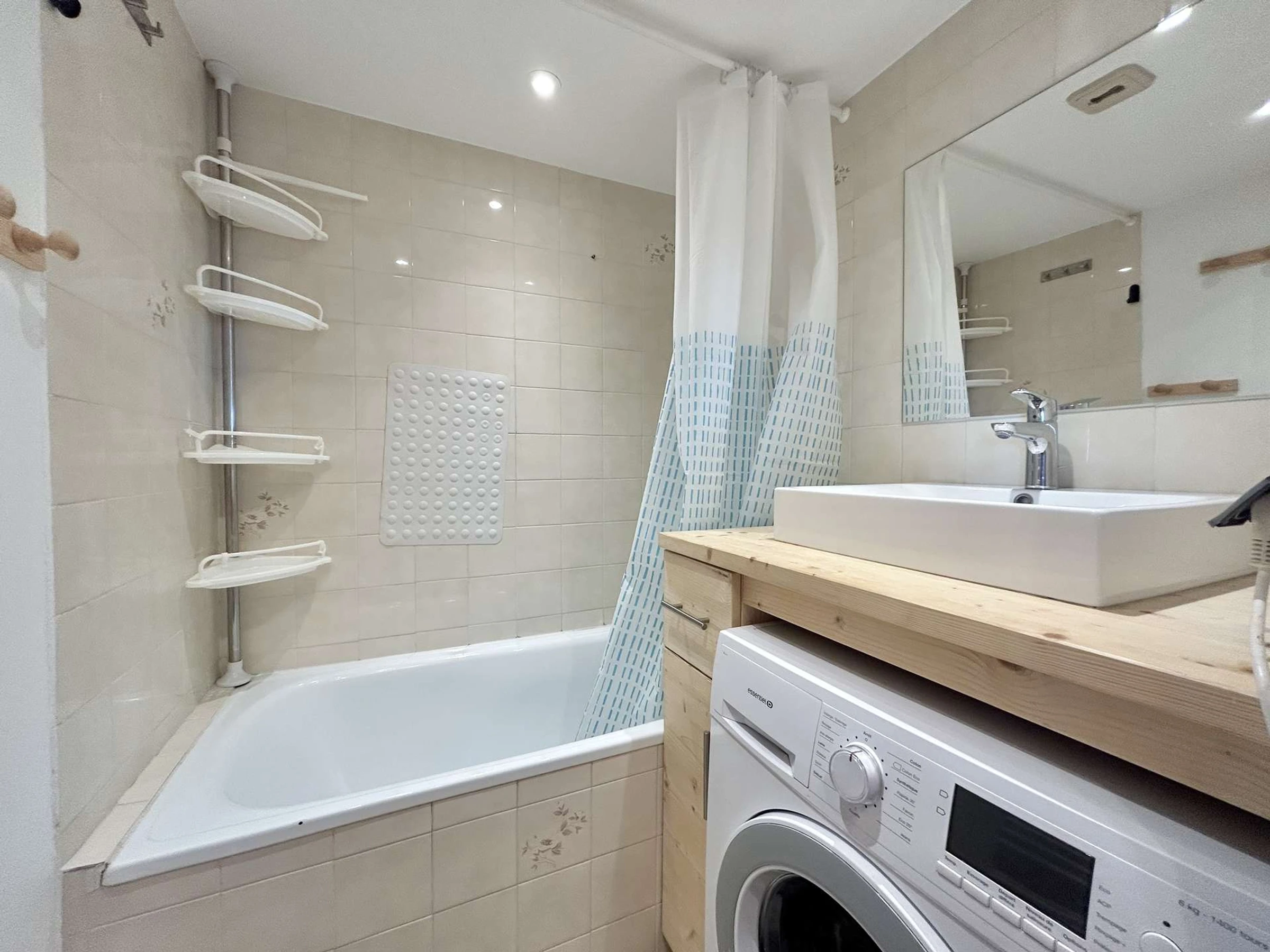 Ubicado en la segunda planta, este apartamento vacacional de aproximadamente 33 m² cuenta con salón-comedor con sofá cama doble, cocina americana, dormitorio con cama doble doble, alcoba con litera doble doble, baño con bañera y aseo independiente.