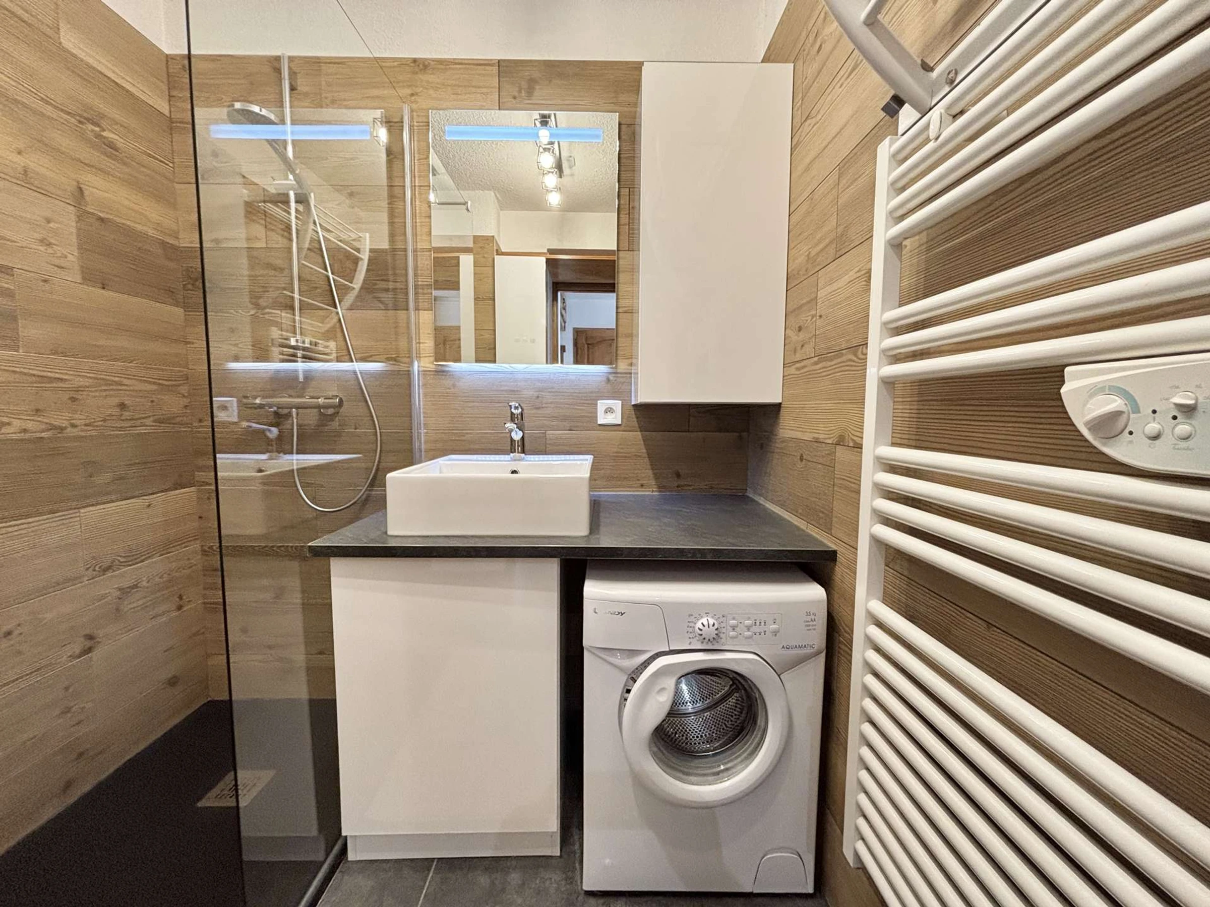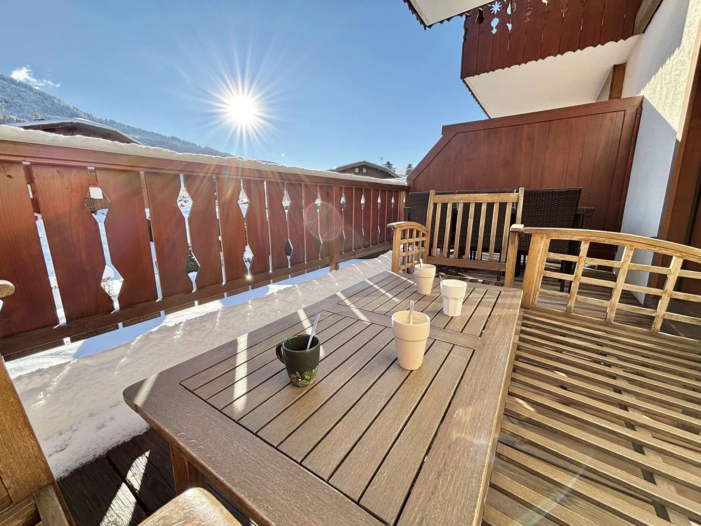 Dispondrá de acceso a una plaza de aparcamiento exterior y a un guardaesquís privado. La terraza orientada al sur ofrece vistas a las montañas circundantes.