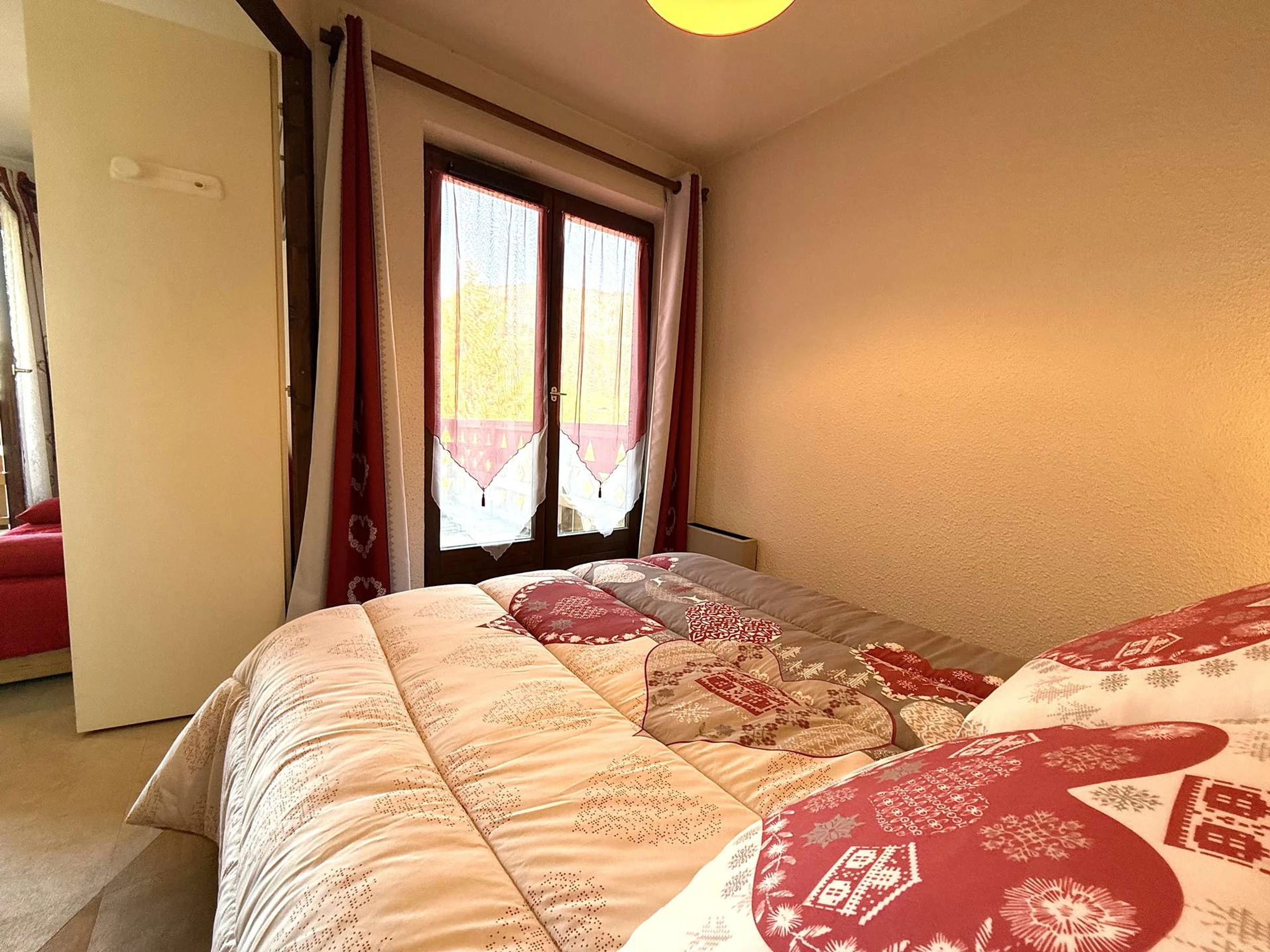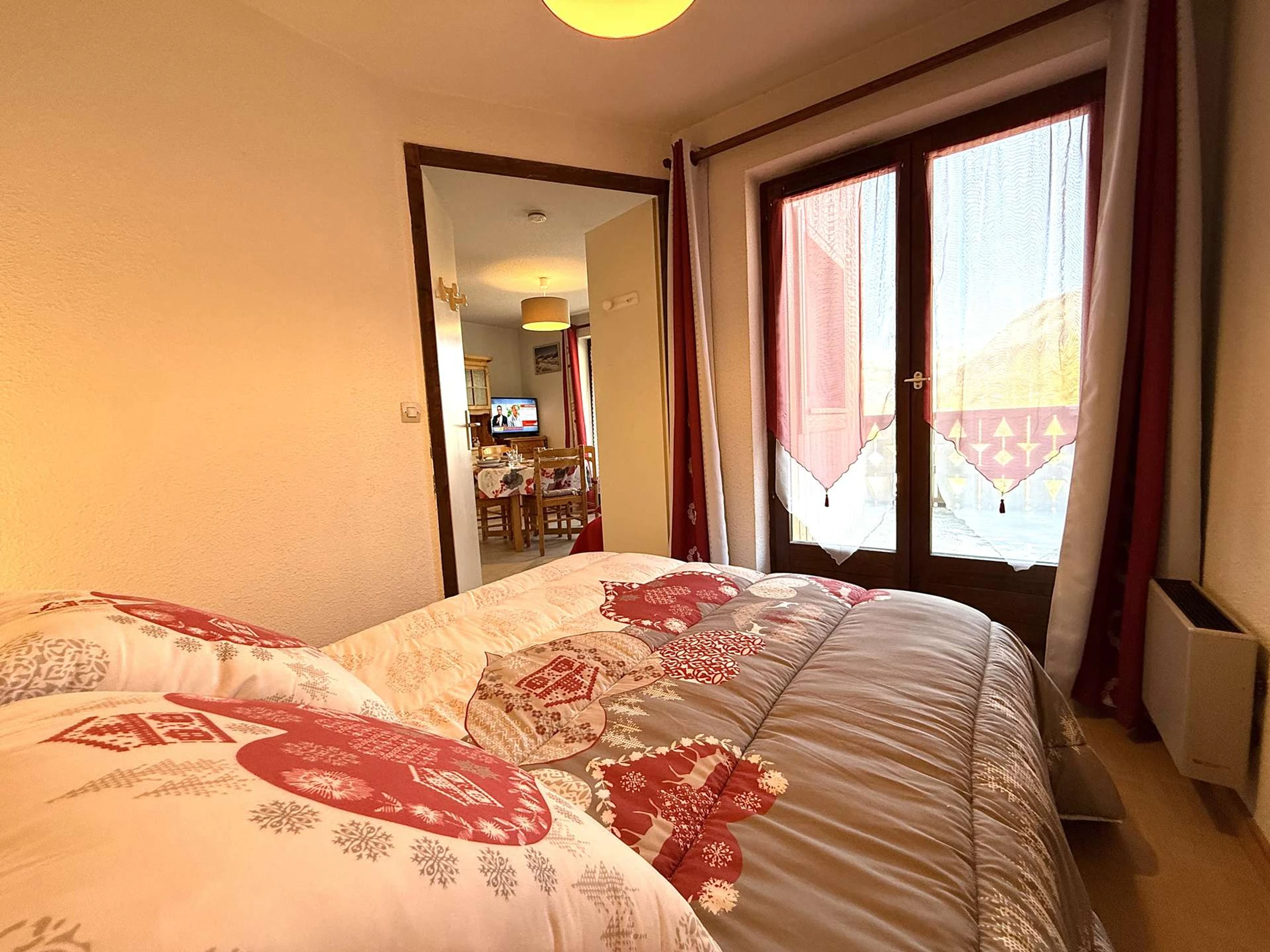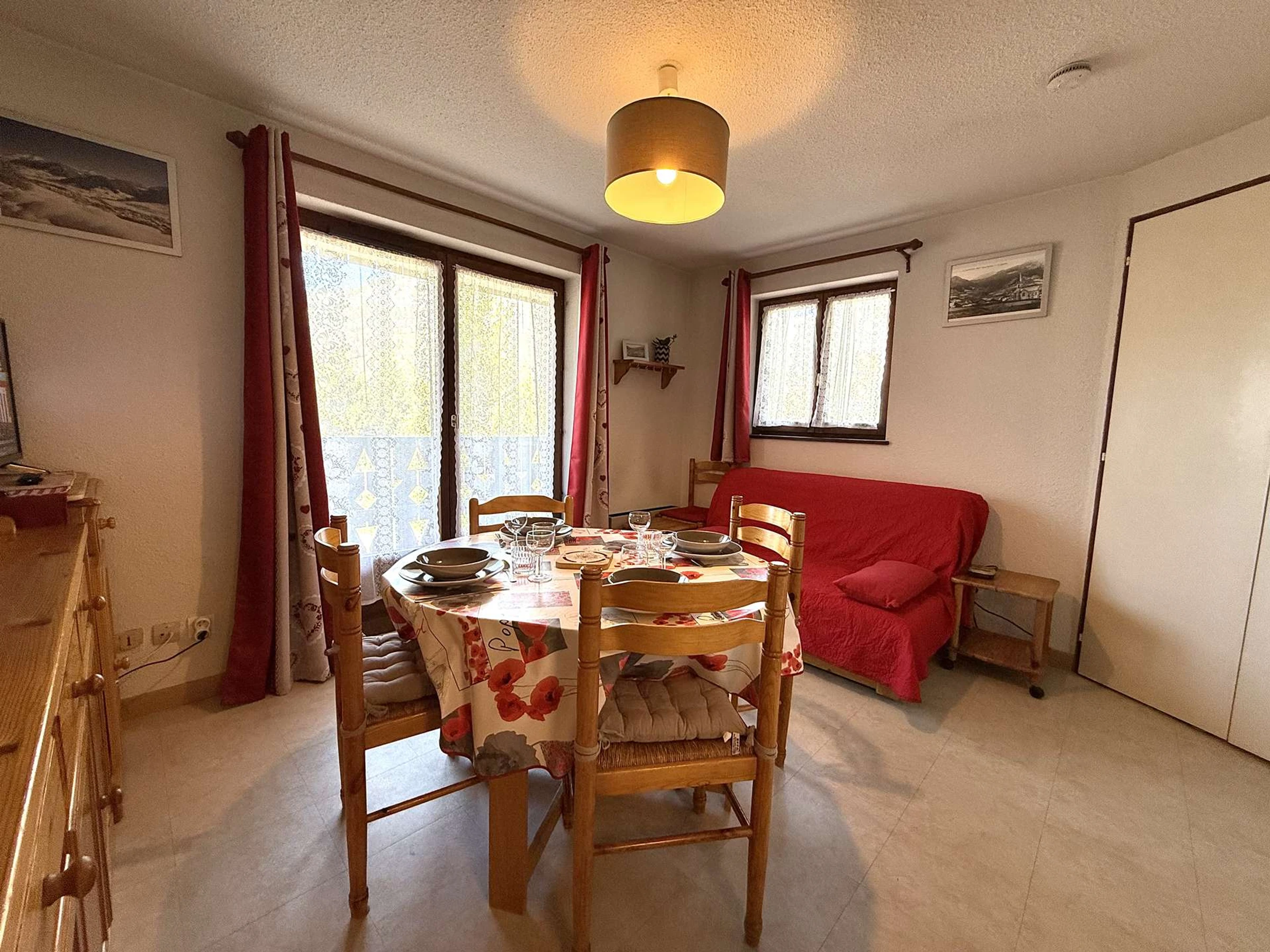 Ubicado en la primera planta (sin ascensor) de una residencia junto a las pistas de esquí, este alojamiento vacacional de montaña de 28 m² consta de salón-comedor, cocina americana totalmente equipada, un dormitorio con cama doble, un rincón dormitorio con dos literas individuales, un baño con bañera y un aseo independiente.