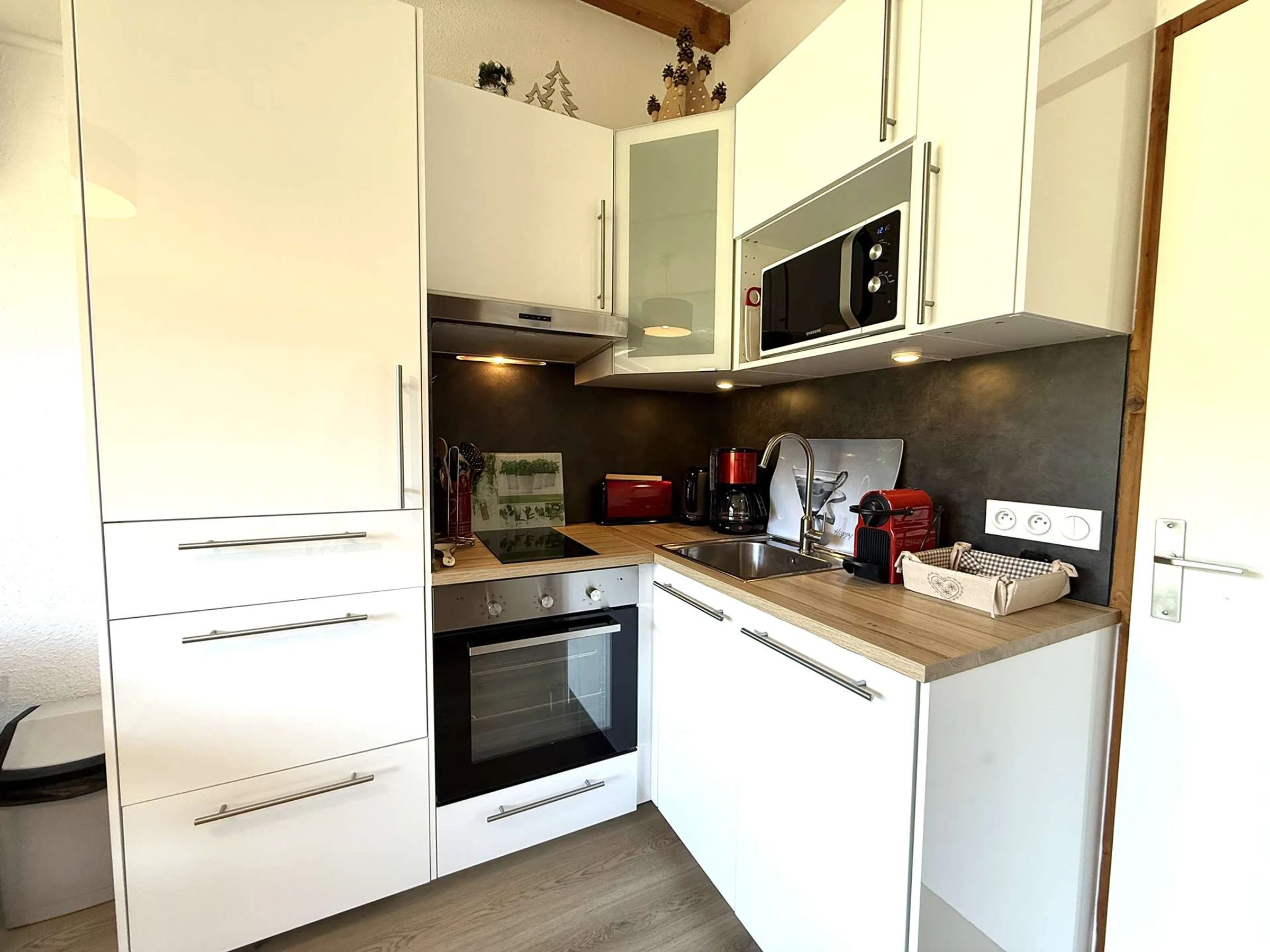En una residencia tranquila, disfrutará de un guardaesquís privado y aparcamiento exterior designado. El balcón ofrece una magnífica vista panorámica de las pistas de esquí y del pueblo.