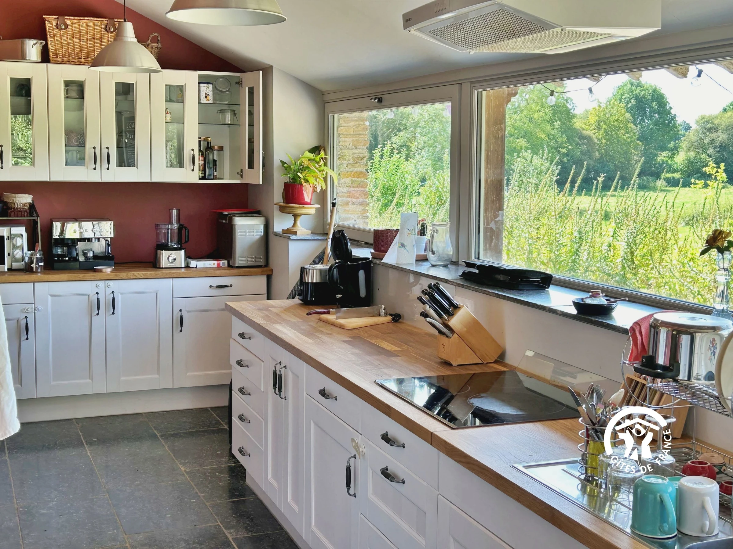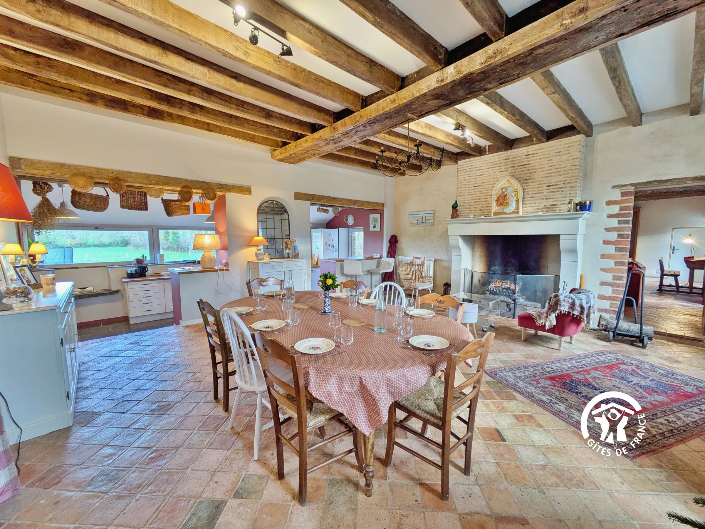 Estancia de negocios: Máximo 5 personas. Situada en una finca ajardinada de más de 7500 m², se trata de una casa independiente de dos plantas. PLANTA BAJA - Entrada con futbolín (25 m²), armario con lavadora y secadora - Comedor (39 m²) con chimenea que da a la cocina totalmente equipada (15 m²) (horno, vitrocerámica, microondas, frigorífico y congelador, cafetera de filtro Magimix y cafetera exprés, hervidor de agua, lavavajillas, raclette) - Salón (35 m²) con televisión, reproductor de DVD y chimenea decorativa - Aseo independiente - Dormitorio (1) (18 m²) con cama de 160 x 200 cm, espacio de almacenaje y baño privado (4 m²) con bañera, lavabo y secador de pelo, terraza privada.