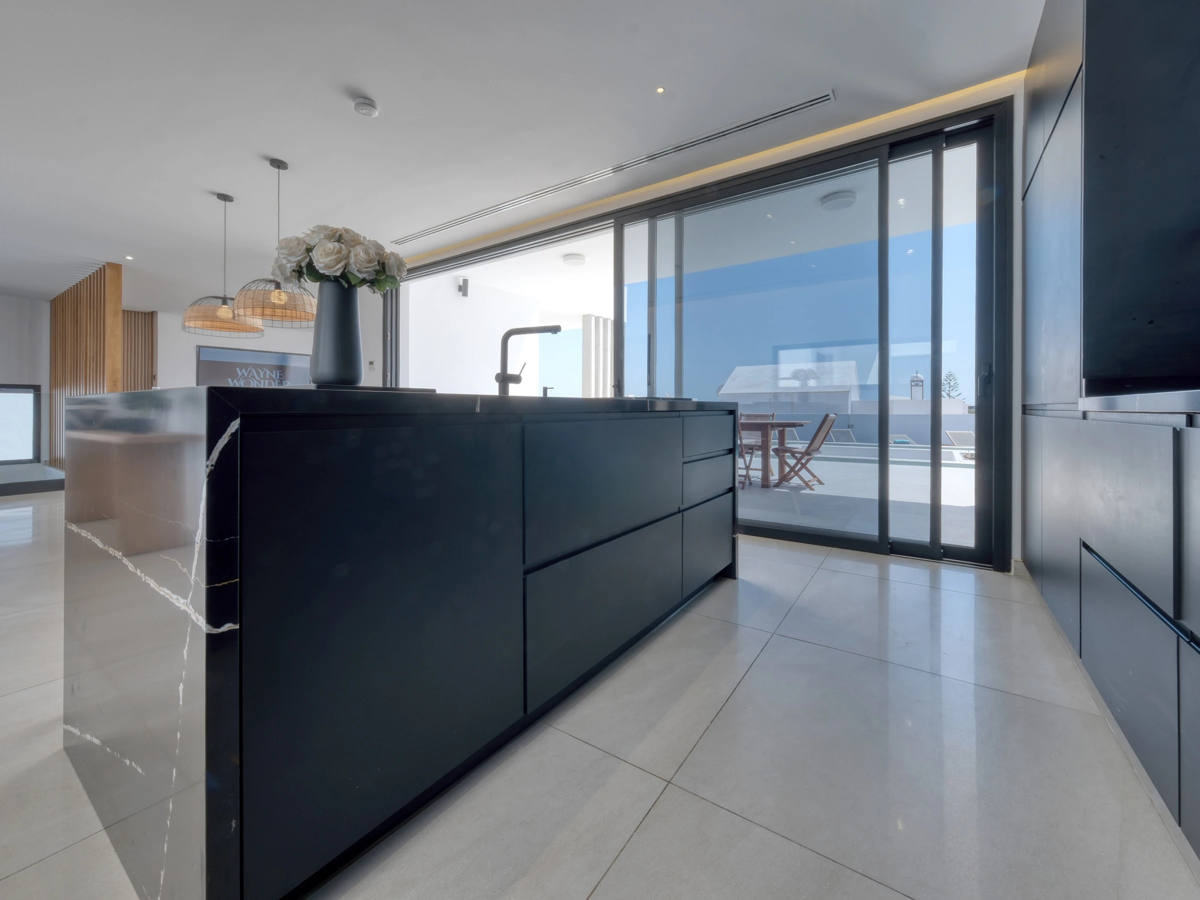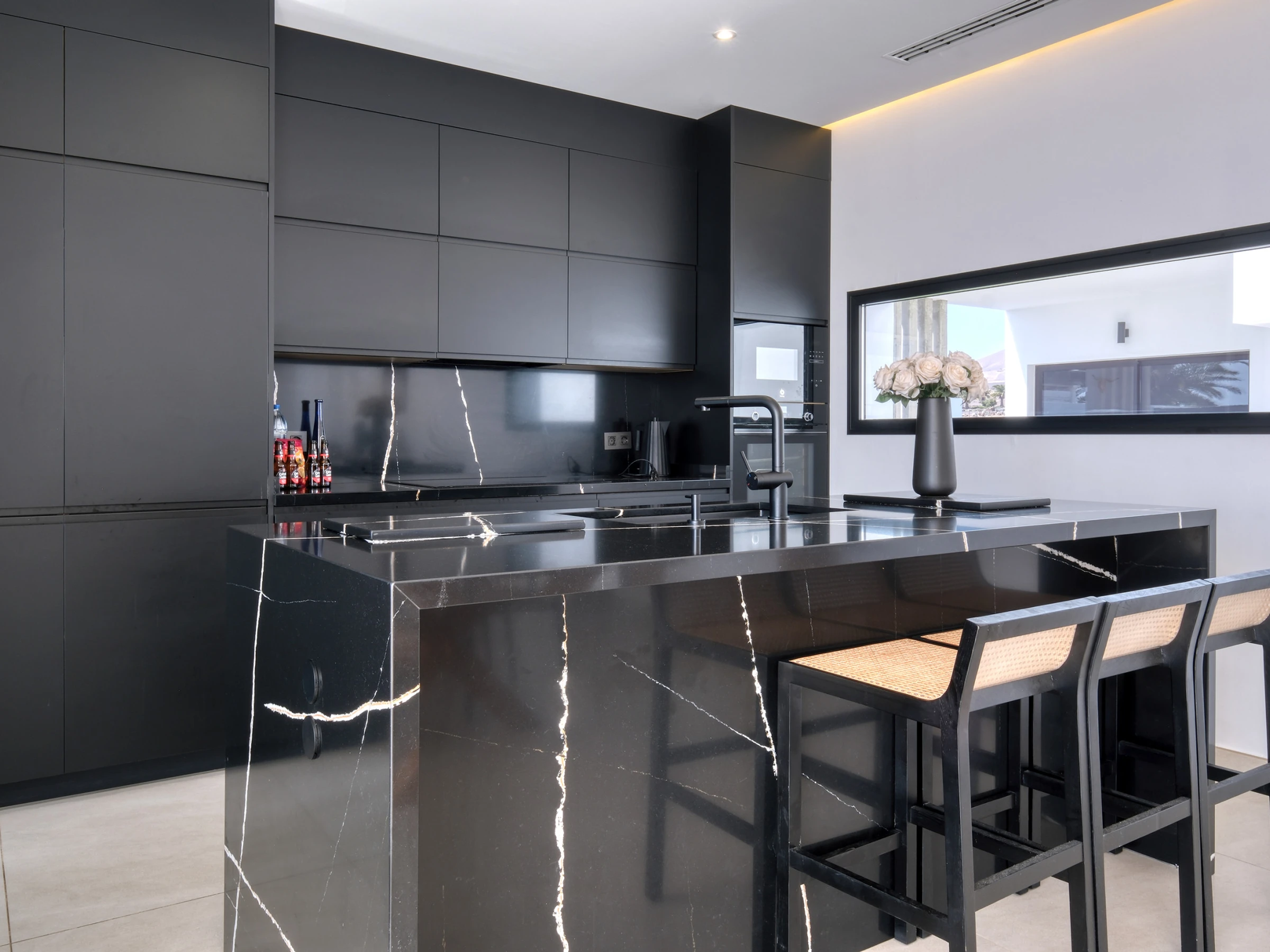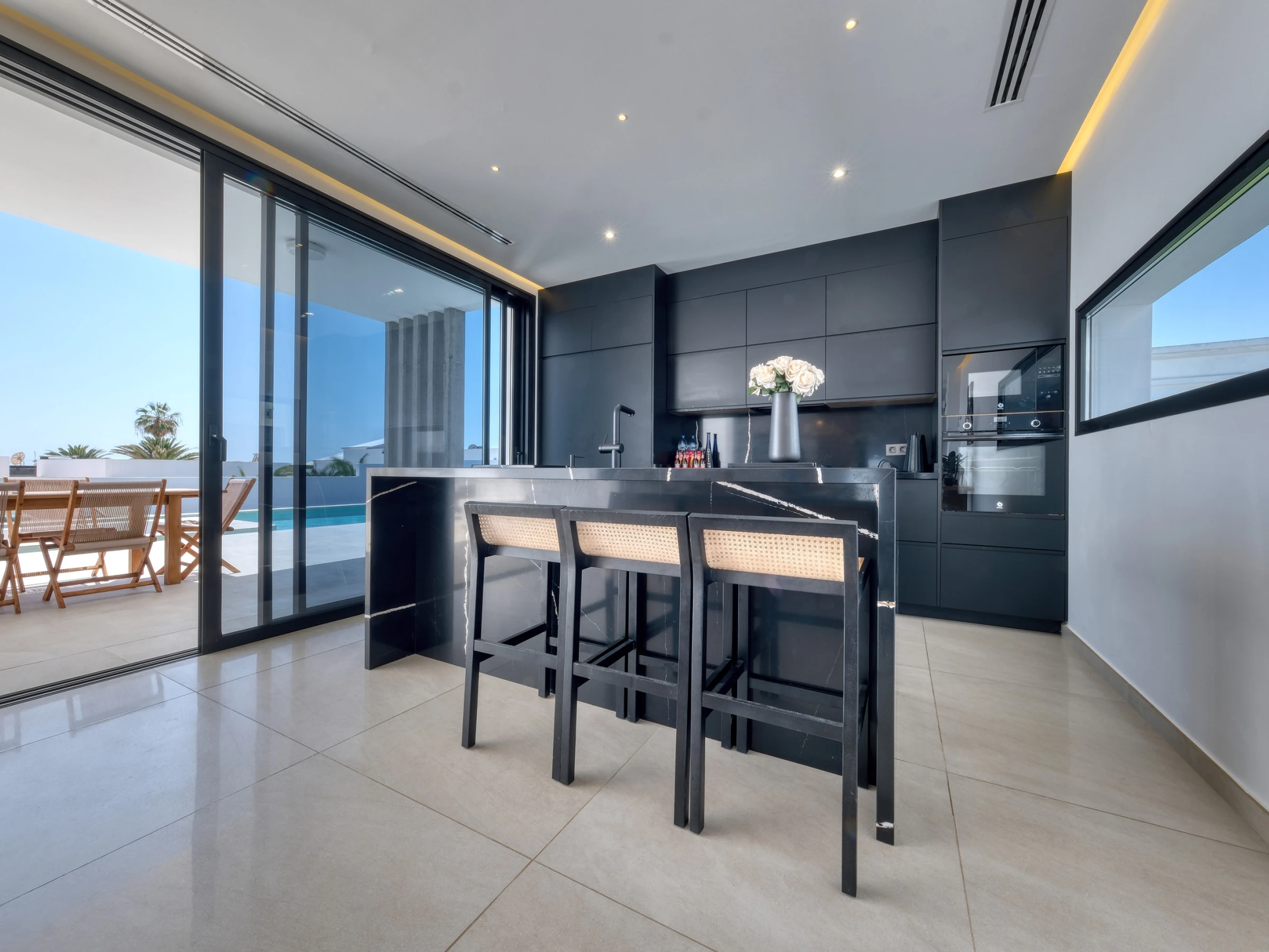 La cocina, totalmente equipada con todo lo necesario, transmite un ambiente de lujo relajado, comodidad y practicidad, ideal para disfrutar de unas vacaciones sin renunciar al estilo y al buen gusto. Es un espacio pensado tanto para cocinar como para socializar y compartir momentos en un entorno sofisticado.
