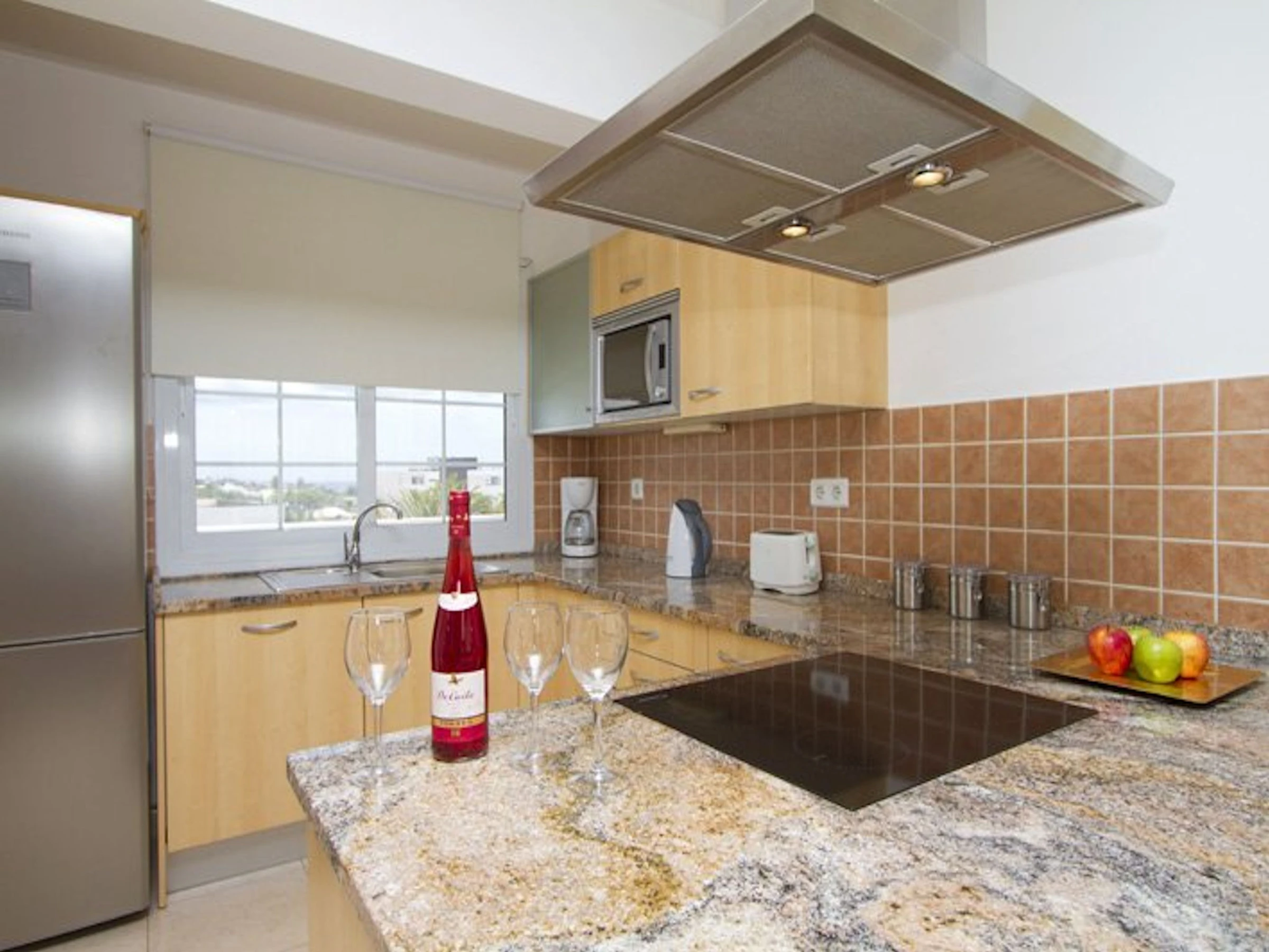 La cocina, está equipada con nevera, microondas, horno, congelador, lavavajillas, cafetera, tostadora y hervidor de agua.