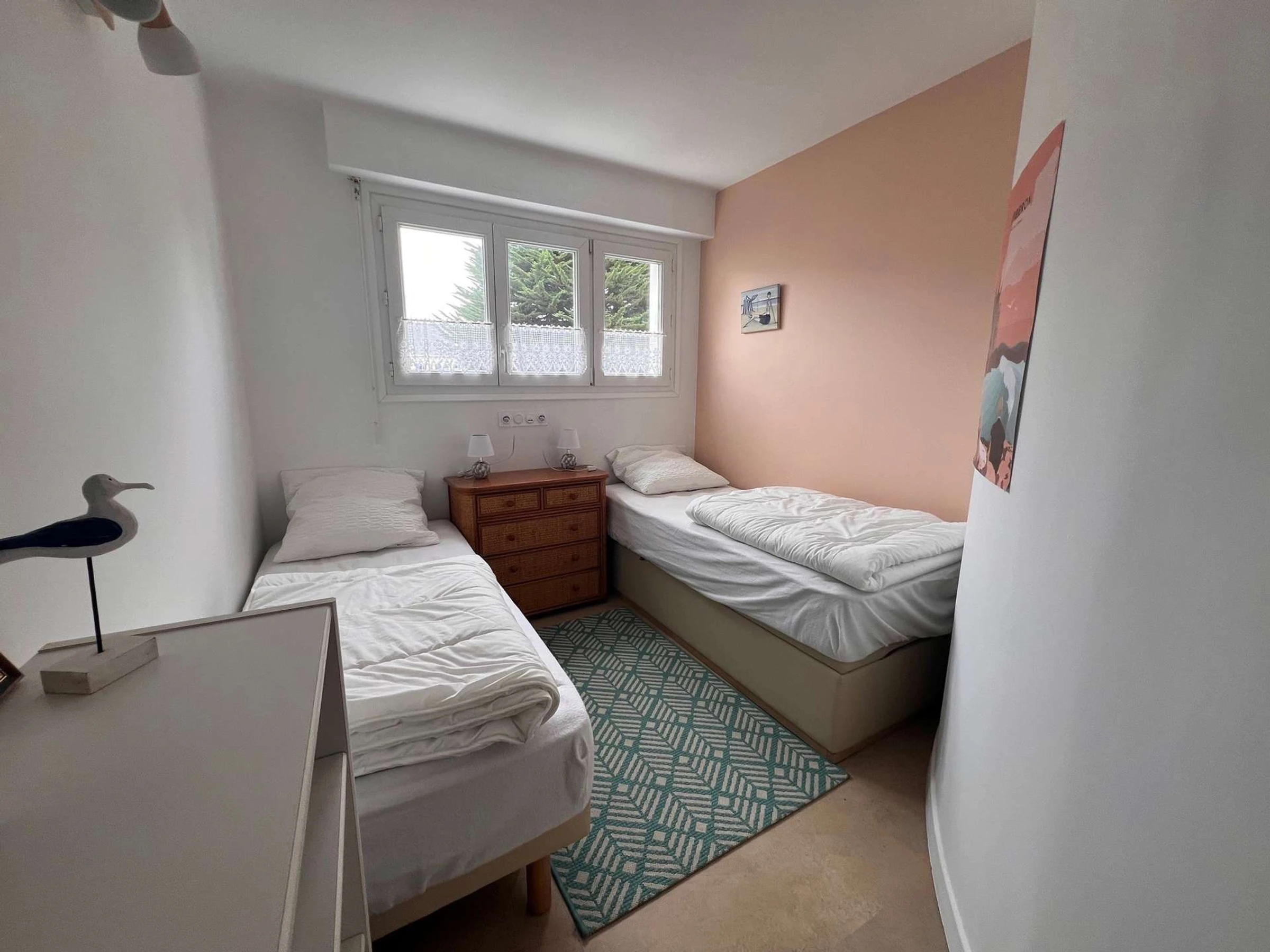 - Un segundo dormitorio con dos camas individuales (80x190 cm) y trastero.