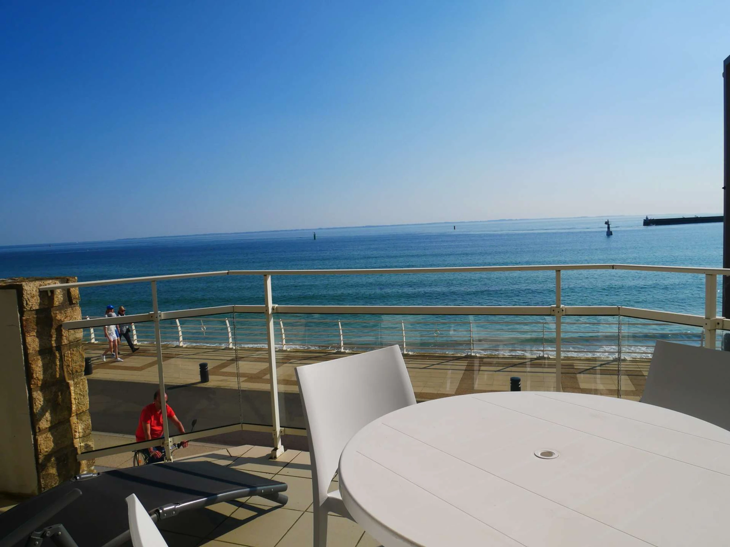 Apartamento tipo estudio de lujo para 3 personas, totalmente reformado, en la primera planta, puerta nº 2 de la residencia Nausicaa. Ofrece vistas directas al mar, frente a la playa Grande Plage de Quiberon y a pocos pasos del centro.