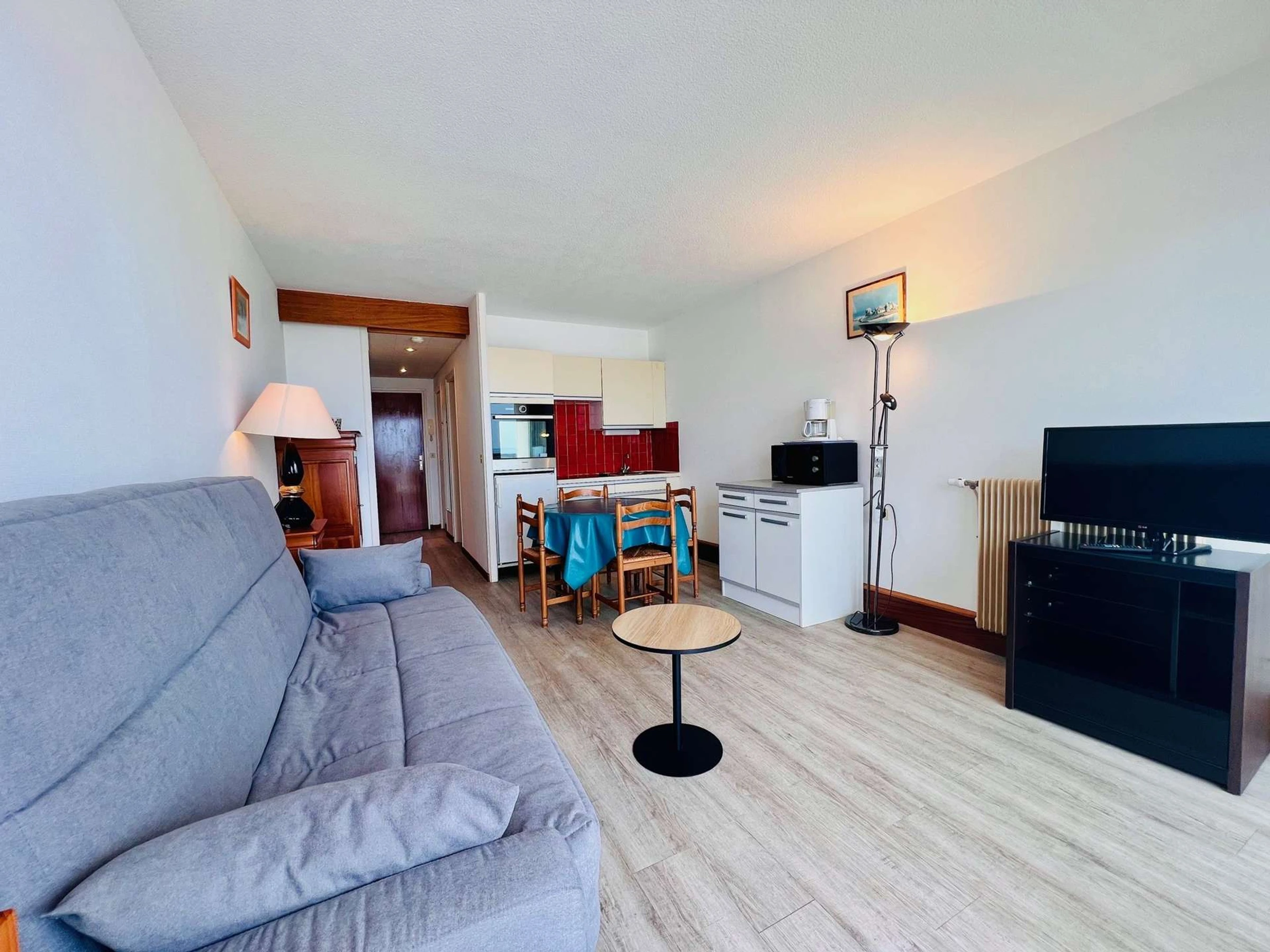 - Salón con TV y sofá cama (con manta),