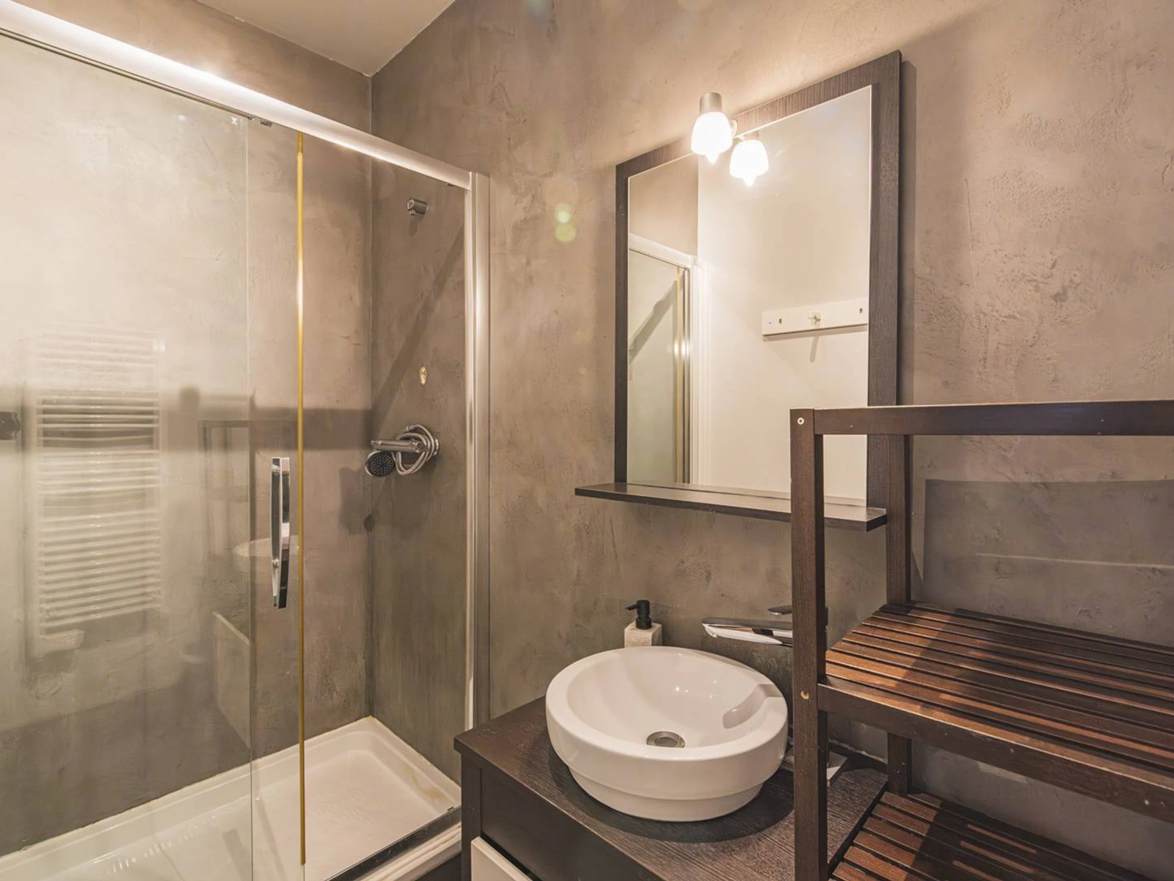 El moderno y elegante cuarto de baño con ducha y WC independiente realzan aún más la practicidad del espacio. El apartamento, bien distribuido, ofrece todas las comodidades necesarias para relajarse después de un día explorando. A pesar de su céntrica ubicación, es muy tranquilo, ofreciendo un equilibrio perfecto entre la vida urbana y la tranquilidad.