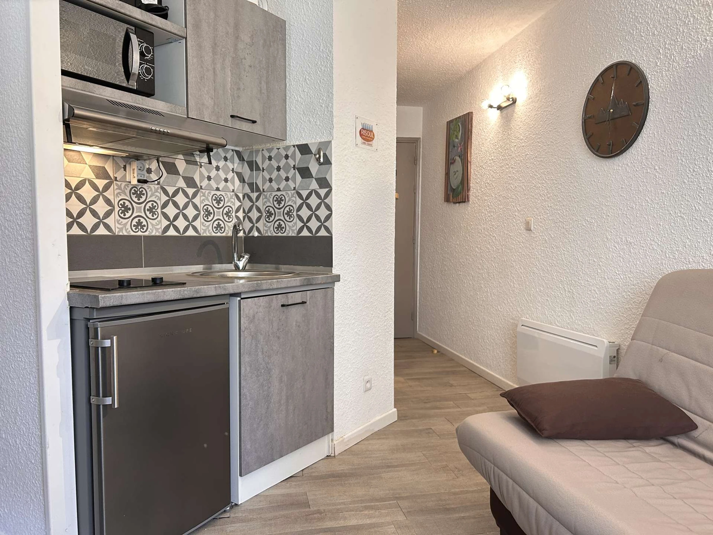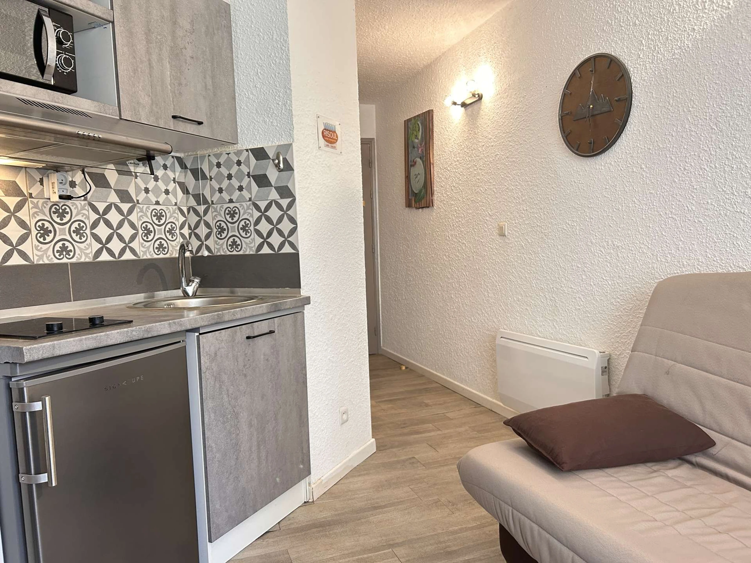 Situado en la planta baja de una residencia en el centro turístico, este apartamento vacacional consta de una alcoba con dos literas y una sala de estar con sofá cama.