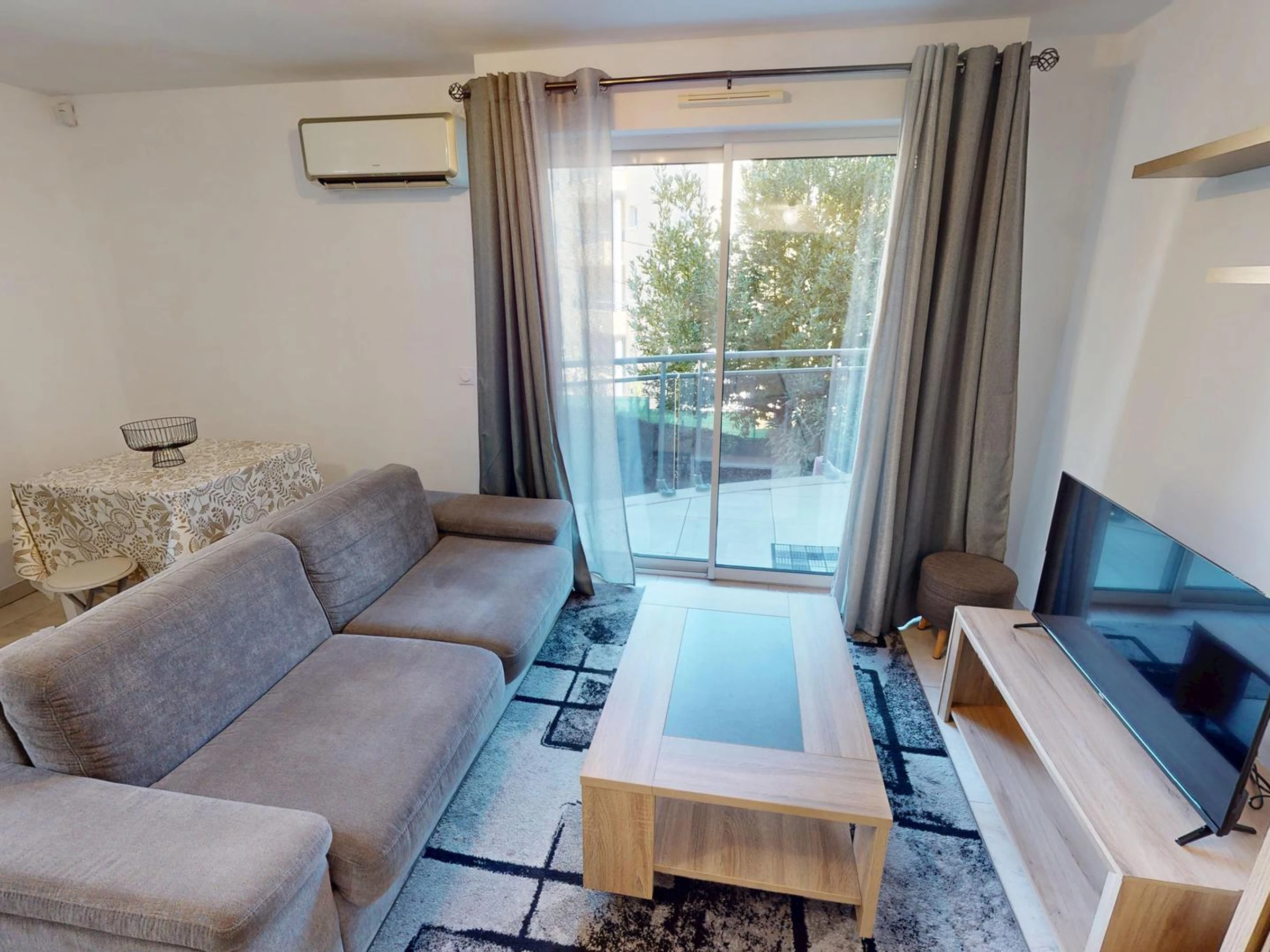 Sala de estar con sofá cama doble ultra cómodo de 140x190cm y Smart TV.