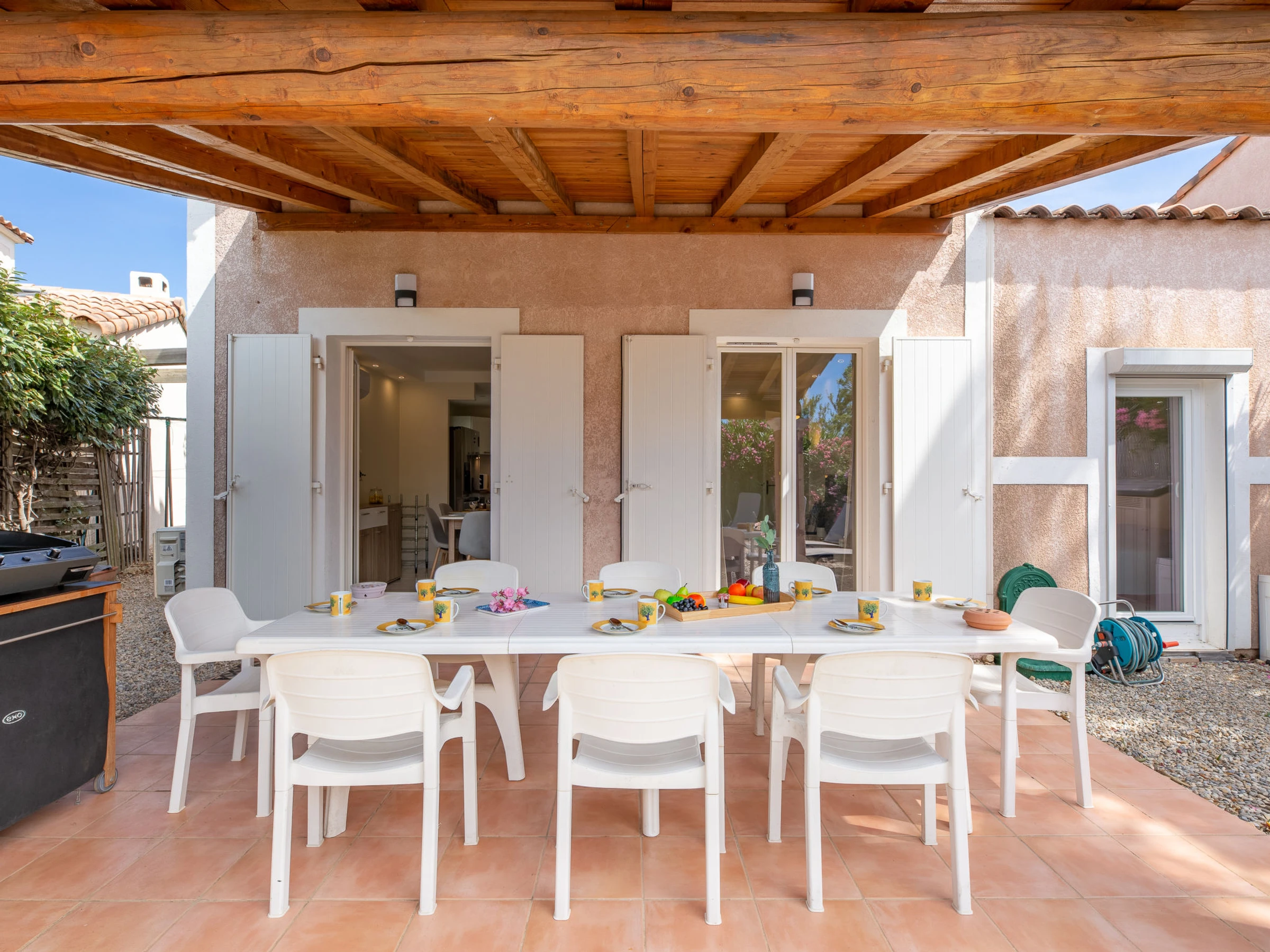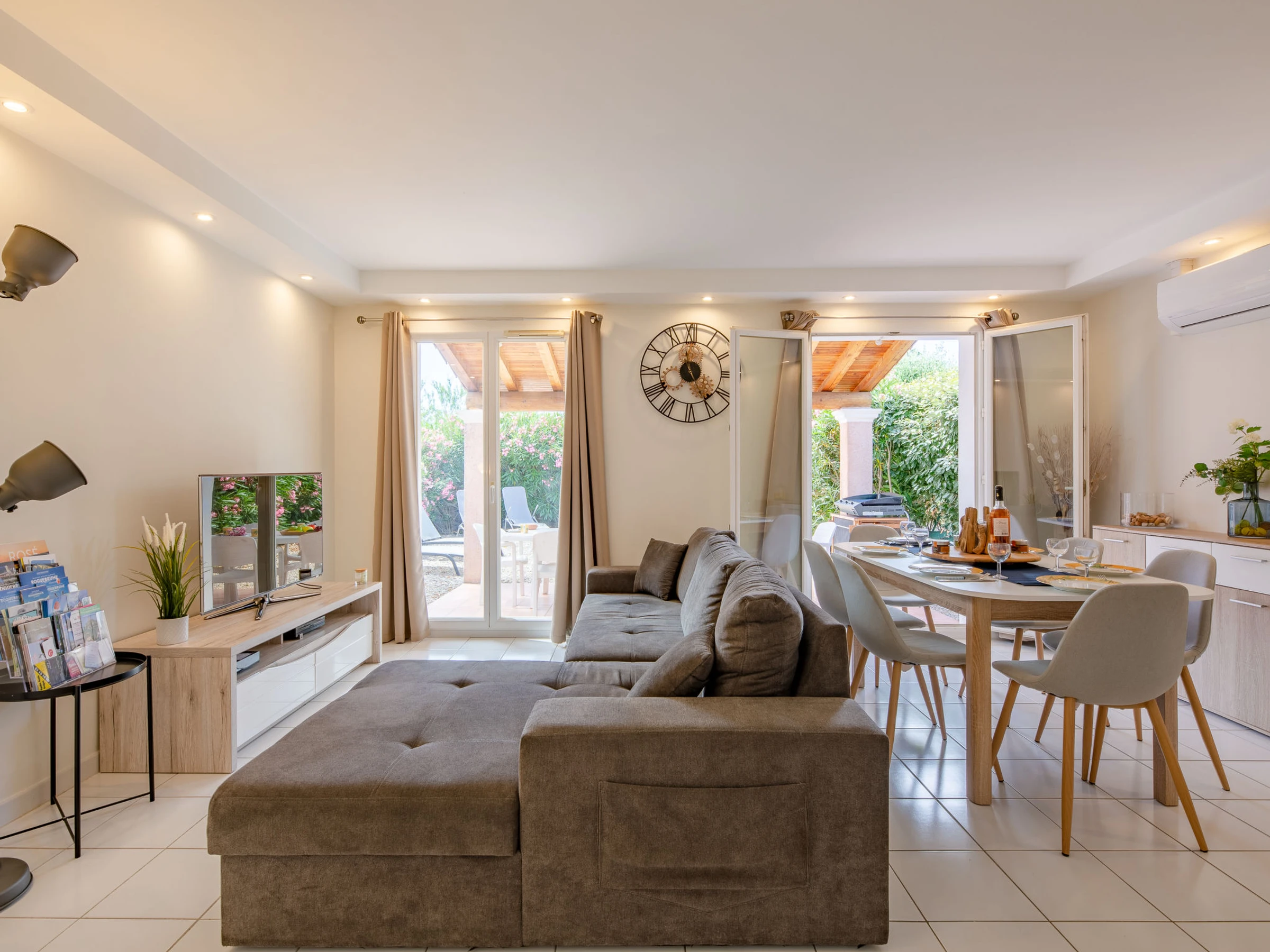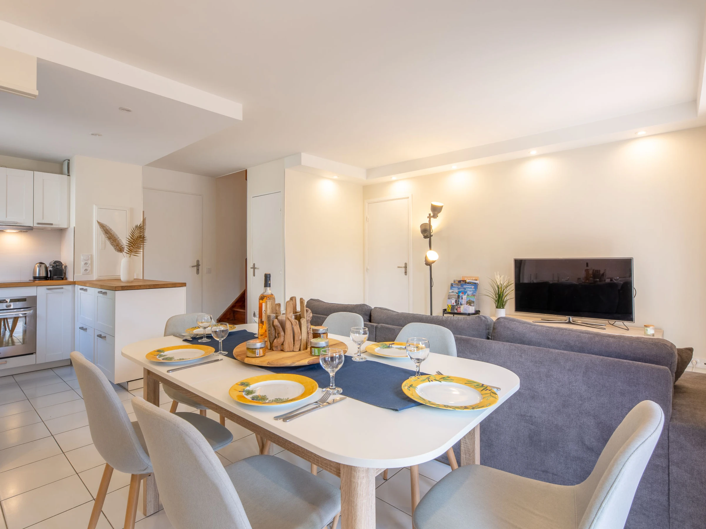 Casa adosada 4 estancias 75 m2 en 2 plantas. Reformada en 2023, con mobiliario moderno: salón-comedor con TV (pantalla plana), DVD y aire acondicionado. Salida a la terraza, a la terraza-jardín. 1 dorm. con Vestidor con 1 cama de matrimonio (1 x 160 cm, 200 cm de longitud), aire acondicionado. Salida a la terraza. Cocina abierta (horno, lavavajillas, 4 Placas de inducción, tostadora, hervidor de agua eléctrico, microondas, congelador, cafetera eléctrica, Cápsulas de café (Nespresso) extra). Ducha, WC separado. Calefacción eléctrica. Planta superior: 1 dorm. con Vestidor con 1 cama de matrimonio (1 x 160 cm, 190 cm de longitud), aire acondicionado. 1 dorm. con 2 x 1 literas (90 cm, 190 cm de longitud), aire acondicionado. Baño, WC separado. Calefacción eléctrica. Terraza grande parcialmente cubierta, orientación sur, terraza-jardín, orientación sur. Muebles de terraza, tumbonas (4). El alojamiento dispone de: lavadora, plancha, secador de pelo. Internet (Wifi, gratis). Plaza de aparcamiento n. 17. A tener en cuenta: adecuado para familias. Detector de humo. Oferta de un particular según el art. 155, IV del CGI. [hidden]