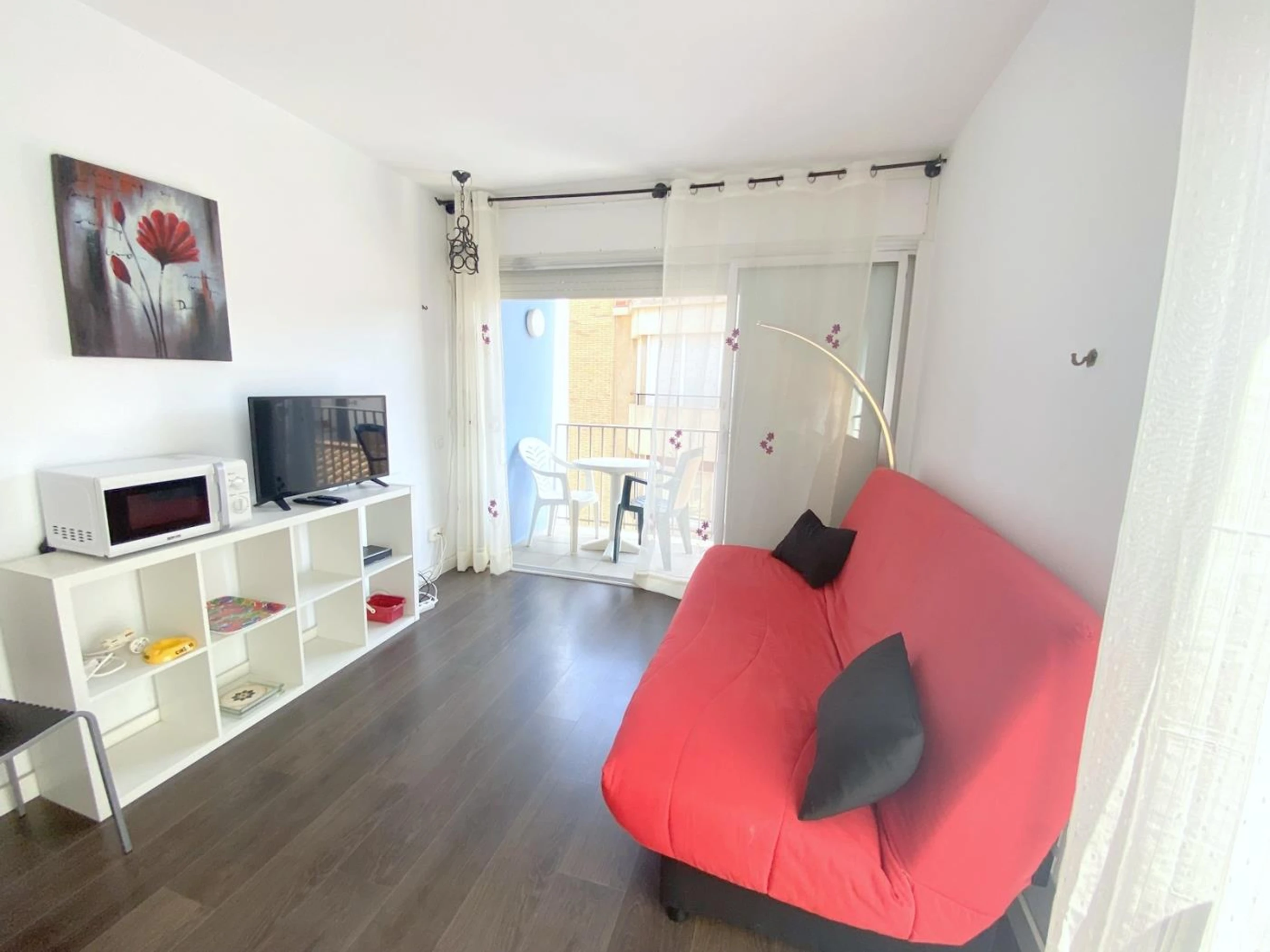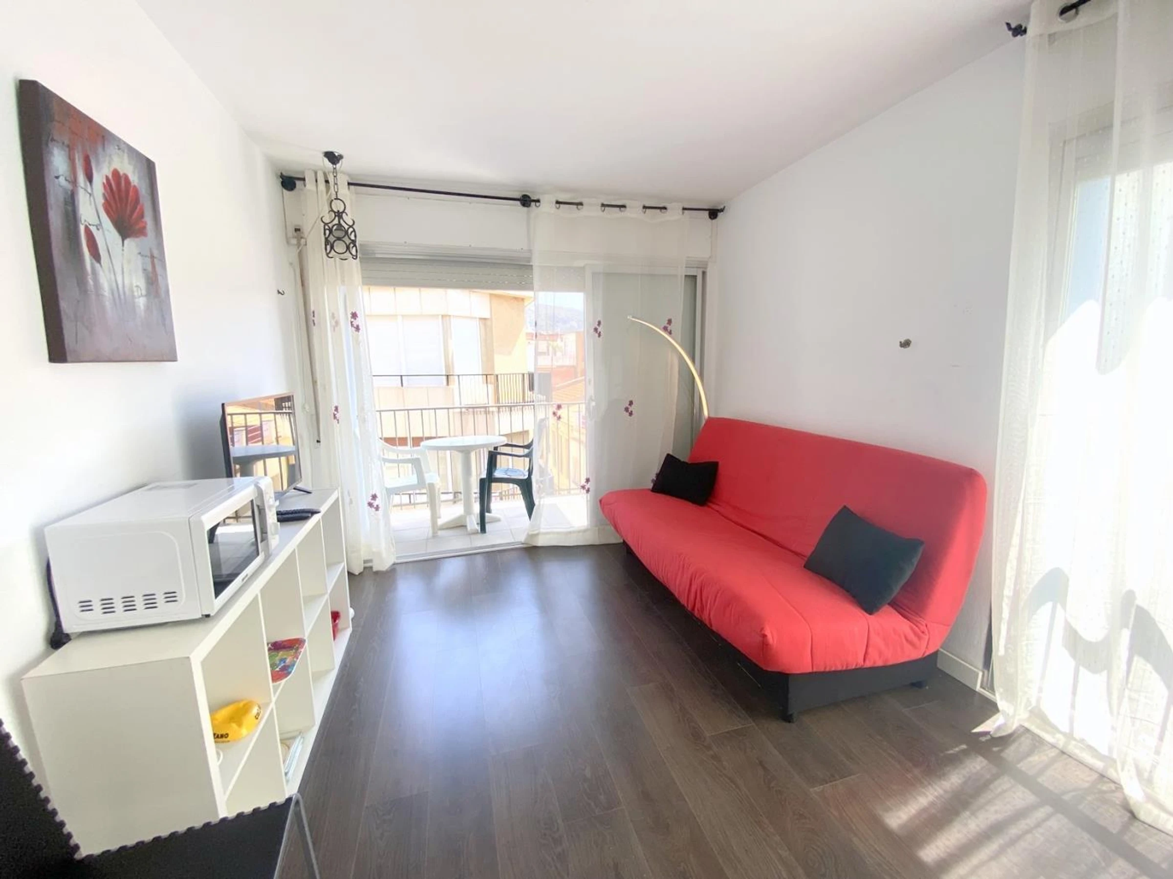 Estudio situado en el centro histórico de Roses, a solo 50 metros de la playa y en el centro de la calle comercial de Roses. La playa se encuentra a solo 50 metros del alojamiento. Dispone de ascensor y Wi-Fi gratuito. El estudio tiene capacidad para 3 personas y se compone de salón con 1 sofá-cama doble y 1 cama individual plegable, 1 baño con bañera, cocina americana y terraza con vistas a la calle peatonal. Televisor y canales franceses. Las sabanas y toallas no están incluidas y hay que reservarlas con antelación.