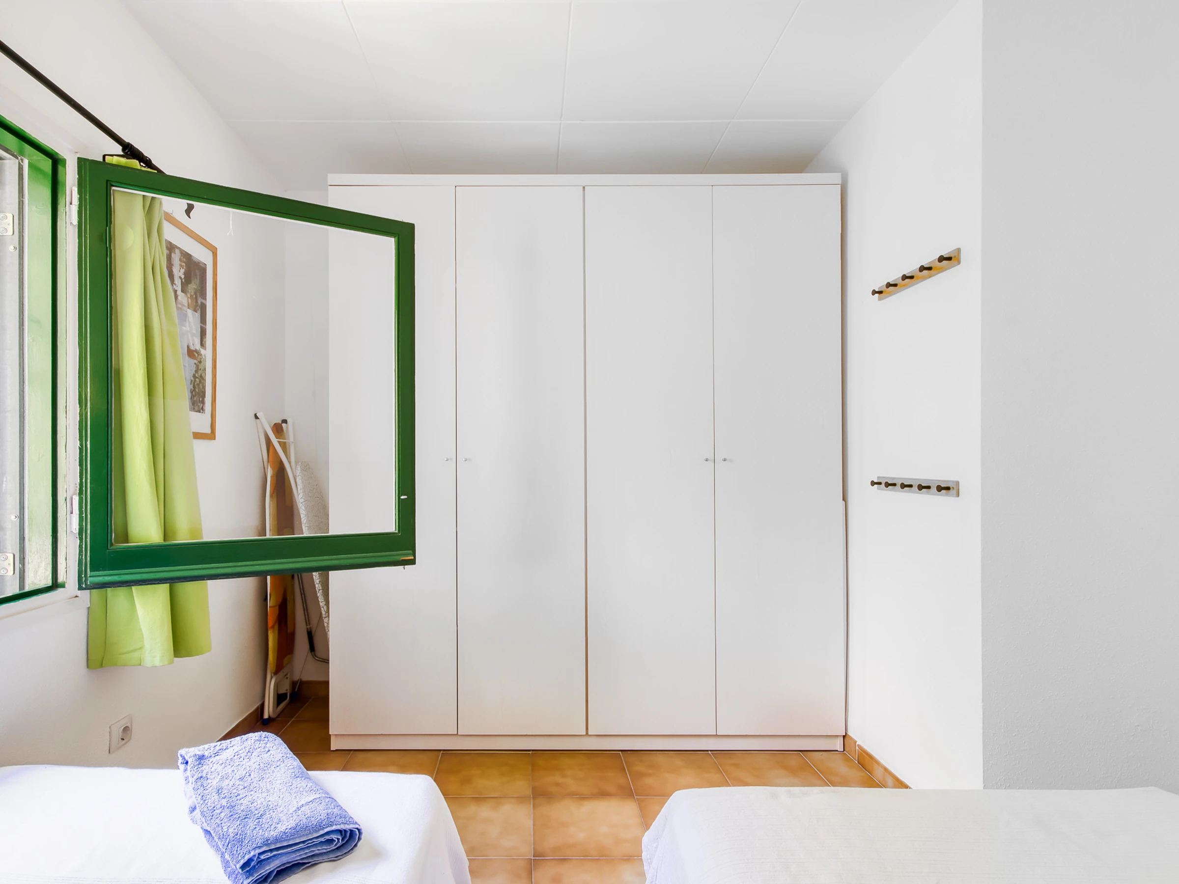 Consta de dos habitaciones, una con camas de matrimonio y un baño con ducha y lavadora.