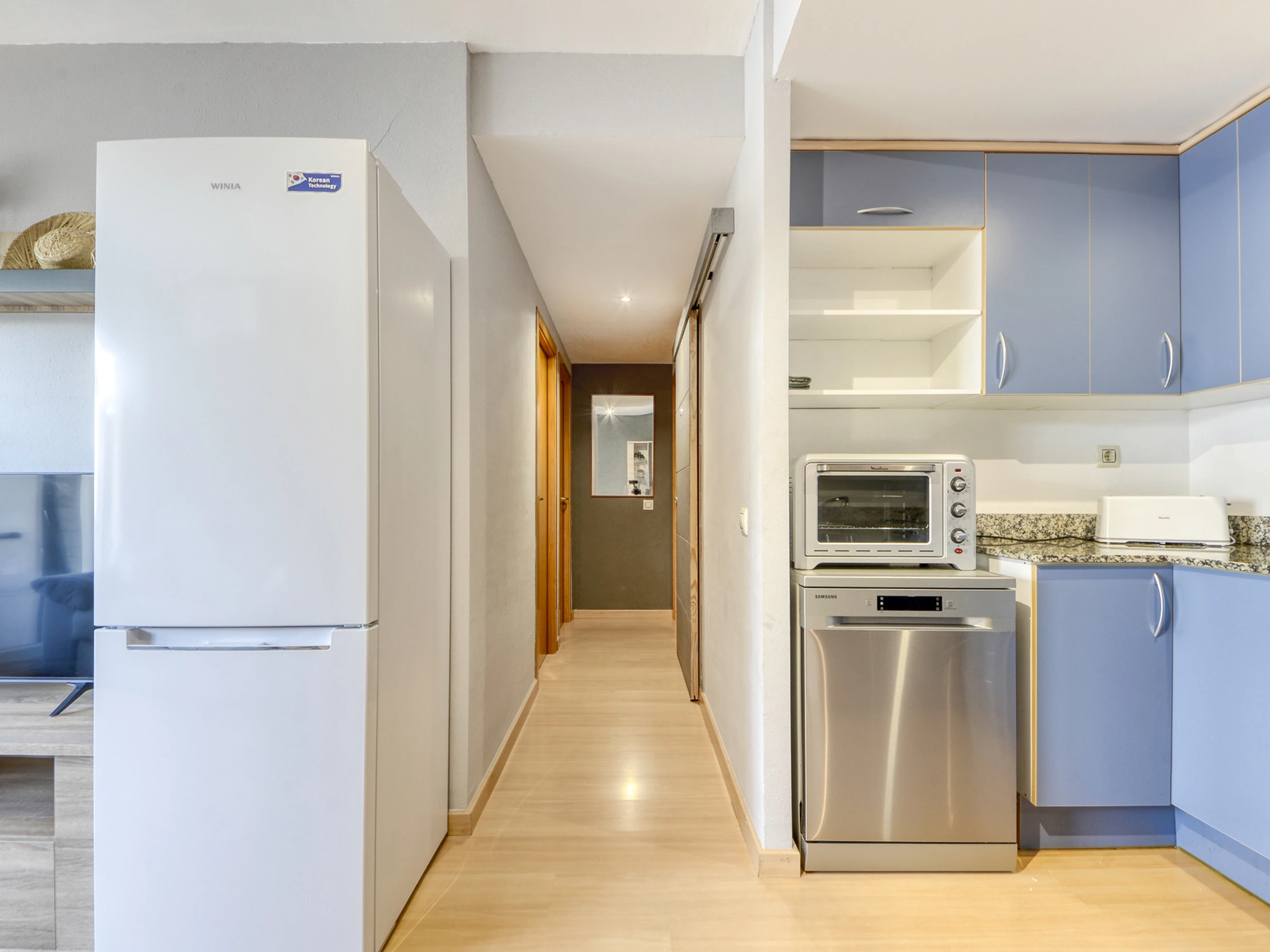 La cocina americana, está equipada con nevera, microondas, horno, congelador, vajilla/cubertería, utensilios/cocina,lavavajillas y cafetera.
