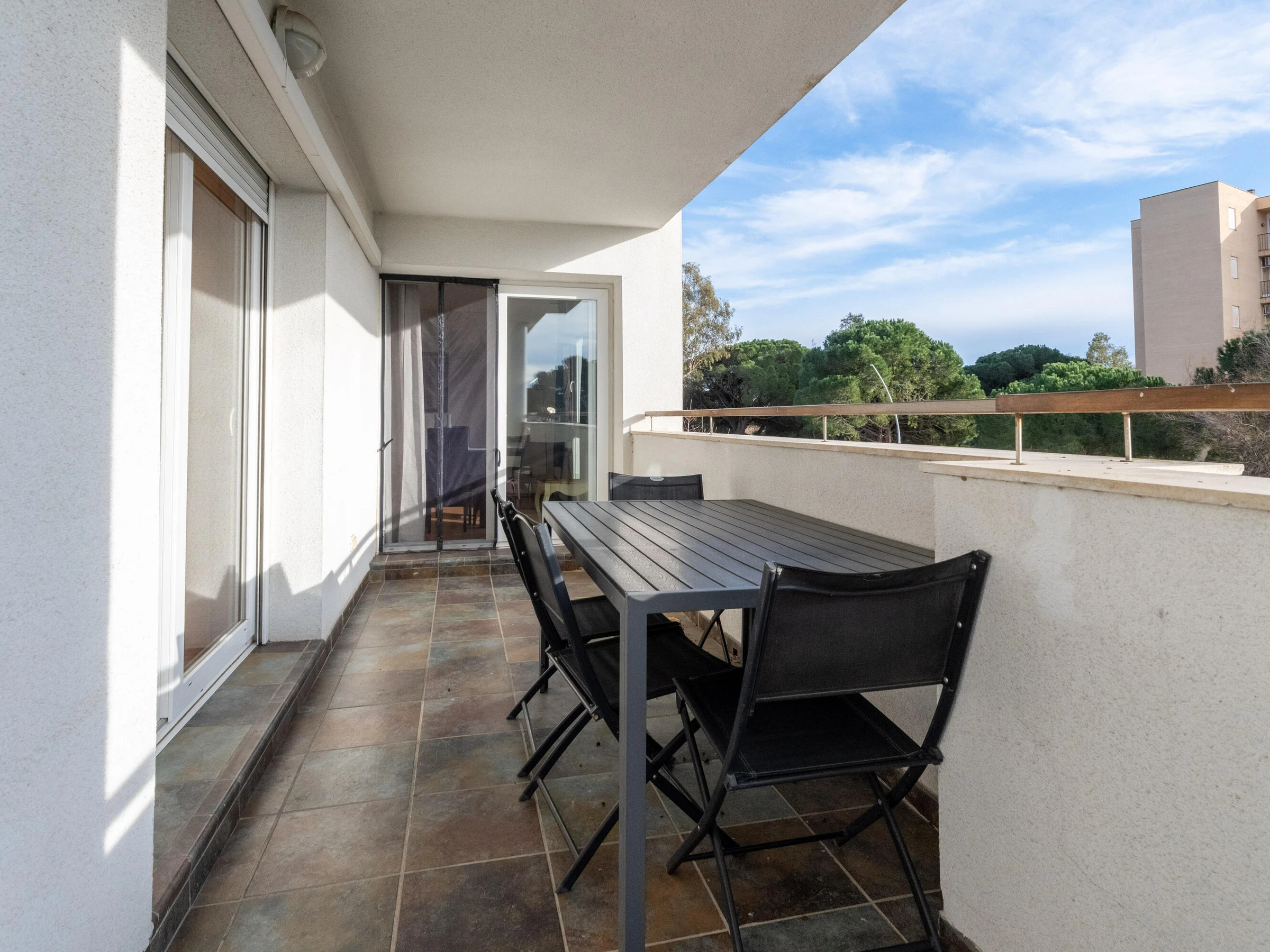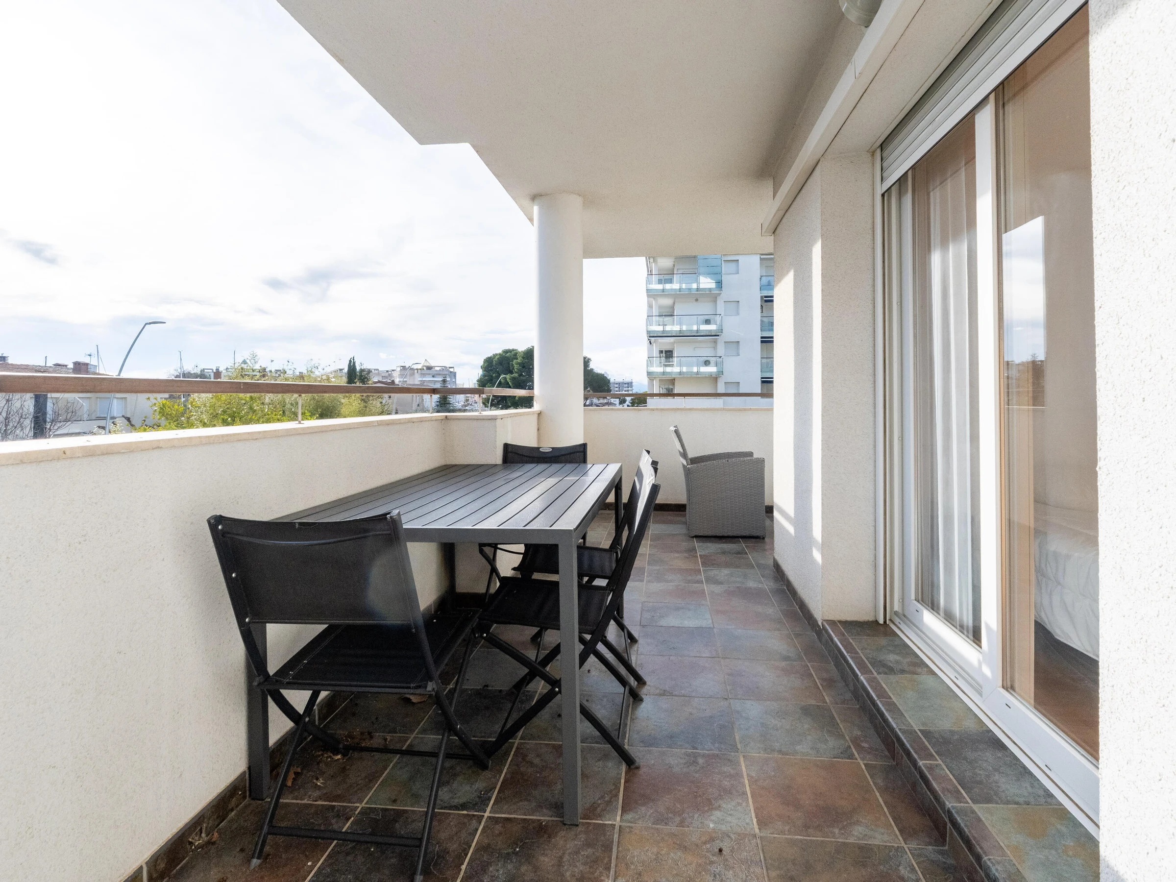 Apartamento muy luminoso con terraza y vistas a la piscina situado en Santa Margarita (Roses), a 1,2 km de la playa y 700 metros del centro de Santa Margarita, donde encontrará todos los bares, restaurantes y tiendas. La sala de estar - comedor con mesa de comedor y televisor. Cocina abierta con barra americana totalmente equipada con lavavajillas. El dormitorio principal con salida a la terraza tiene una cama de matrimonio y el otro dormitorio con litera. Baño completo con bañera. El apartamento dispone de plaza de aparcamiento. [hidden]