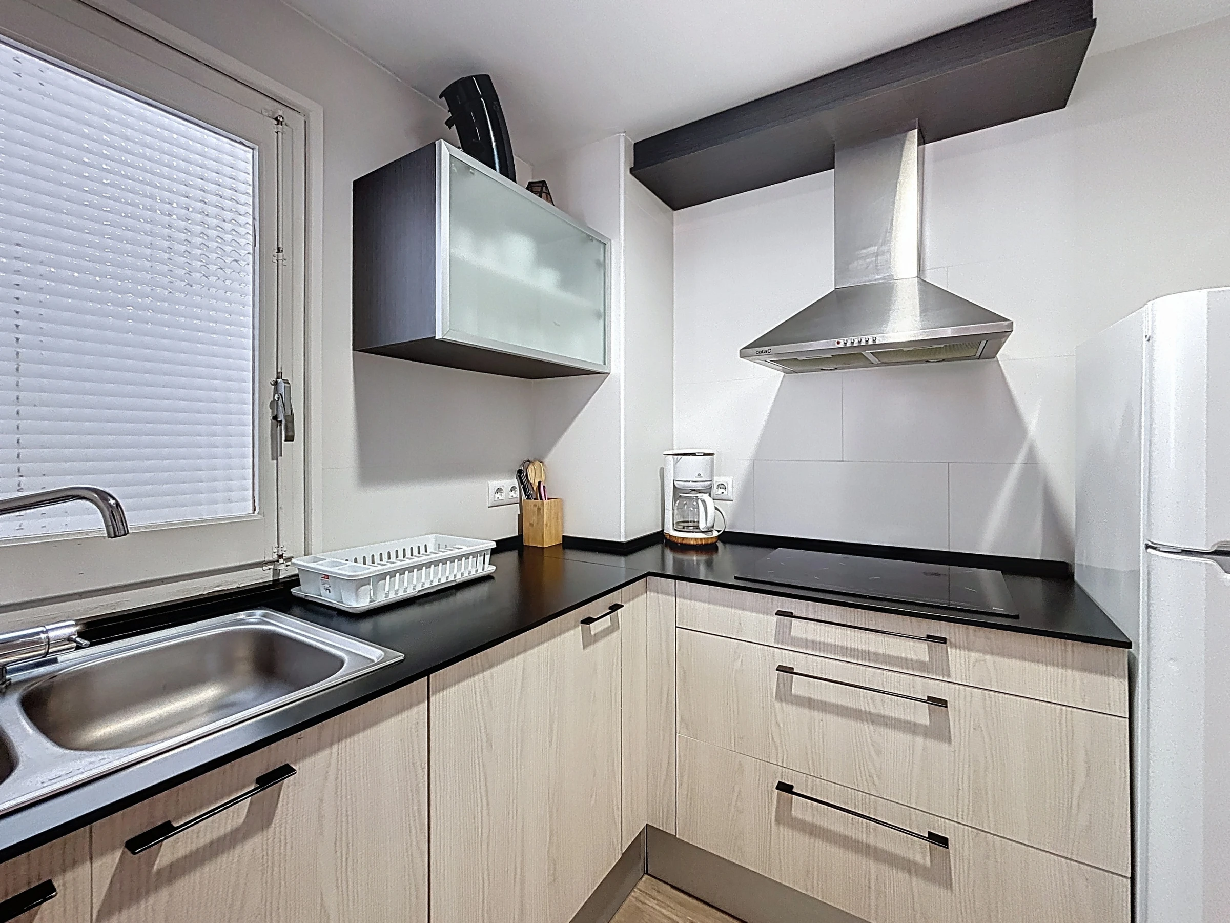 El apartamento está completamente equipado y dispone en particular de: conexión a internet, aire acondicionado únicamente en el pasillo cercano a las habitaciones. Con una cocina abierta equipada con placa vitrocerámica, frigorífico, microondas, horno, congelador, vajilla, cubiertos, utensilios de cocina, cafetera, sartén y tostadora.