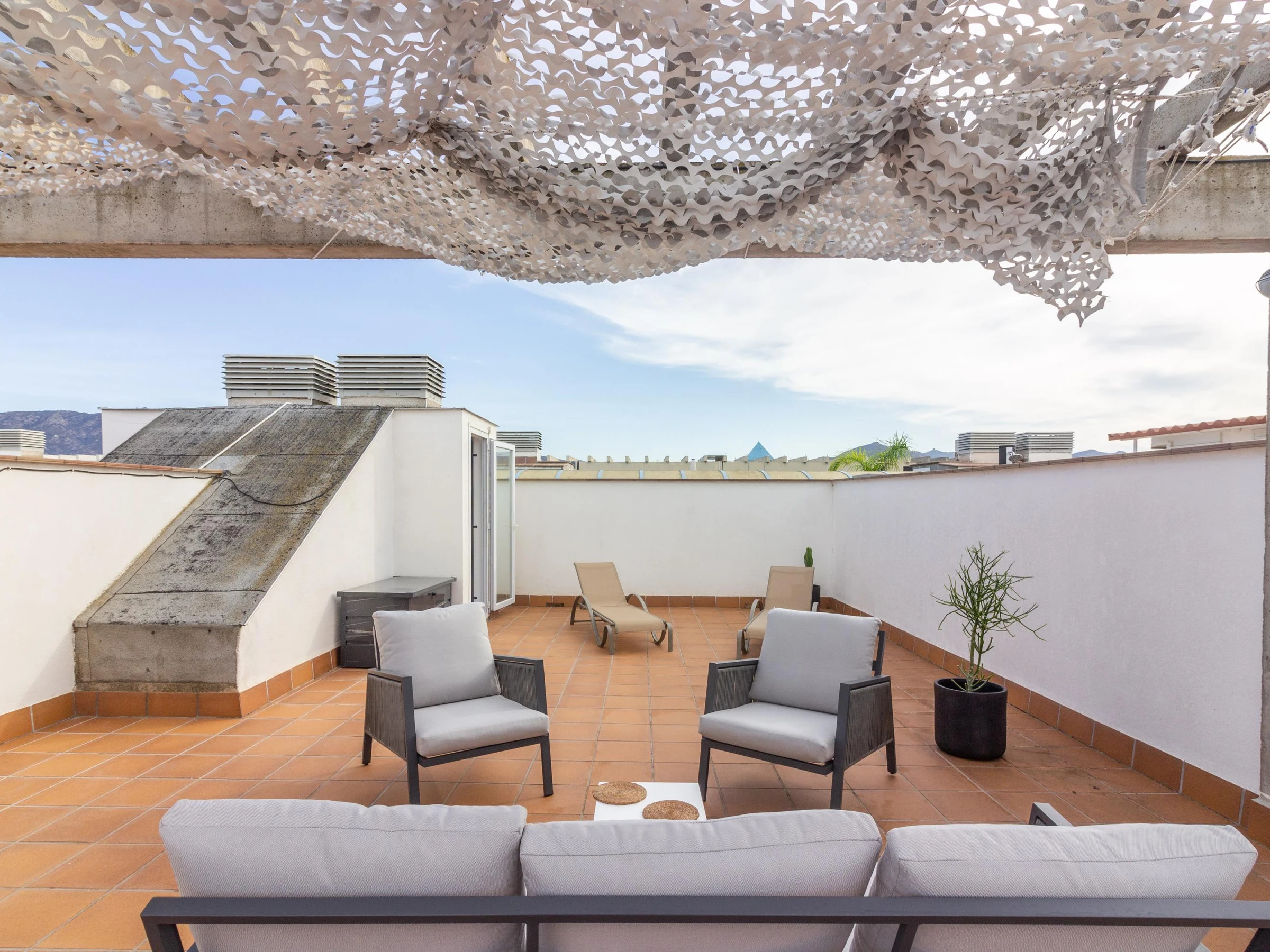 Magnífico dúplex ubicado en la residencia de Port Canigó en Santa Margarita, Roses. Se trata de un apartamento de aproximadamente 100m2 distribuido en dos plantas. En la planta baja consta el comedor con la cocina abierta equipada con nevera-congelador, cocina eléctrica, horno de sobremesa y la lavadora, sala de baño completo con bañera y dos habitaciones dobles; una habitación con cama de matrimonio y la segunda habitación con una cama nido, por lo tanto, dos camas individuales. En la planta baja también encontrará una primera terraza donde poder disfrutar de un aperitivo. Subiendo las escaleras, encontrará una magnífica segunda terraza muy espaciosa con unas vistas panorámicas espectaculares equipada con muebles de exterior. La residencia de Port Canigó dispone de piscina comunitaria con piscina infantil y jacuzzi, así como un restaurante en el recinto. Conserje durante todo el día. Ideal por su ubicación en una zona tranquila, bastante cercana al centro y a los principales comercios. HUTG: 073369