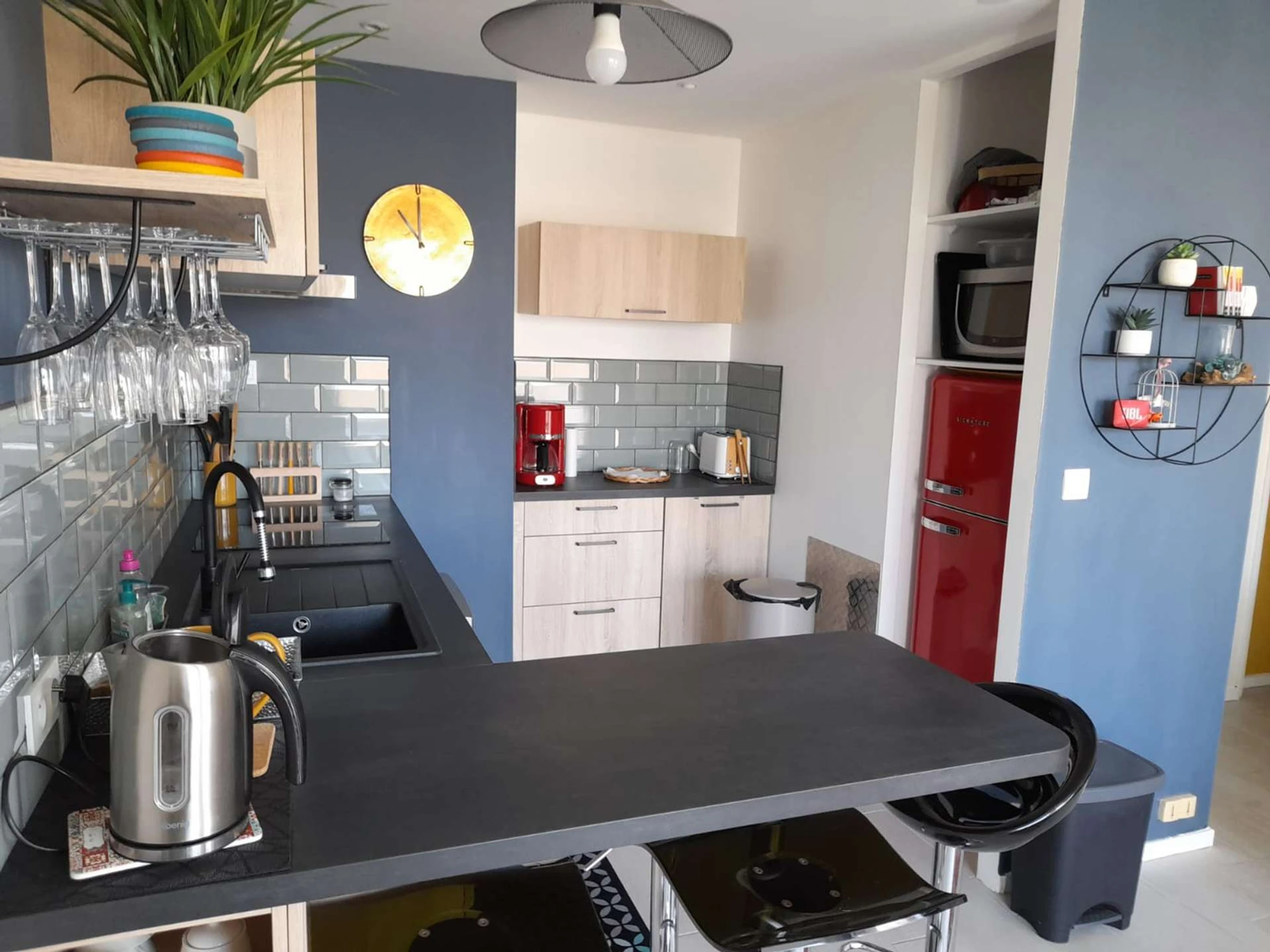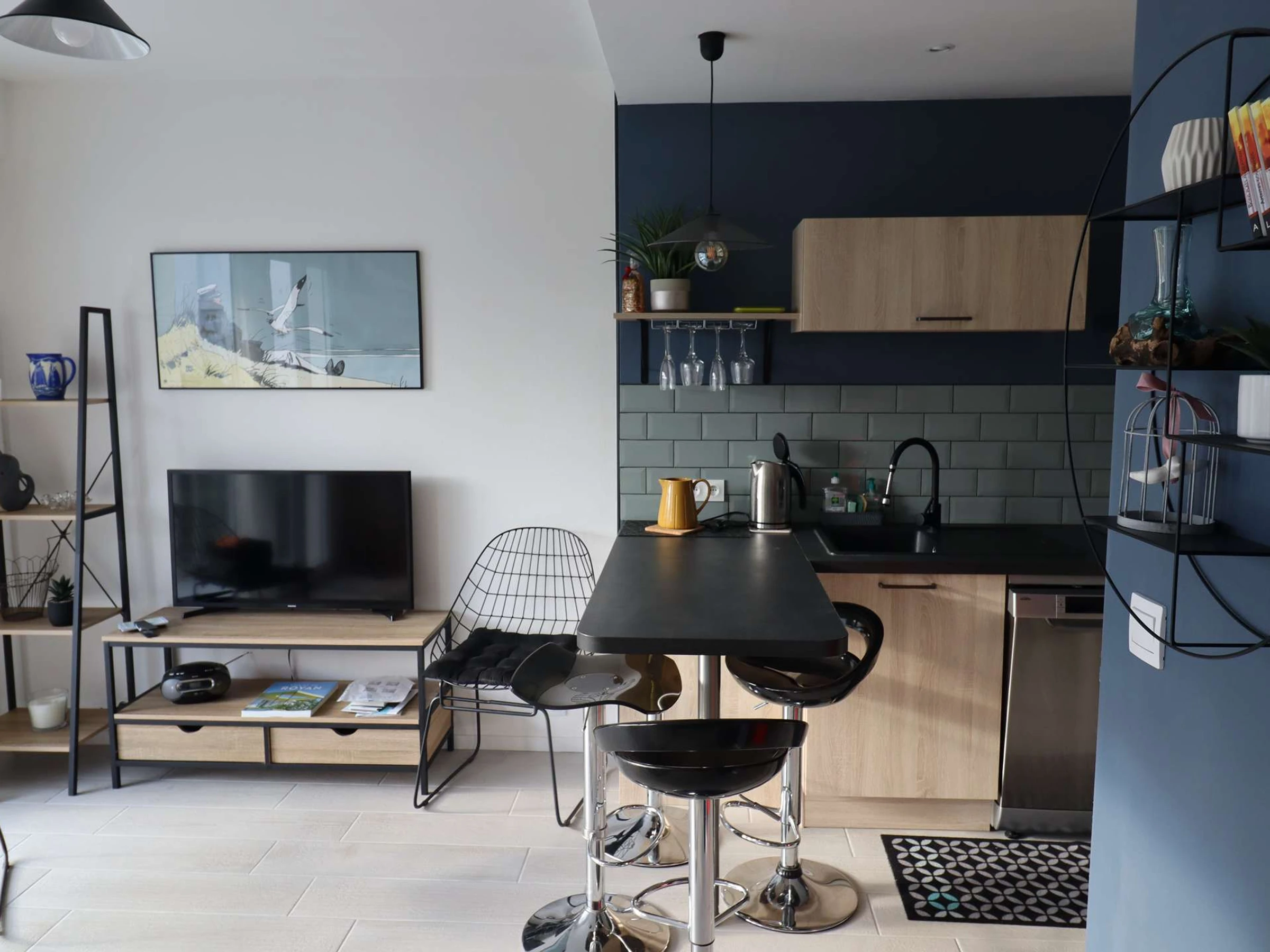 Tiene una entrada con trastero que conduce a un luminoso salón con sofá cama que da a un balcón, una cocina abierta totalmente equipada, un baño con ducha, un WC separado y un hermoso dormitorio (cama de 140x190) con armario y pie de cama. Una silla adicional para permitir que un niño duerma.