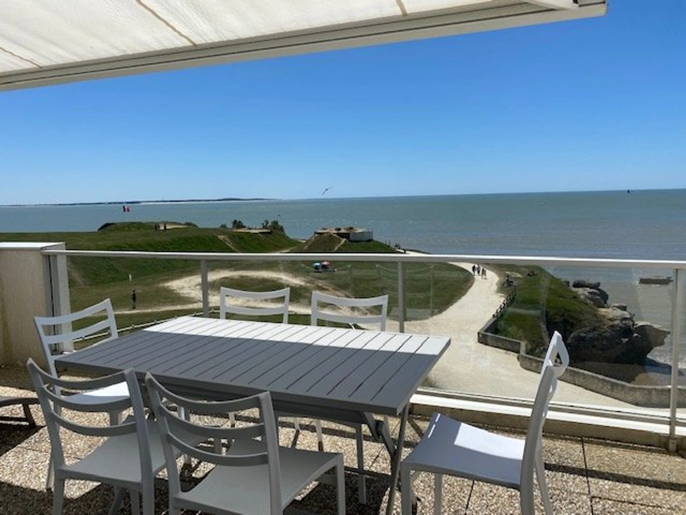 Magnífico apartamento dúplex de 70 m² para 6 personas. Cuenta con un salón con acceso a una terraza orientada al sur con vistas al océano Atlántico, la playa de Chay y el faro de Cordouan. Dispone de un sofá cama doble, un aparador y un televisor a color. Un comedor con mesa redonda y sillas de estilo Starck. Una cocina americana con placa de 4 fuegos, campana extractora, horno, microondas, frigorífico con congelador, fregadero con escurridor, lavavajillas y un baño con ducha y lavabo, además de un aseo contiguo.