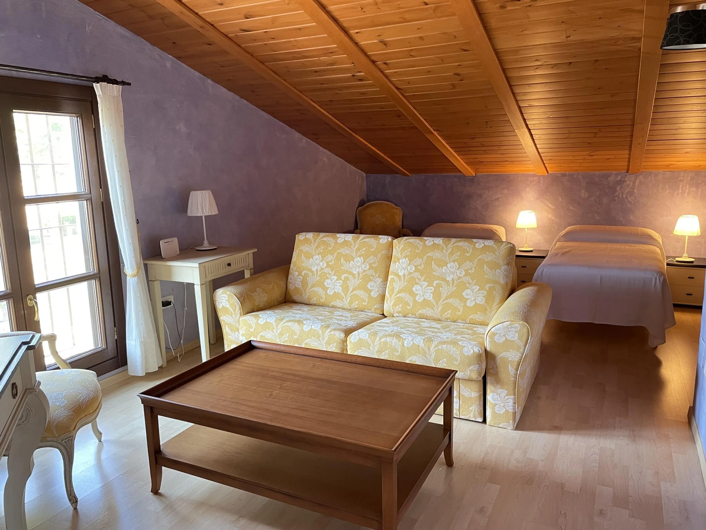 La escalera da paso a la zona superior de la vivienda en la que, a mano derecha, encontraremos el segundo cuarto de baño también equipado con ducha. Tras él, una habitación de 25m2totalmente diáfana equipada con 3 camas individuales, sofá y zona de estar.