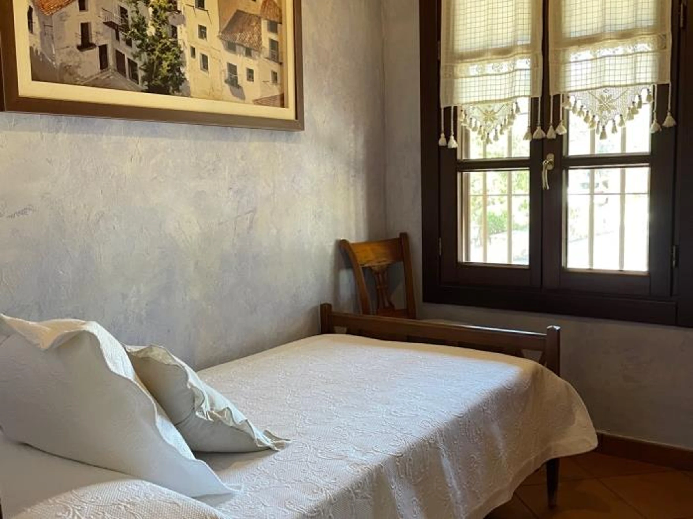 Con una capacidad de hasta 8 personas, la propiedad se distribuye en dos plantas, terraza, jardín, zona de barbacoa y piscina. En la planta baja de la vivienda encontraremos el salón amueblado con sofá, sillones y chimenea. El pasillo conduce a los 3 dormitorios de la planta baja y al cuarto de baño. El primer dormitorio cuenta con una cama de 90 cm, los otros dos dormitorios de matrimonio, cuenta con cama doble cada uno.