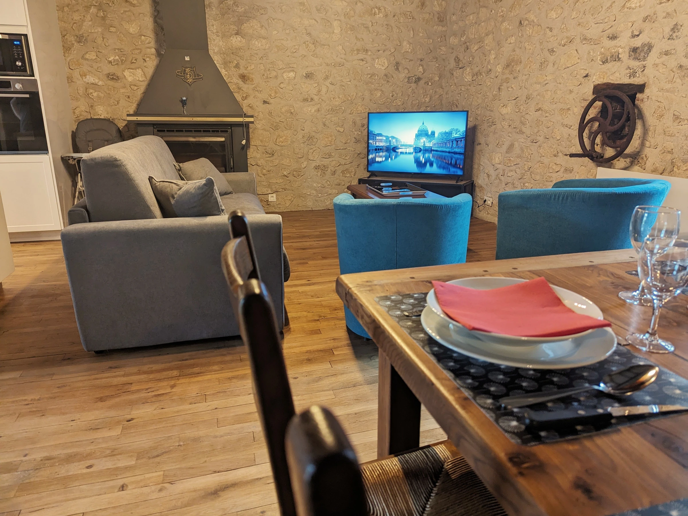 Este alojamiento está ubicado en un antiguo molino de agua que conserva su auténtico encanto. Los elementos históricos han sido cuidadosamente restaurados, creando un ambiente cálido y acogedor. Aunque se ha conservado la autenticidad en la renovación, el confort y las comodidades modernas hacen que su estancia sea agradable. En la planta baja: espacio acogedor que puede utilizarse como cocina de verano con una enorme mesa de madera pero también como lavadero con lavadora, secadora y fregadero. Acceso directo a la terraza privada y a la isla. WC independiente con lavabo. Espacio sin calefacción.