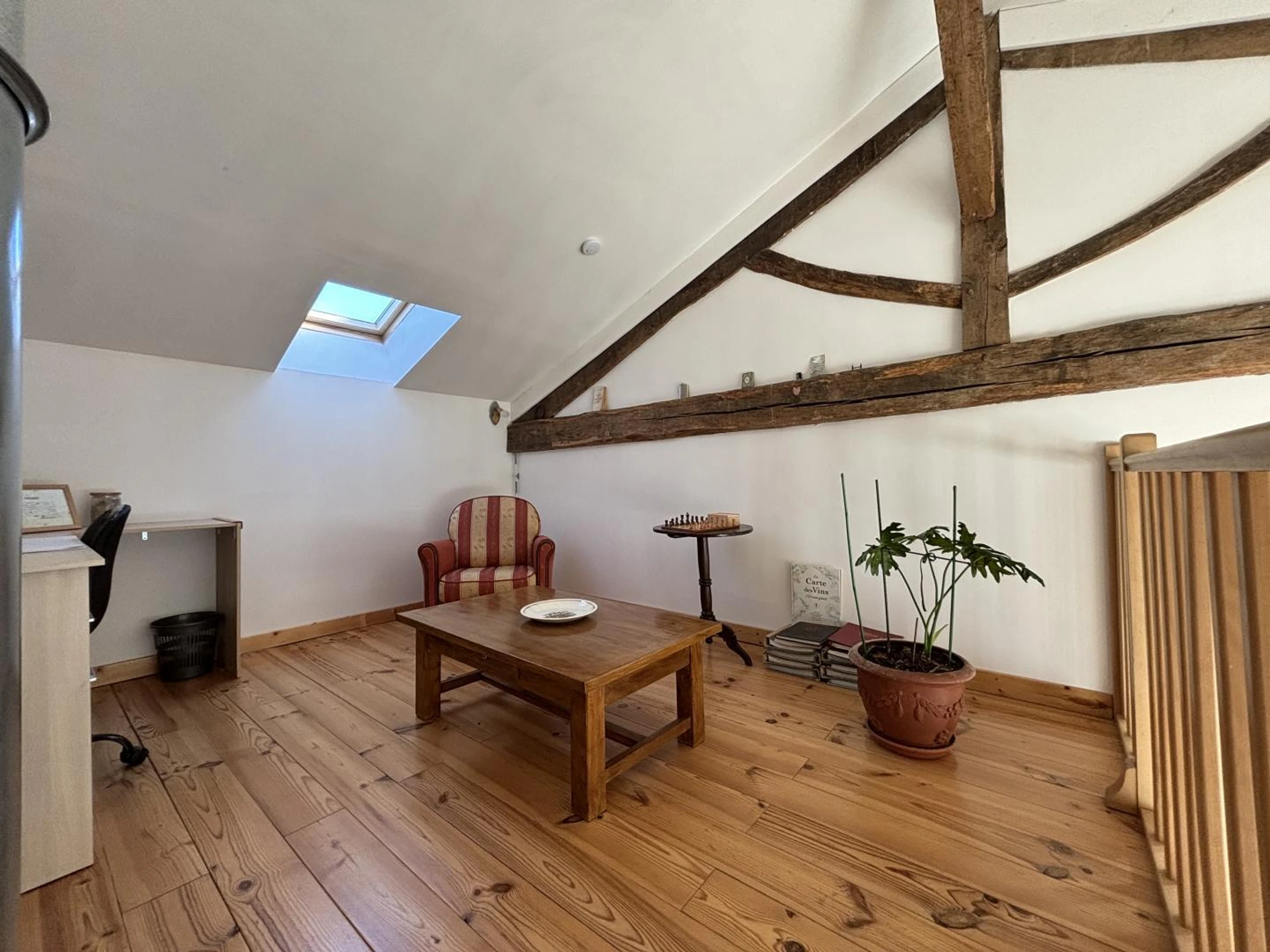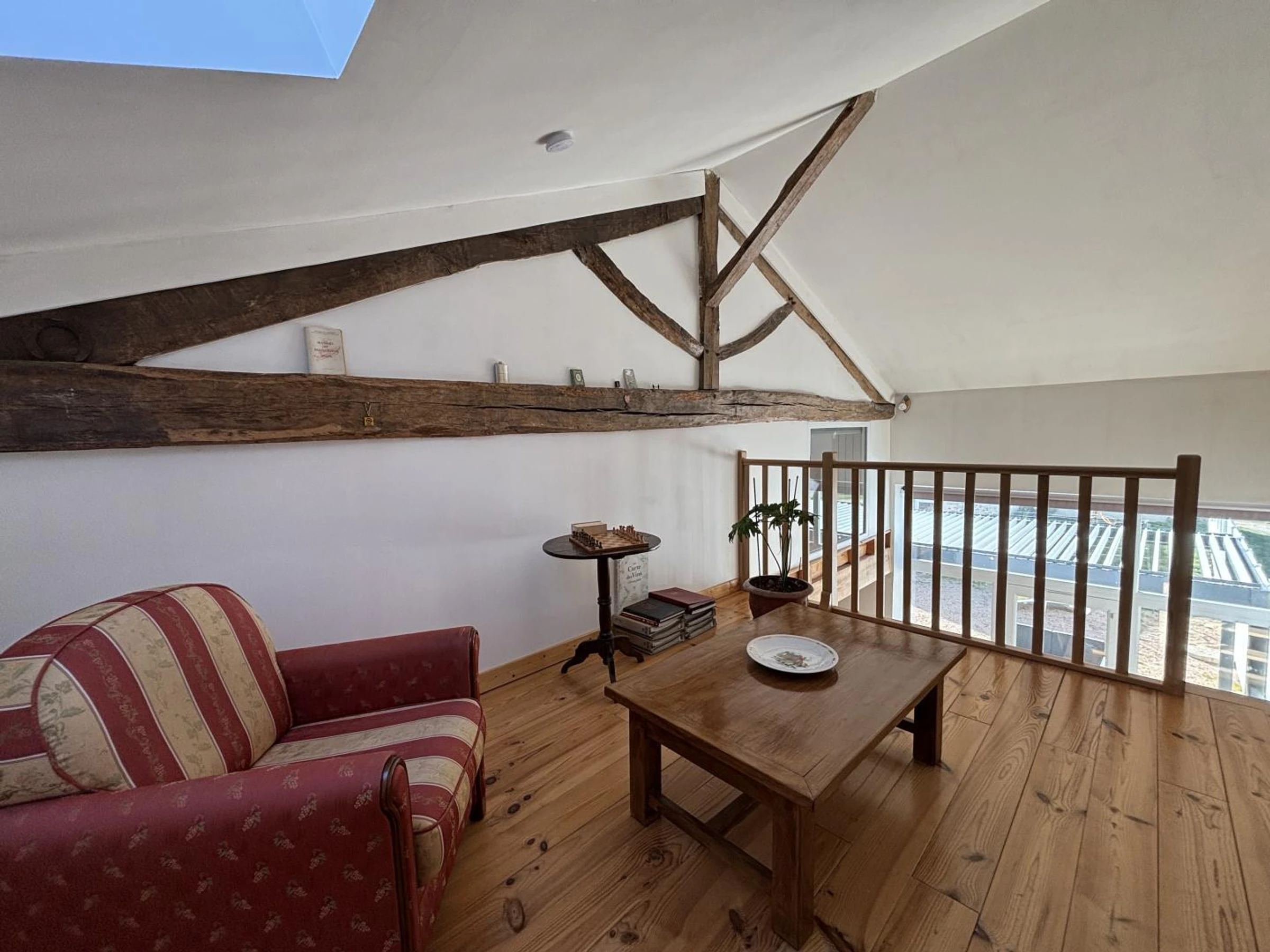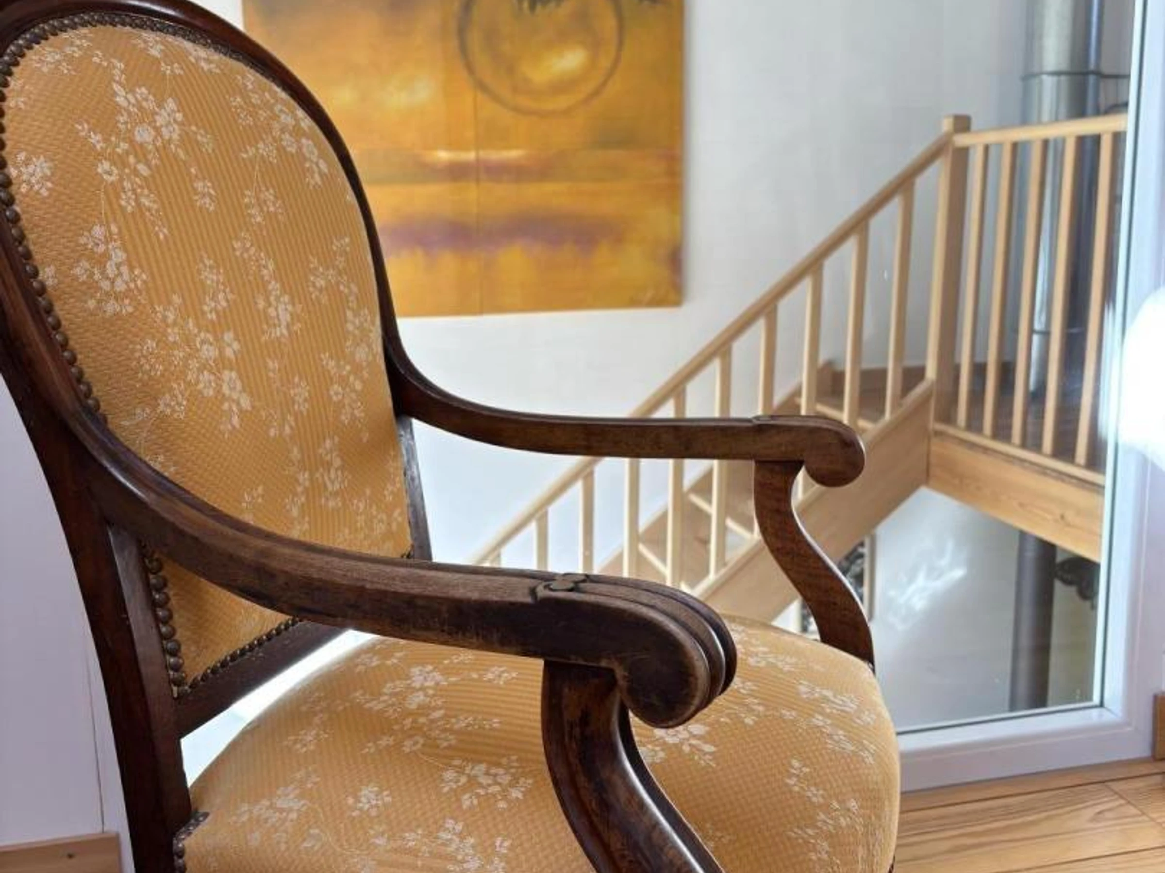 Primera planta: 2 dormitorios para 2 personas, uno de ellos con cuna, y 1 dormitorio para 1 persona. Desde el salón, una escalera conduce a un altillo, una auténtica zona de relax o espacio de oficina.