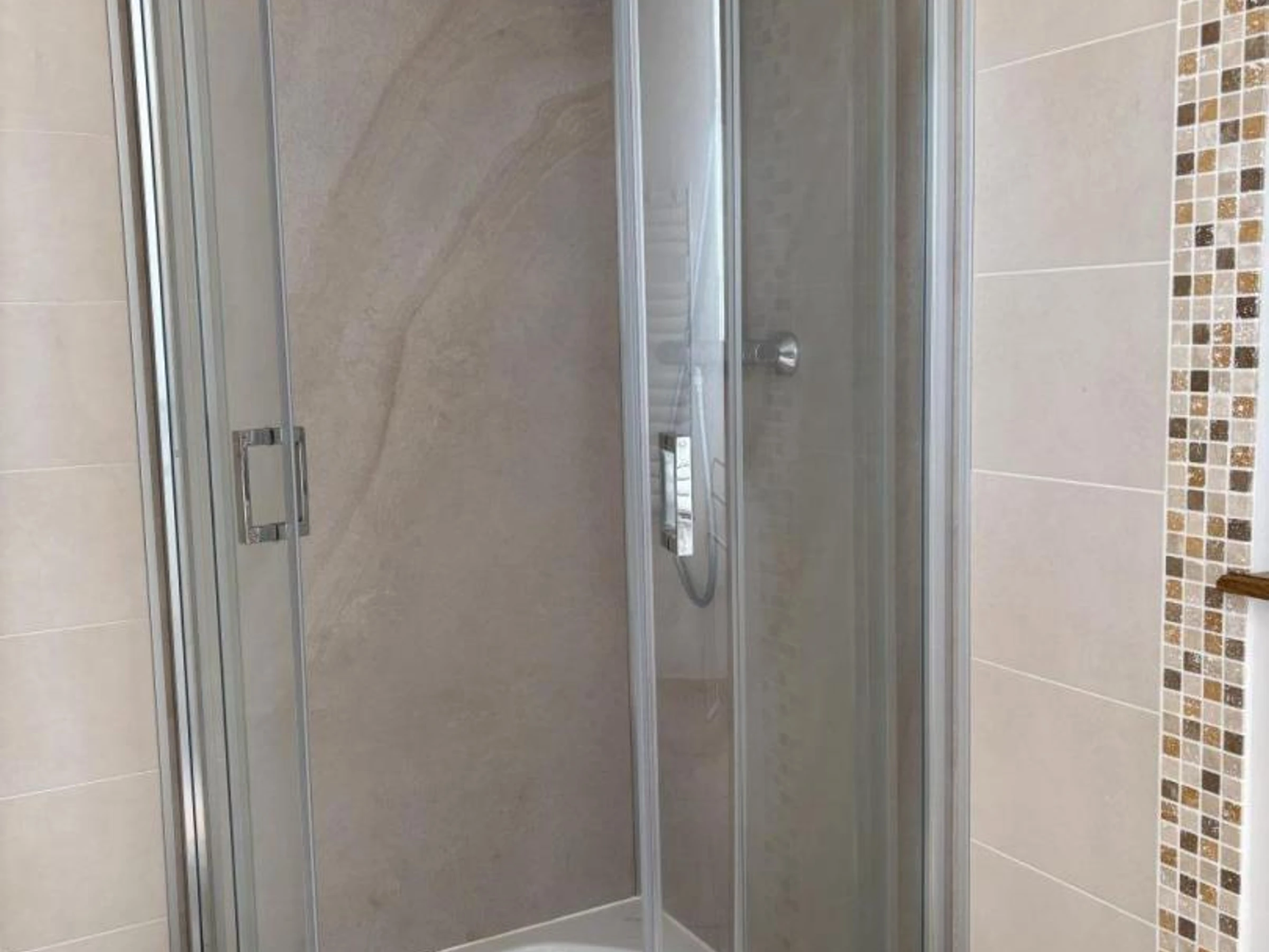 Planta baja: amplio recibidor, cocina con isla central que da al salón. Acceso a la terraza cubierta, ideal para disfrutar de comidas en familia o con amigos. Baño (ducha) y aseo independiente.