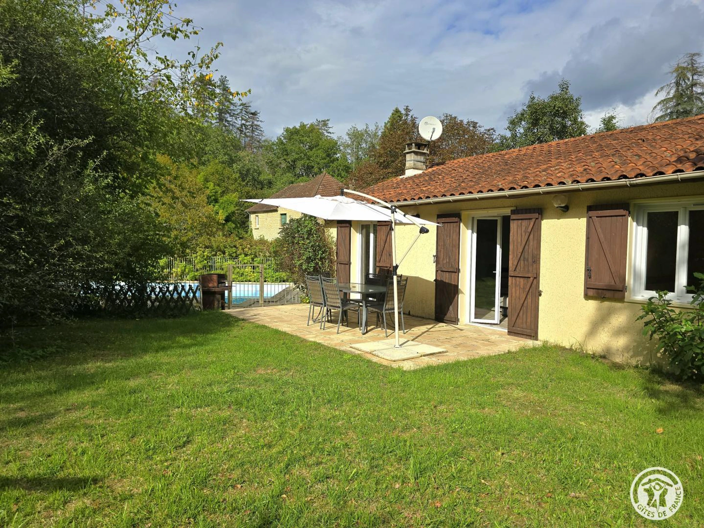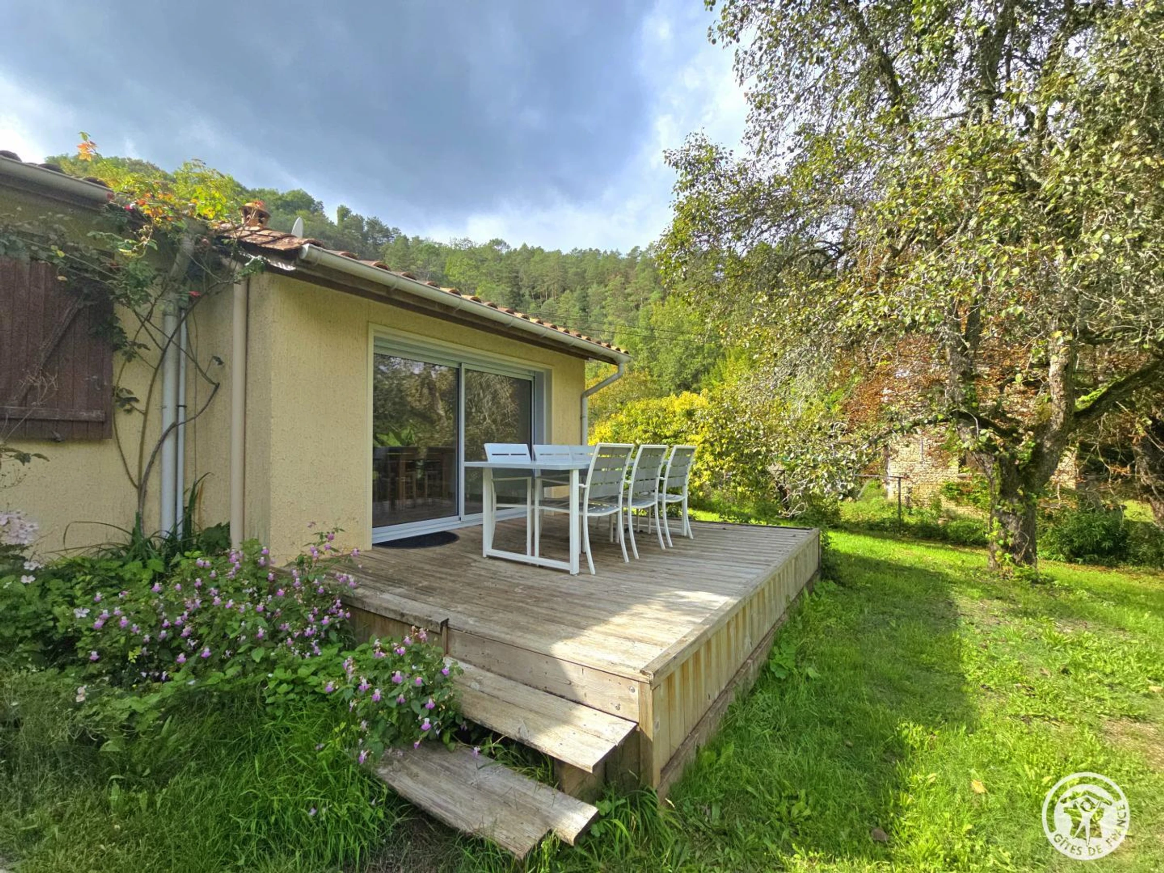 Ubicada al final de una calle sin salida, donde aún existe un derecho de paso para la casa de la madre del propietario, la casa cuenta con un jardín sin vallar de aproximadamente 2000 m² compartido con el propietario, en una propiedad atravesada por arroyos. Sus principales ventajas son: una piscina privada, ideal para refrescarse después de un día de turismo, y un entorno verde y exuberante.
