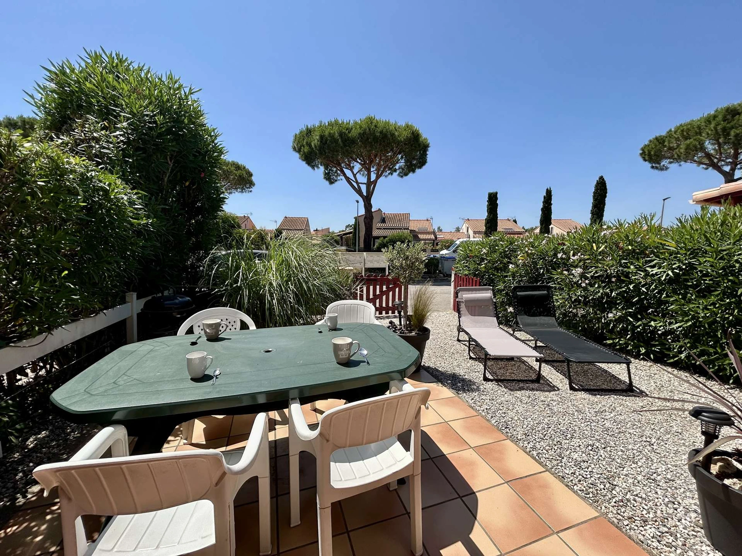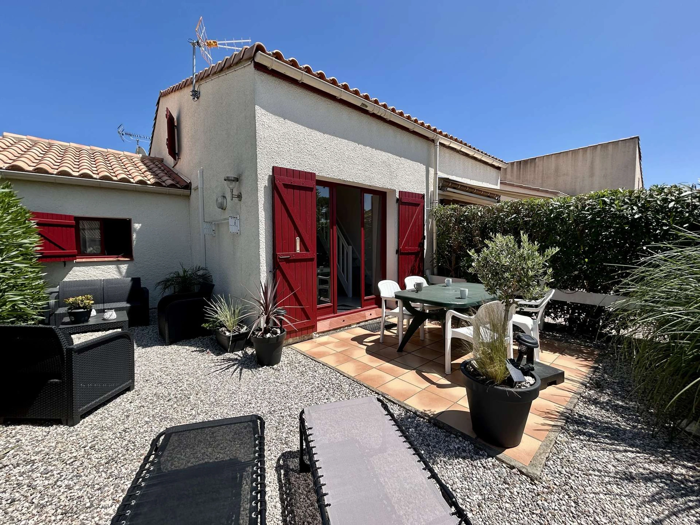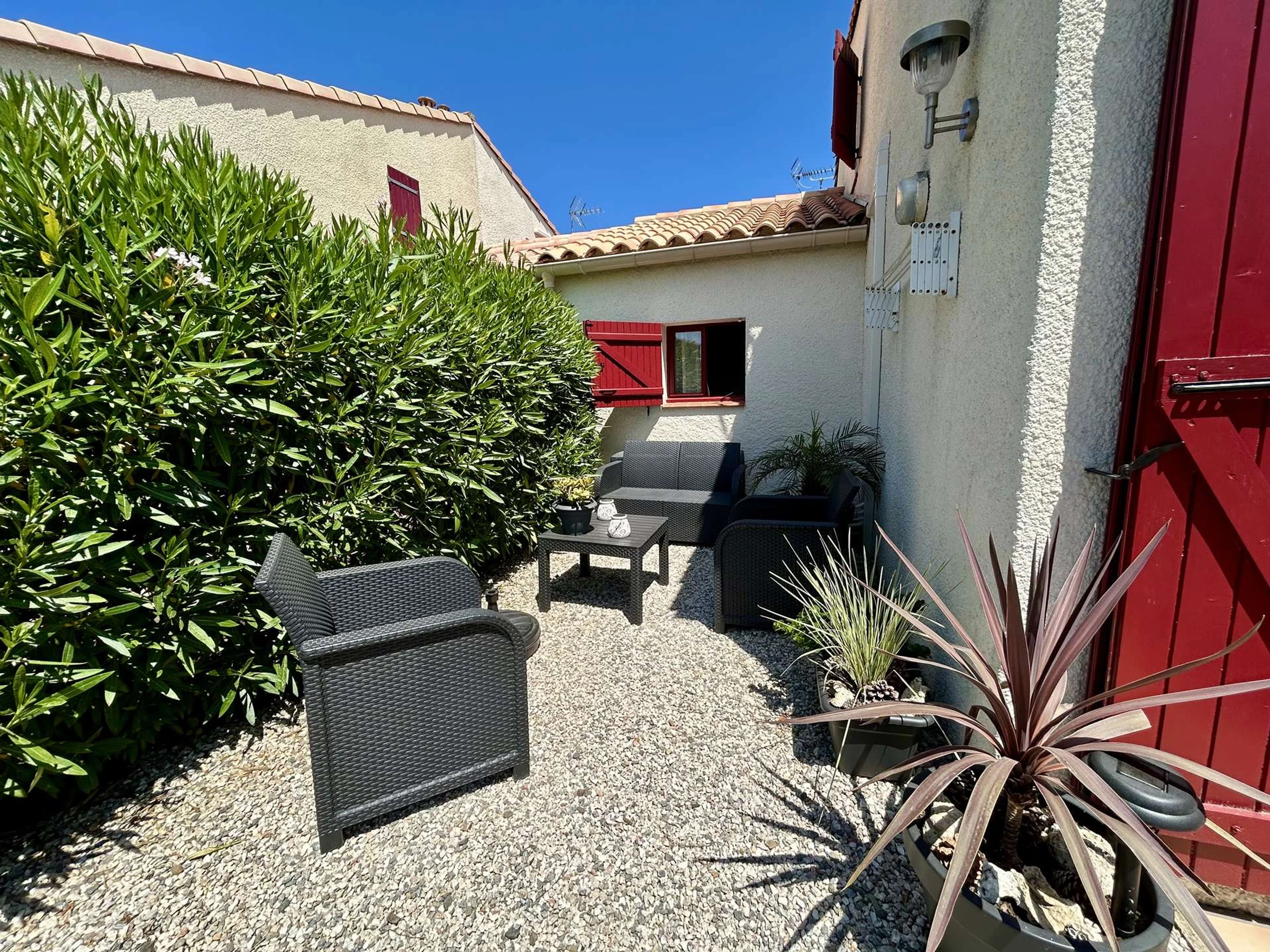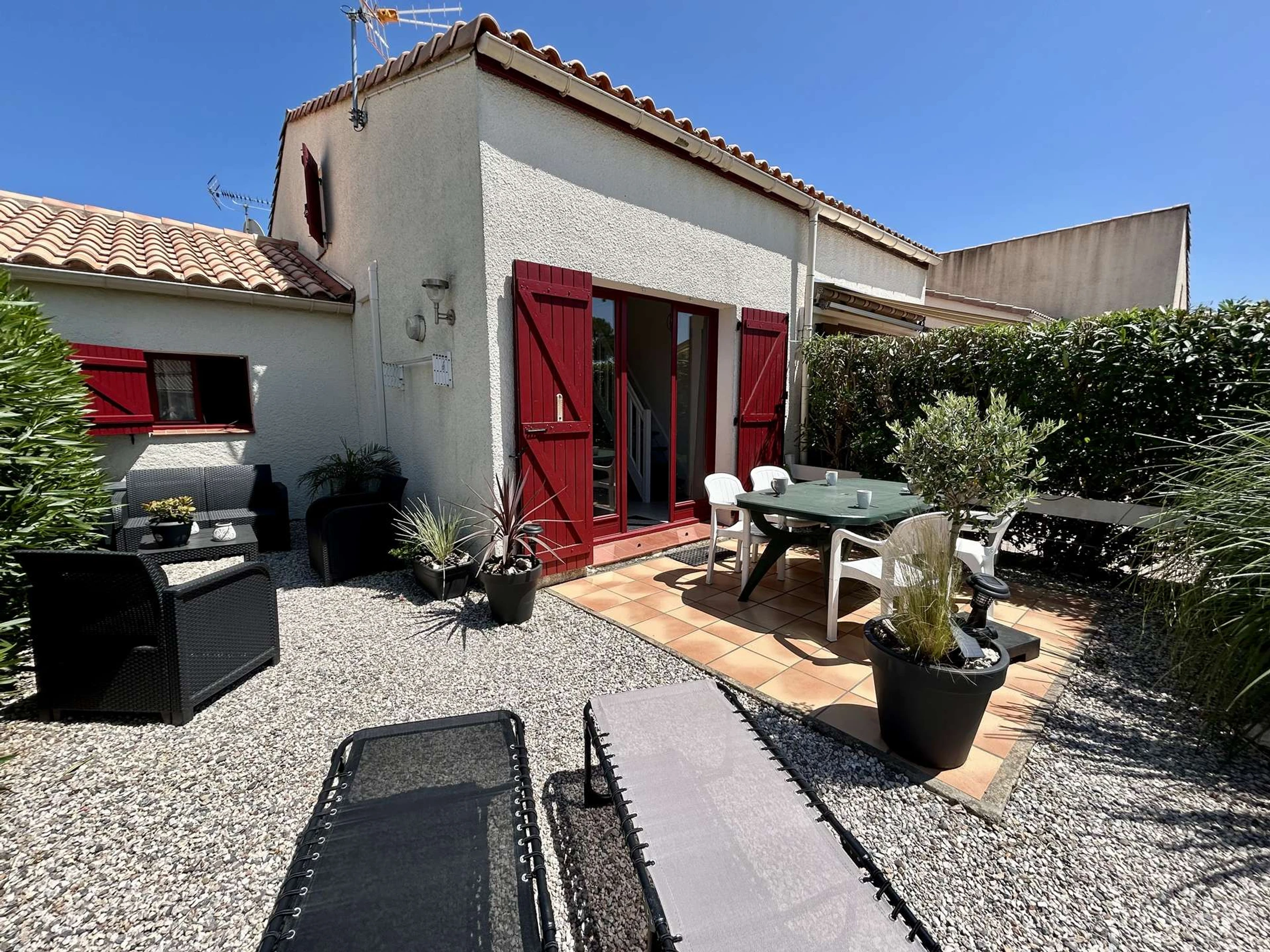 Lo más destacado de este alquiler frente al mar: aire acondicionado, piscina compartida del 15 de junio al 15 de septiembre, aparcamiento frente a la puerta, un pequeño jardín con mobiliario de jardín y barbacoa exterior, y un televisor.