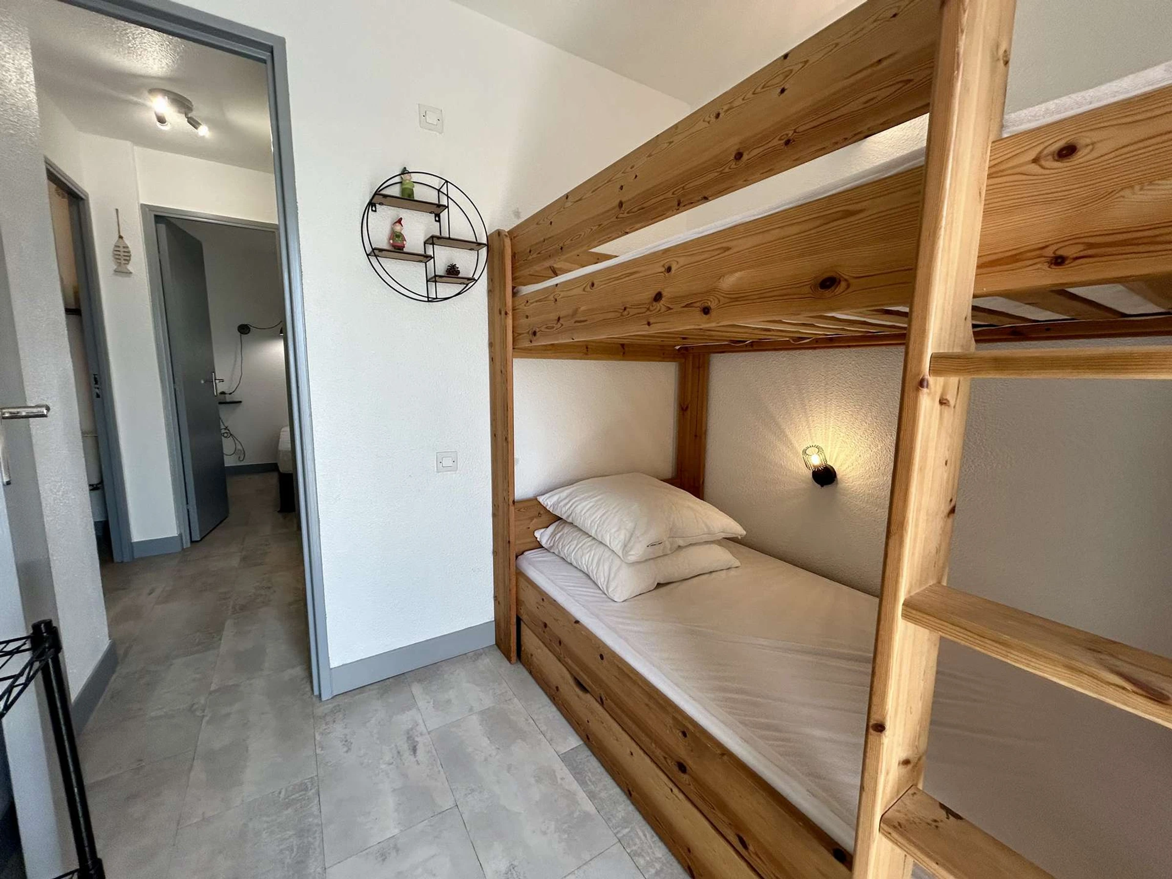 Este espacioso apartamento vacacional con aire acondicionado, ubicado en la planta baja, incluye un salón con cocina americana bien equipada, una sala de estar con televisión y dos dormitorios independientes. El primero incluye un dormitorio con cama doble y un baño con ducha e inodoro. El segundo, al otro lado del apartamento, incluye un dormitorio con cama doble, otro dormitorio con literas y un baño con ducha e inodoro. Finalmente, hay una terraza con muebles de jardín y vistas a los puertos deportivos.