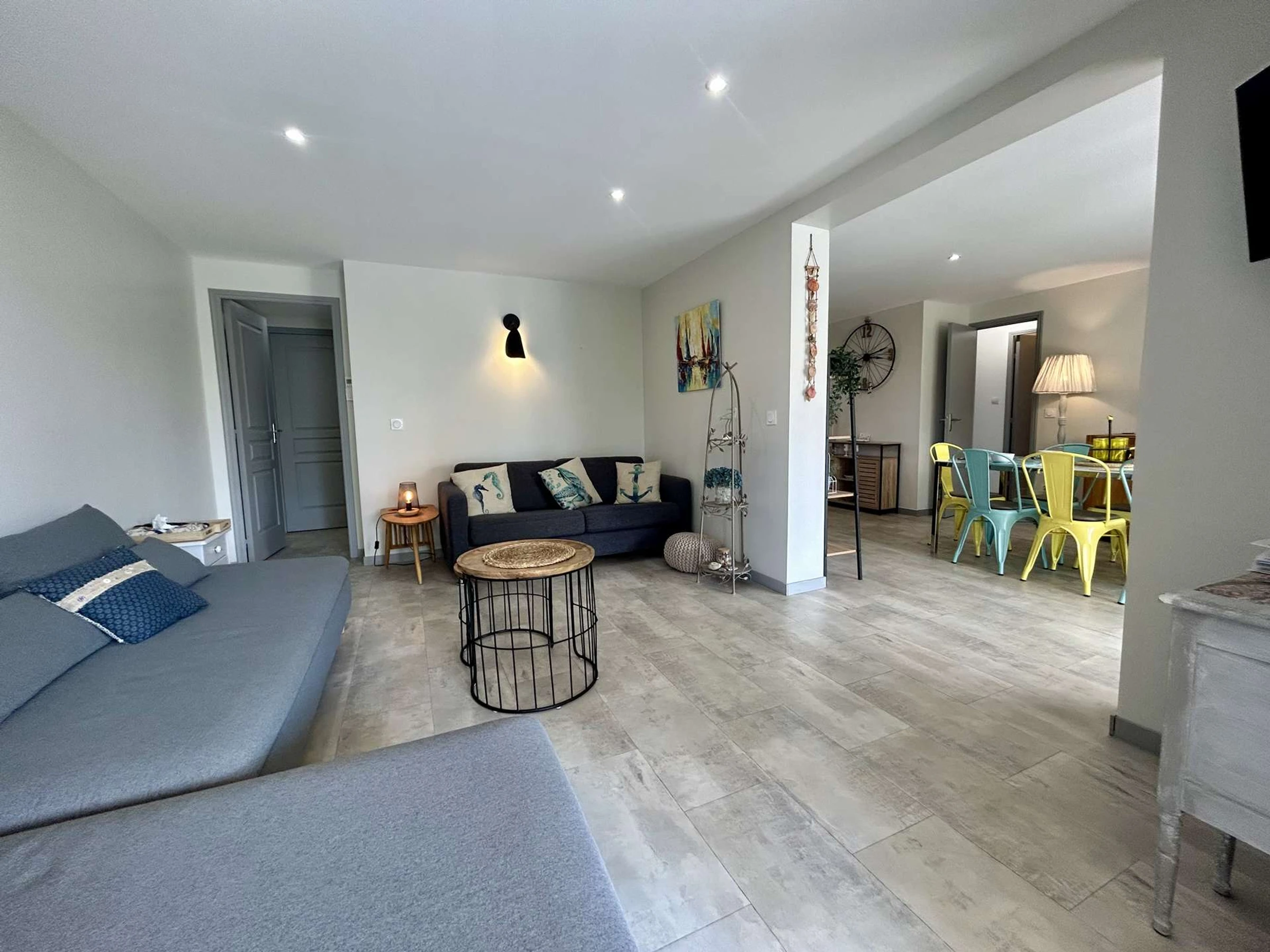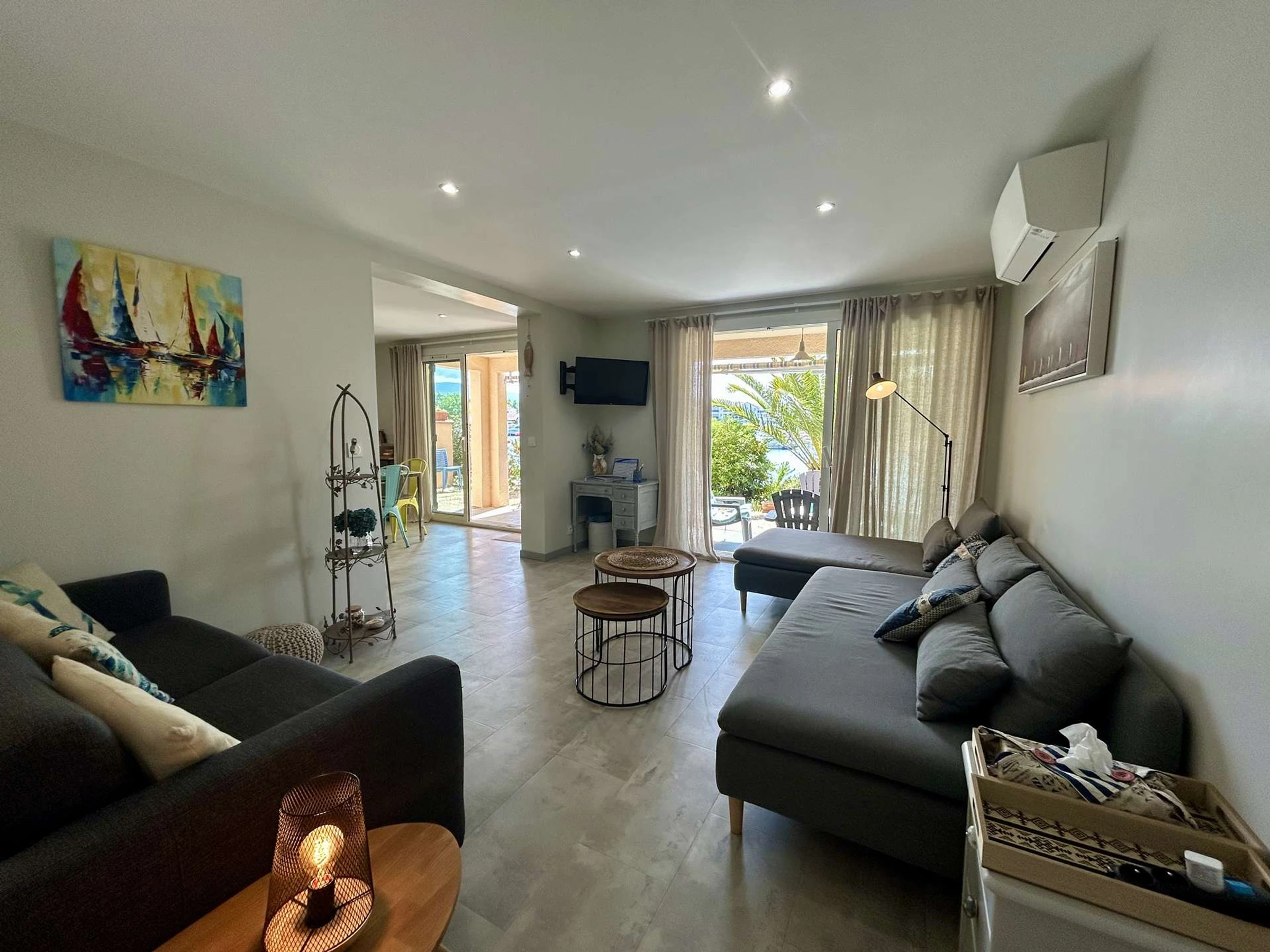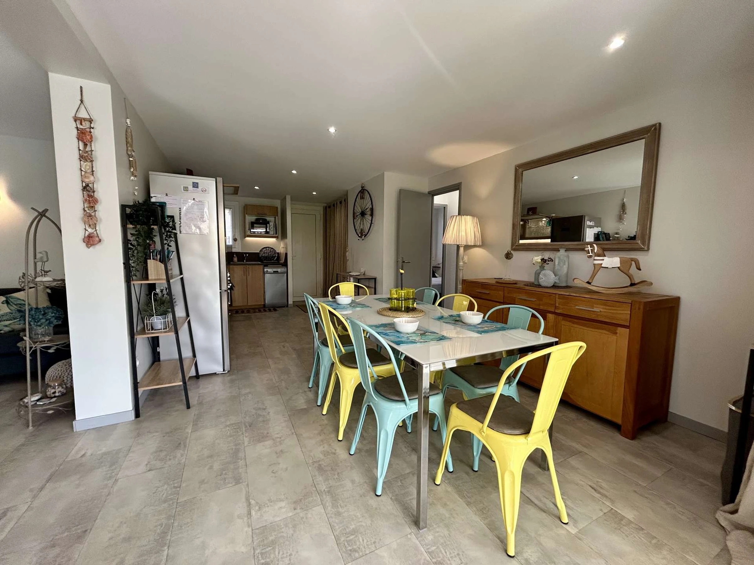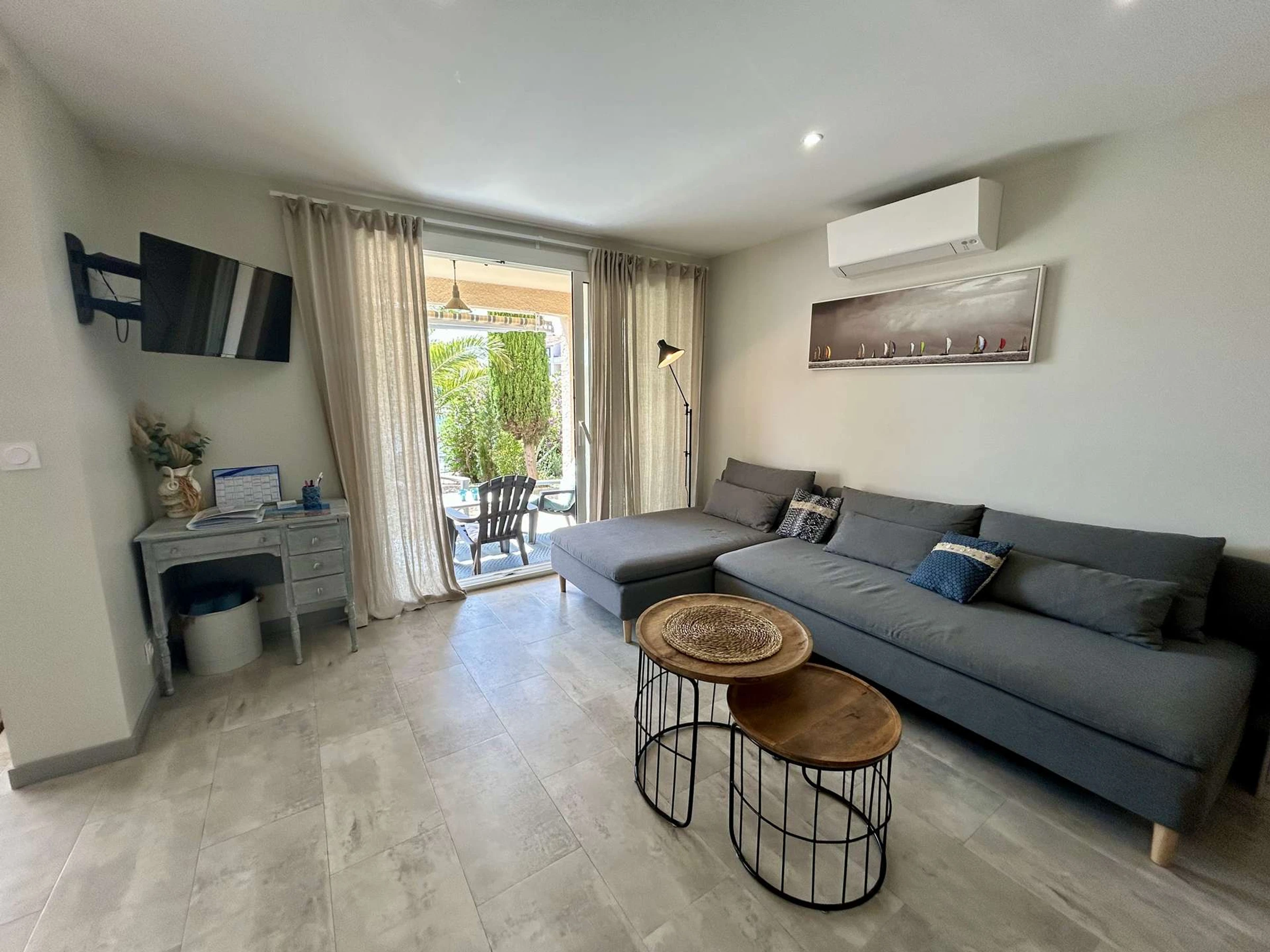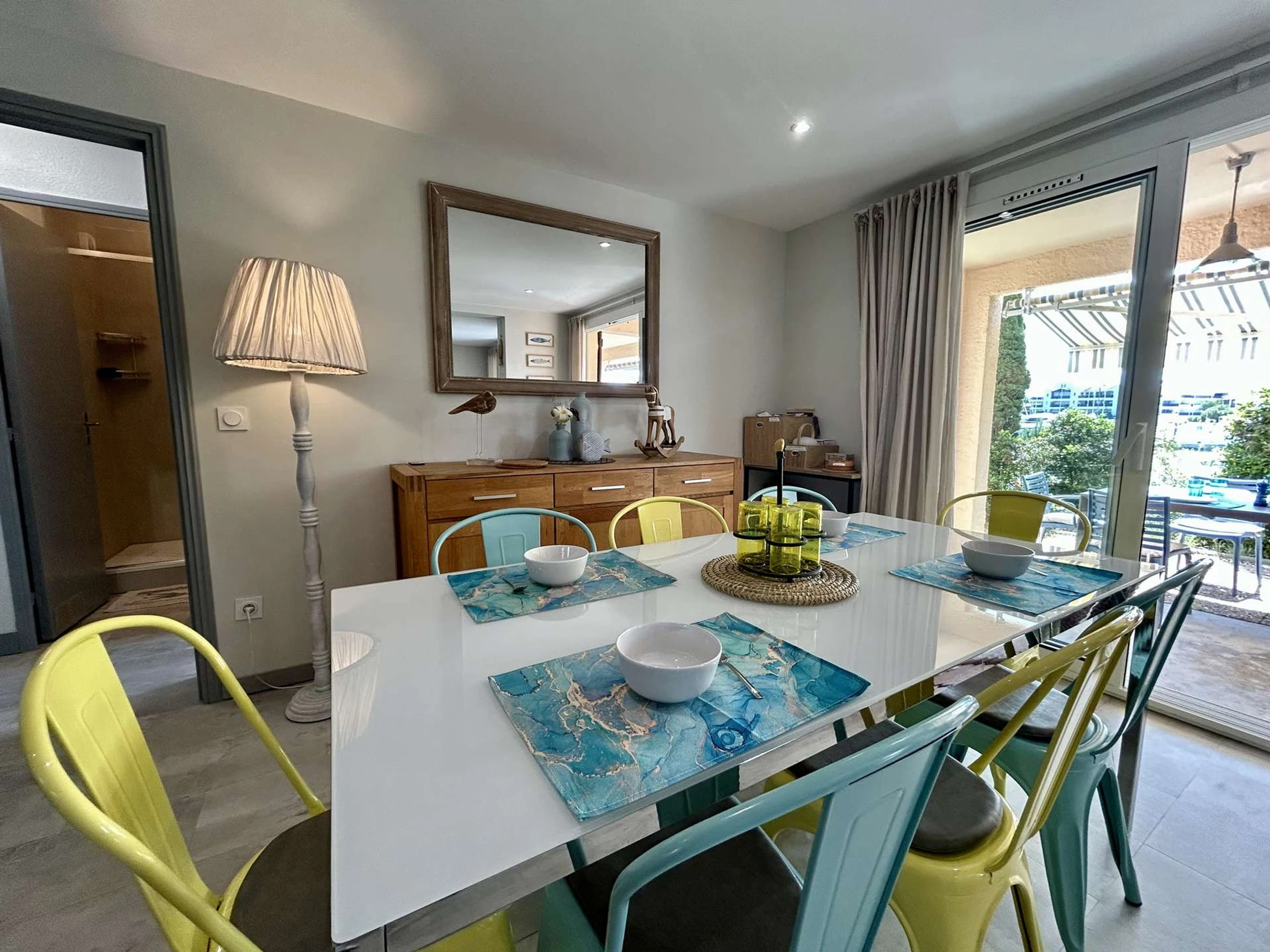 Ventajas de este alquiler frente al mar: barrio tranquilo, cerca de comercios, dos plazas de aparcamiento privadas, una terraza con muebles de jardín y vistas a los puertos deportivos, televisión, lavadora, lavavajillas y dos baños. Aire acondicionado en el salón. Precioso apartamento reformado con gusto. Limpieza final incluida. Las sábanas y toallas no están incluidas, pero se pueden reservar por un suplemento 15 días antes de la llegada.