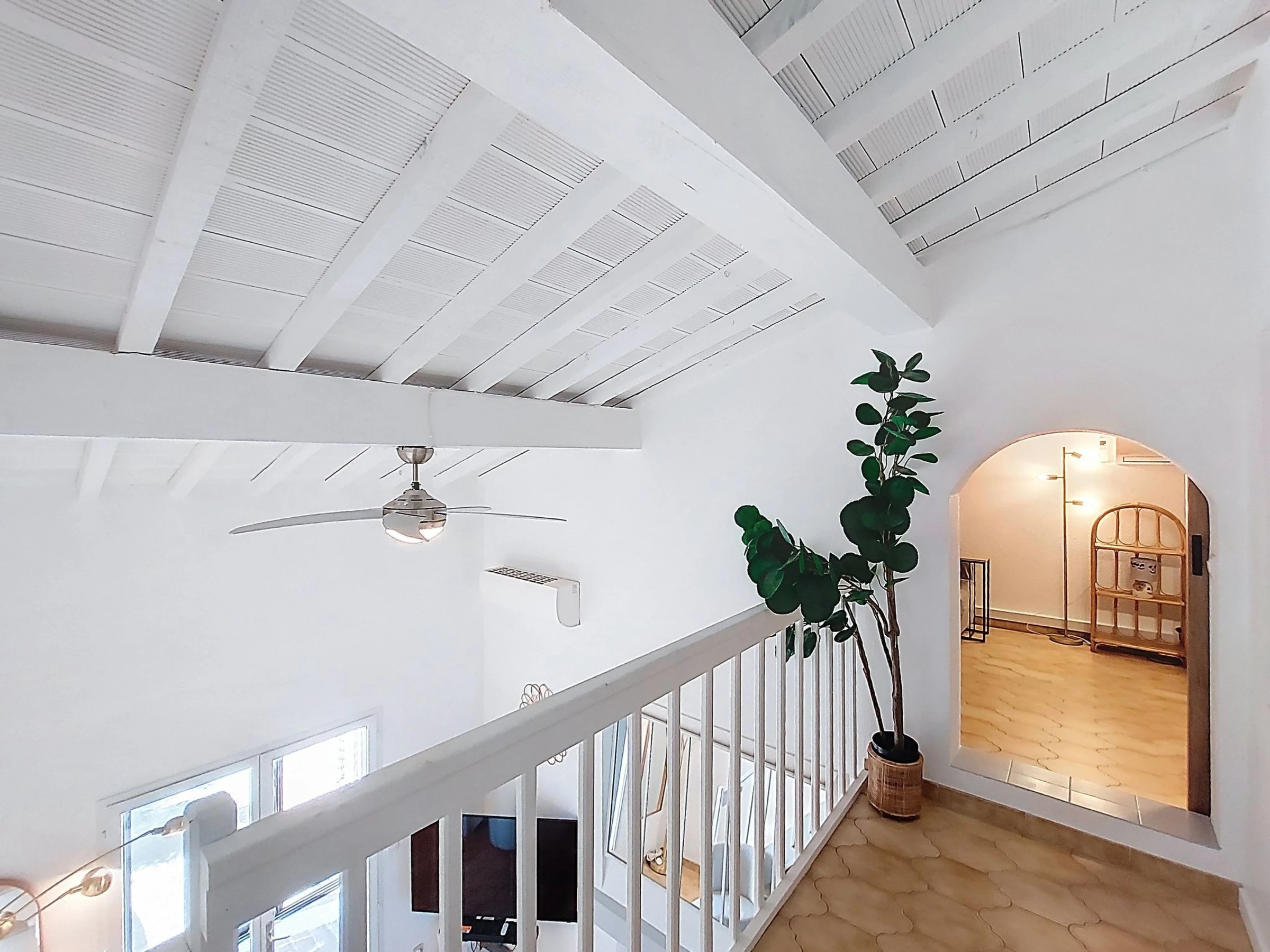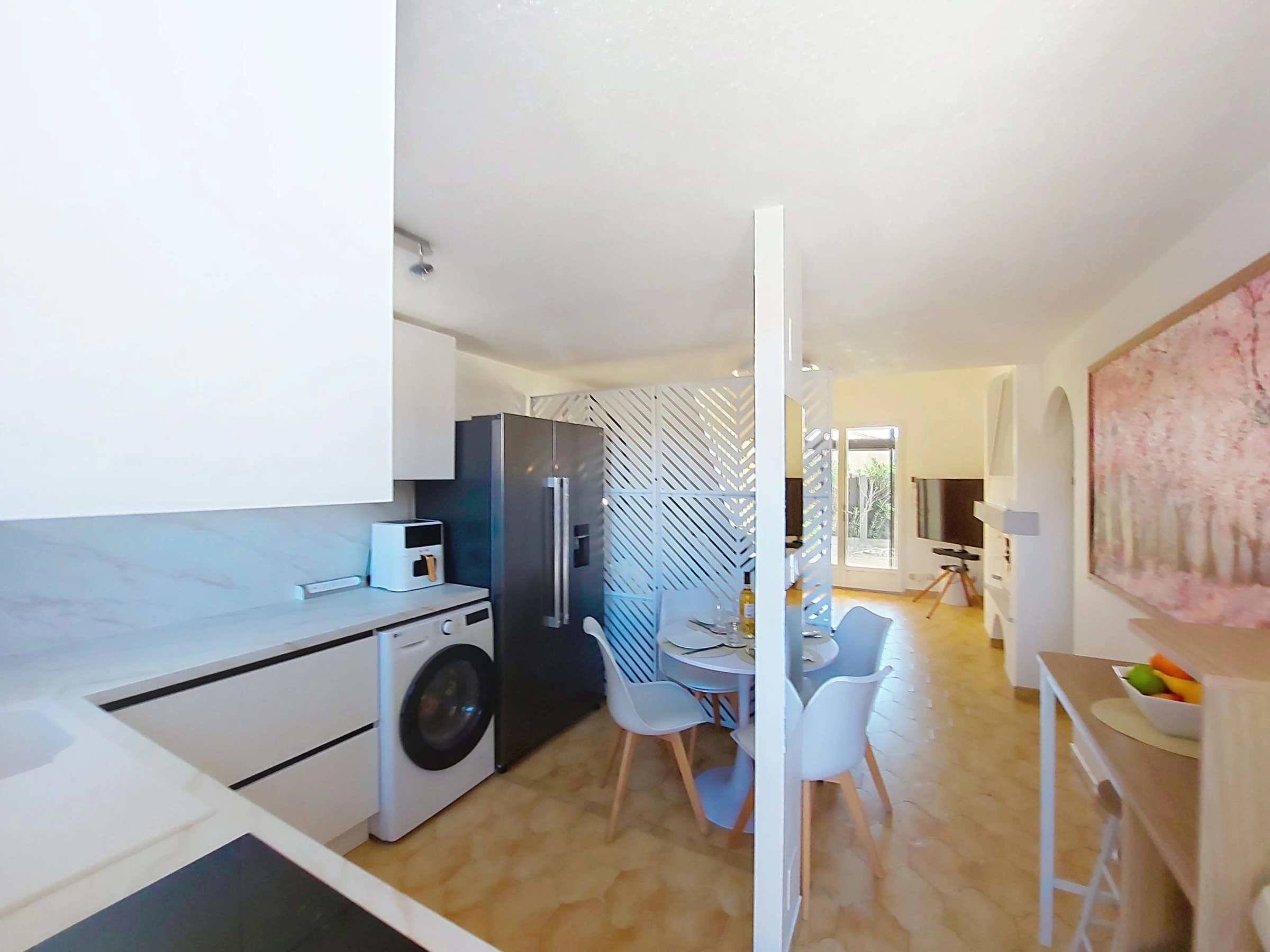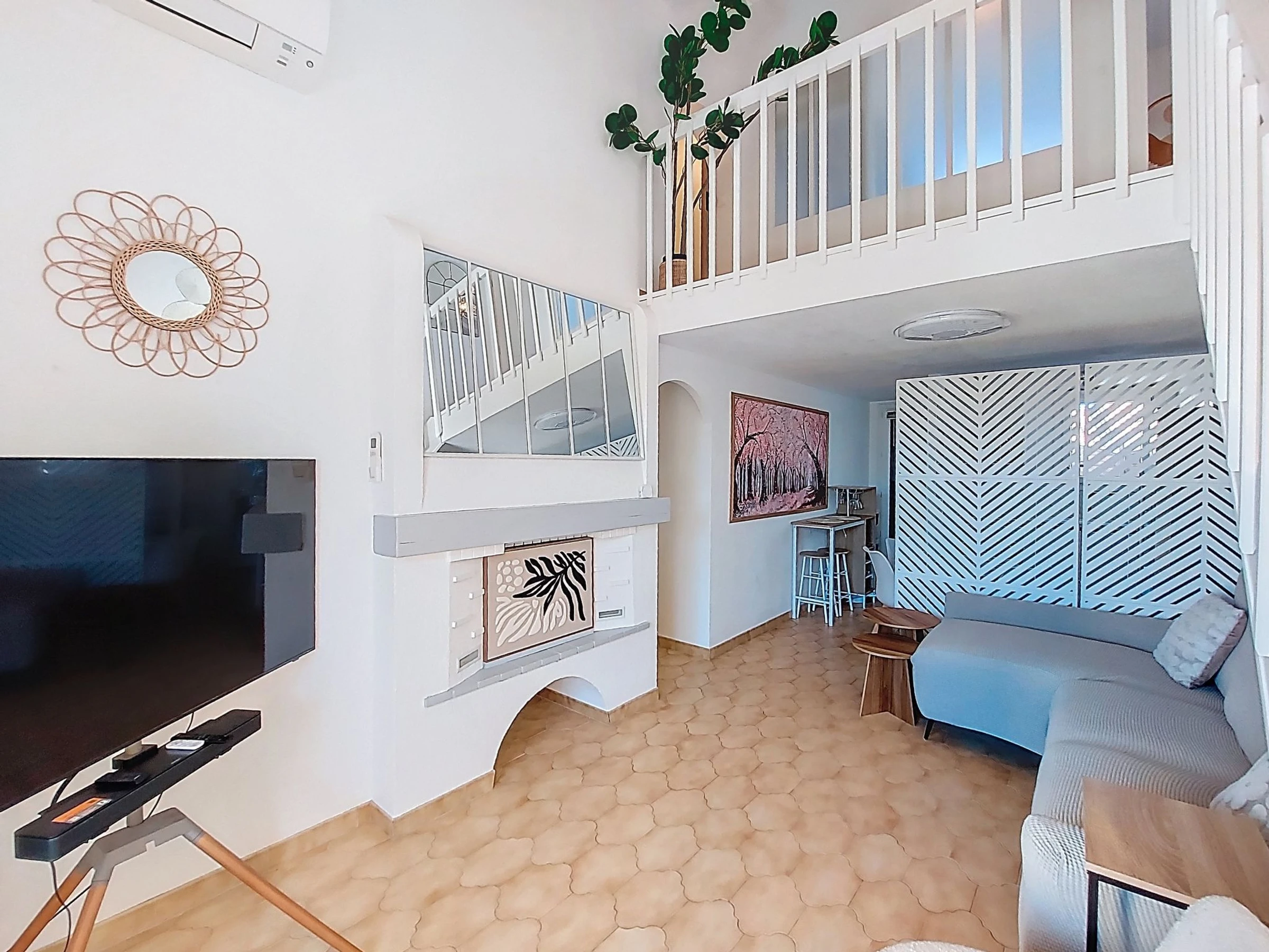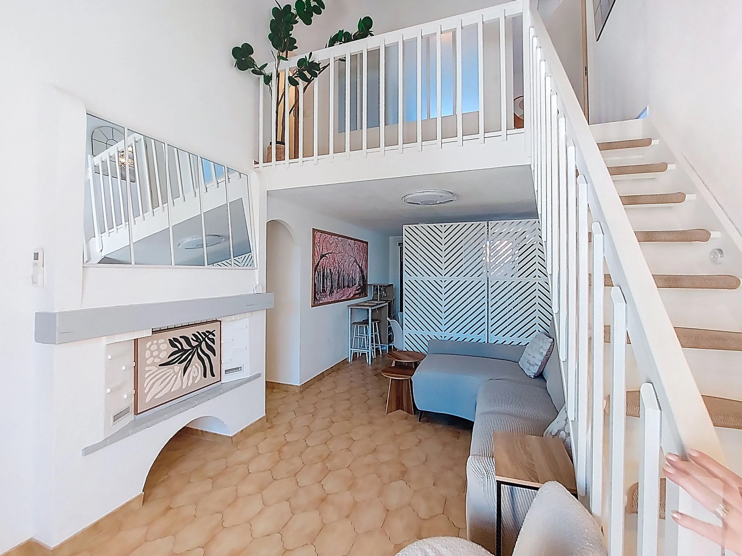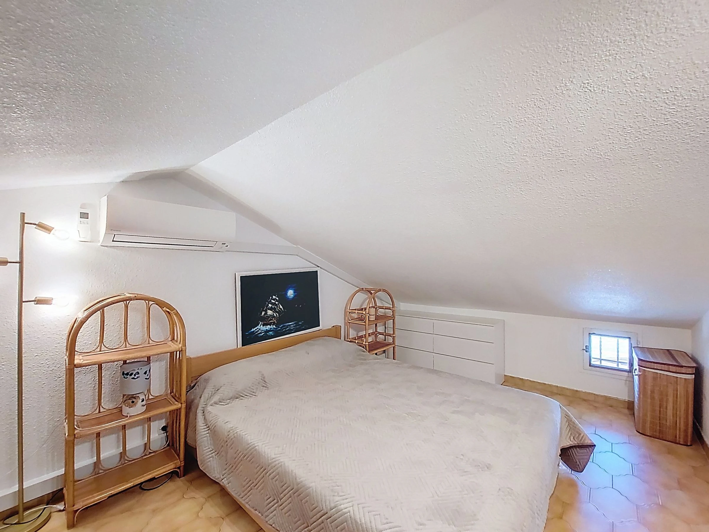 Casa adosada 3 estancias 80 m2 en 2 plantas. Con mobiliario bonito: salón-comedor con TV (pantalla plana), aire acondicionado. Salida a la terraza. 1 dorm. con 1 cama de matrimonio (180 cm, 200 cm de longitud), aire acondicionado. Salida a la terraza. Rincón-cocina (3 fogones, horno, lavavajillas, tostadora, hervidor de agua eléctrico, microondas, congelador, cafetera eléctrica, Cápsulas de café (Dolce Gusto) extra). Ducha, WC separado. Planta superior: 1 dorm. con 1 x 2 literas (90 cm, 190 cm de longitud), ventilador. 1 dorm., abuhardillado altura de techo 110 - 165 cm con 1 cama de matrimonio (160 cm, 200 cm de longitud), aire acondicionado. Terraza 40 m2, orientación oeste. Muebles de terraza, barbacoa. El alojamiento dispone de: lavadora. Internet (Wifi, gratis). A tener en cuenta: detector de humo. Oferta de un particular según el art. 155, IV del CGI.