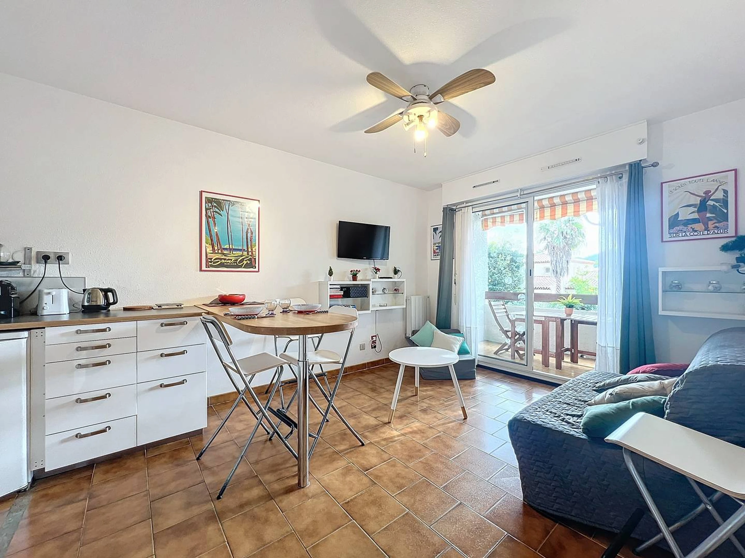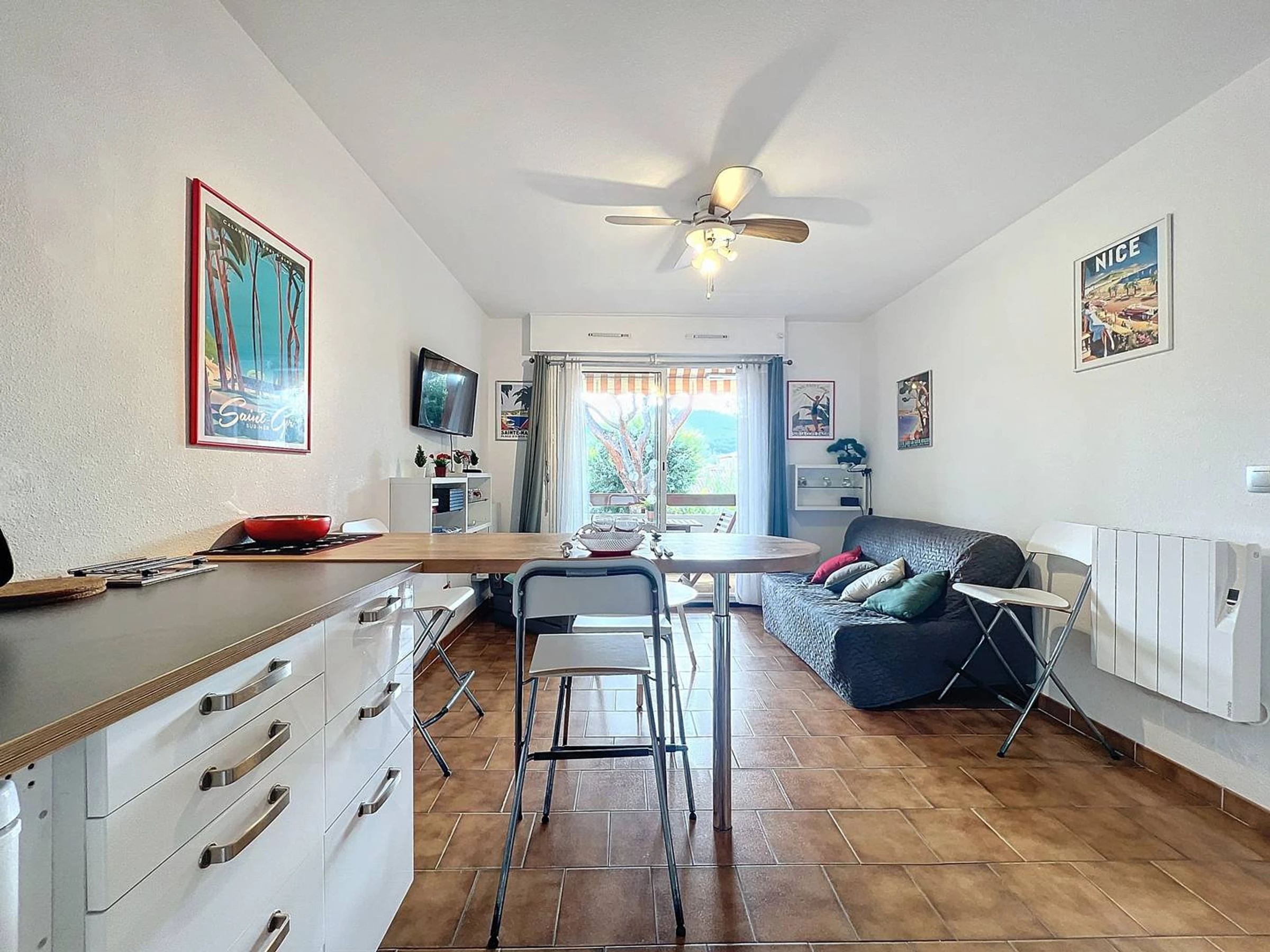 Disfrute de sus vacaciones en familia en este encantador apartamento de un dormitorio con terraza y vistas a las colinas. Ventilador. Aparcamiento gratuito. Ropa de cama y toallas disponibles opcionalmente.