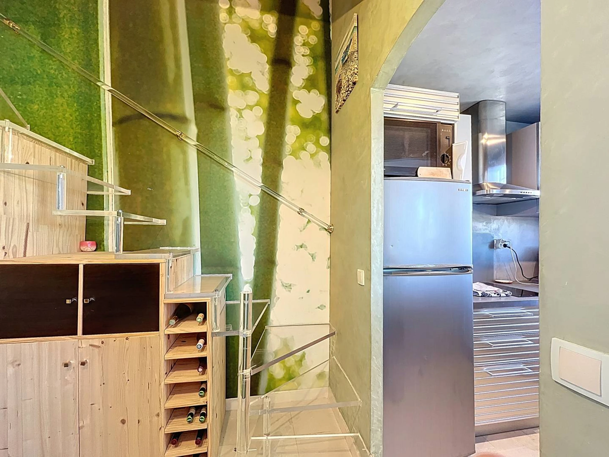 El apartamento cuenta con una cocina equipada con numerosos electrodomésticos. Lavadora, radio, aspiradora, televisión, aire acondicionado, hervidor de agua, cafetera, tostadora, lavavajillas, frigorífico/congelador, microondas, altavoces, secador de pelo, fregona, muebles de jardín, sombrilla, radiador eléctrico, cocina totalmente equipada, cubertería y vajilla, campana extractora, placa de inducción de dos fuegos, tendedero, armario, vistas al mar.